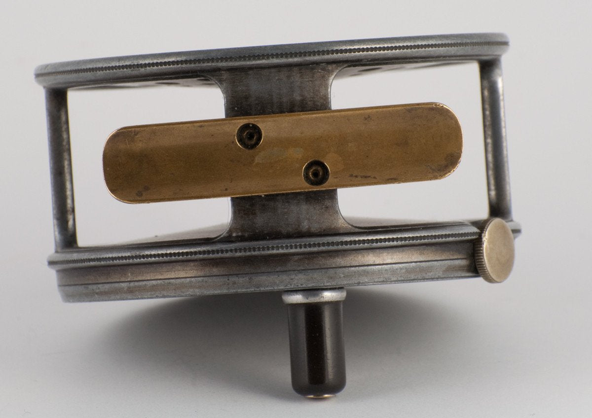 For sale here is a nice example of a pre-war Hardy Perfect Duplicated MK II wide drum fly reel from the early 1930s to late 1940s. Original, un-filed ribbed brass foot. It has the engage-able spare pawl and one pawl post is a replacement but done very nicely and it's tight as it should be. The tensioner functions perfectly throughout its range. The spool/spindle fit is nice and tight. The ebonite handle spins freely as it should. All in all, a spectacular Hardy reel in a hard to find size.