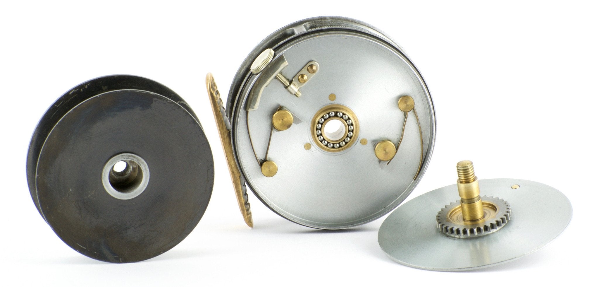 For sale here is a 3 1/8" Hardy Perfect with Dup. MKII check. All original and correct. Full length ribbed brass foot. Ebonite handle spins freely. Rim tensioner works perfectly. No cracks, dings or corrosion.
