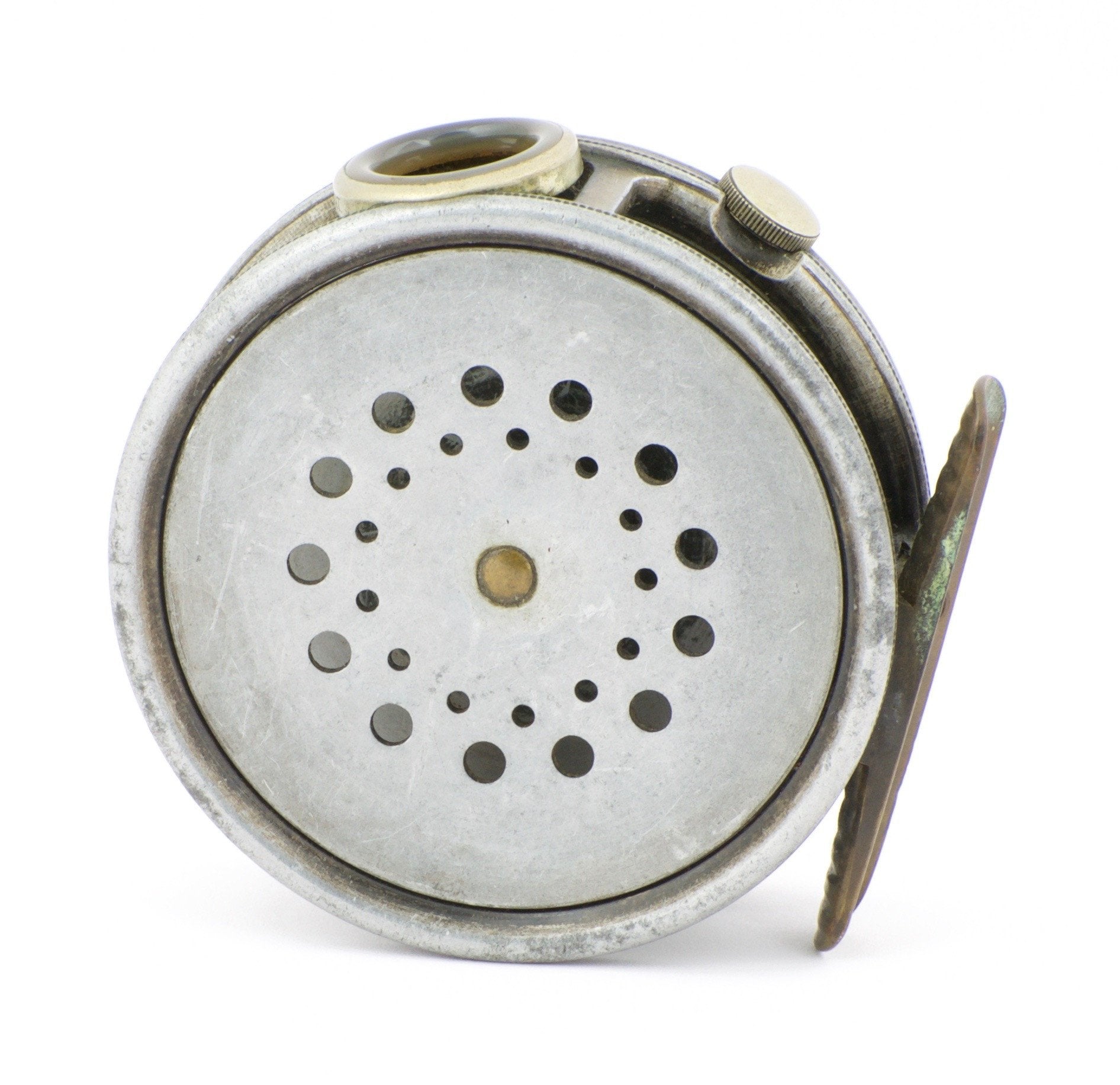 For sale here is a pre-war Hardy Perfect 3 1/8" trout fly reel with agate line guide (no cracks). RHW. Excellent working condition. Most of the original leaded finish has worn off. Still a fantastic example of the most classic fly reel in history!