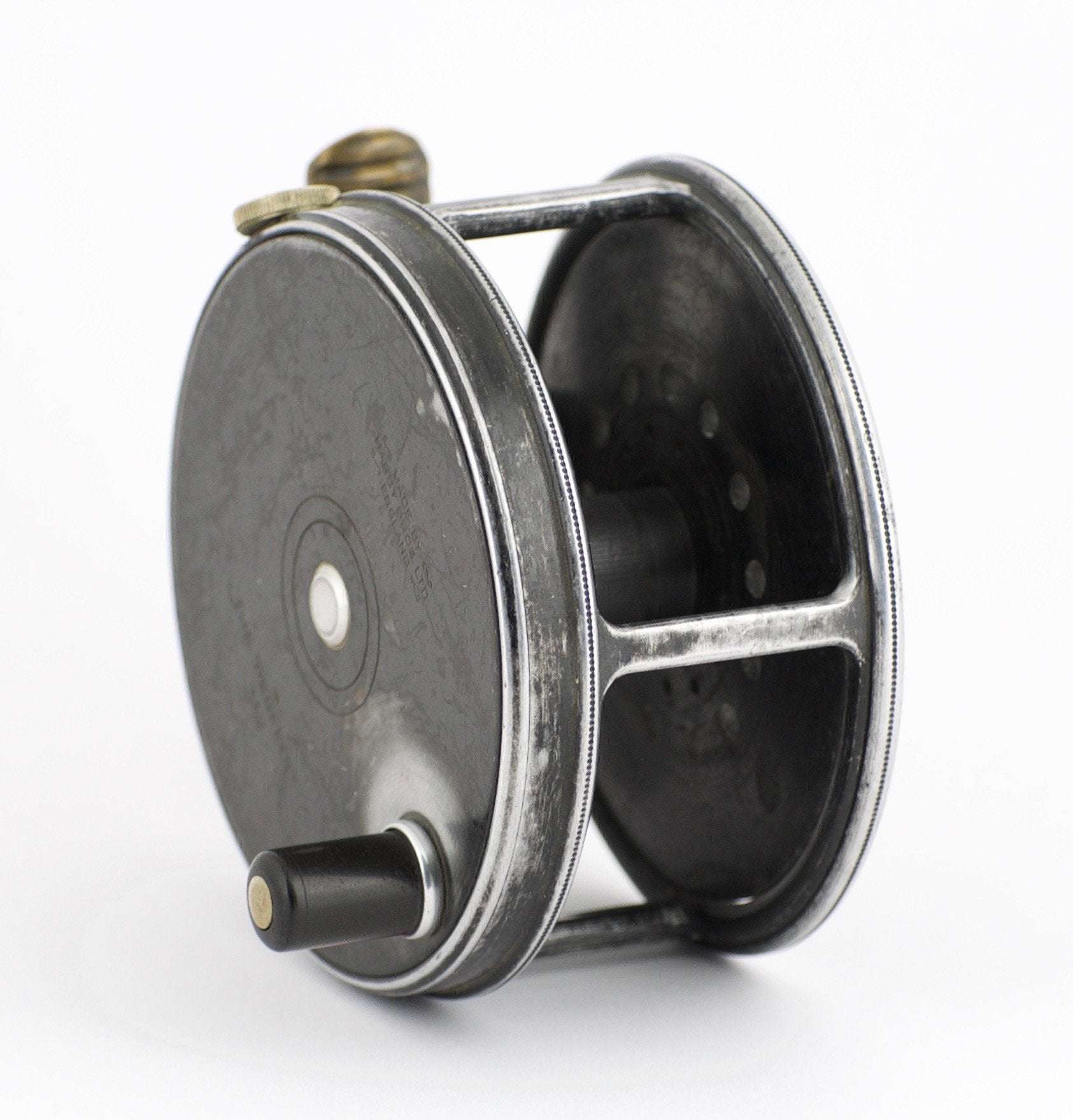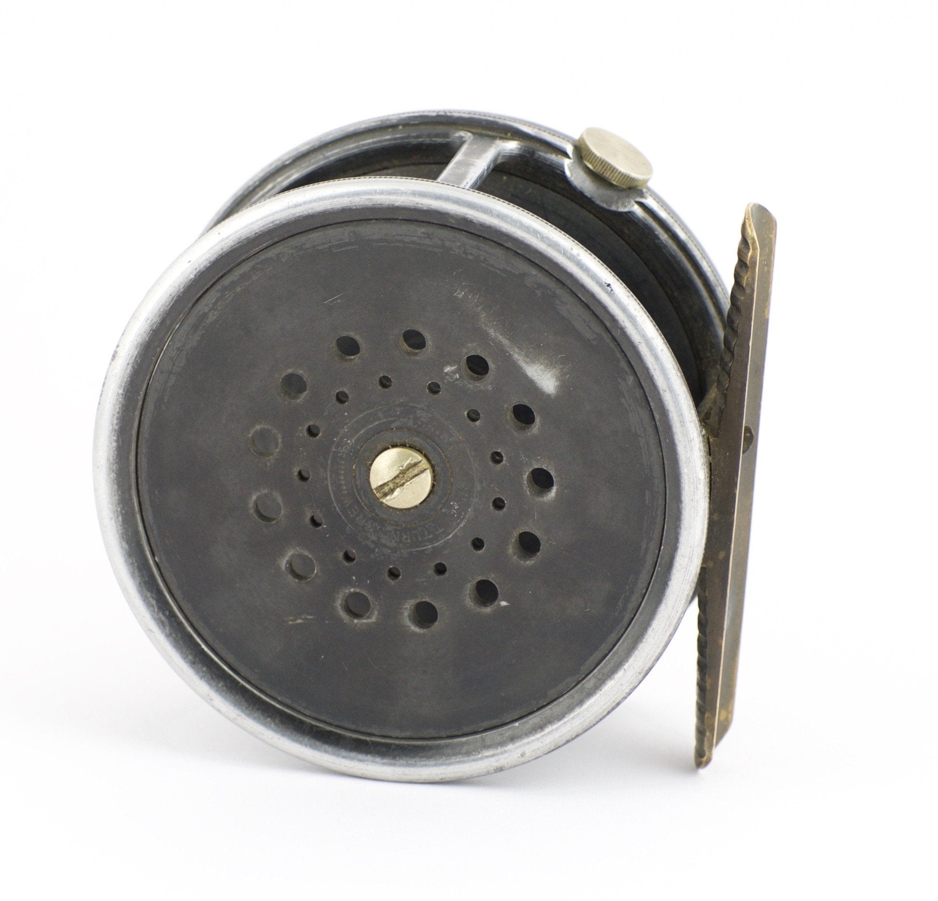 For sale here is a nice example of a Hardy Perfect Duplicated MK II wide drum fly reel from the 1950s. Made by Jimmy Smith. Excellent condition. Unmolested ribbed brass foot. The tensioner functions perfectly throughout its range. The spool screw is a bit buggered but this is only a cosmetic issue. Both pawls and springs are in fine condition. Nice reel that needs to go fishing again!