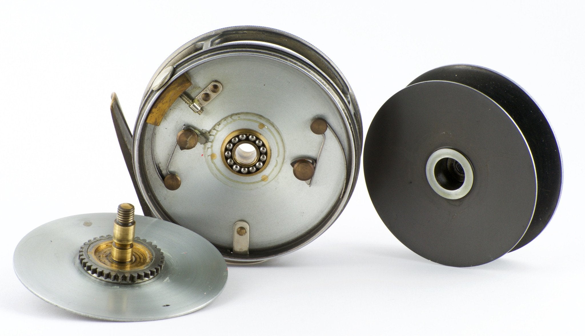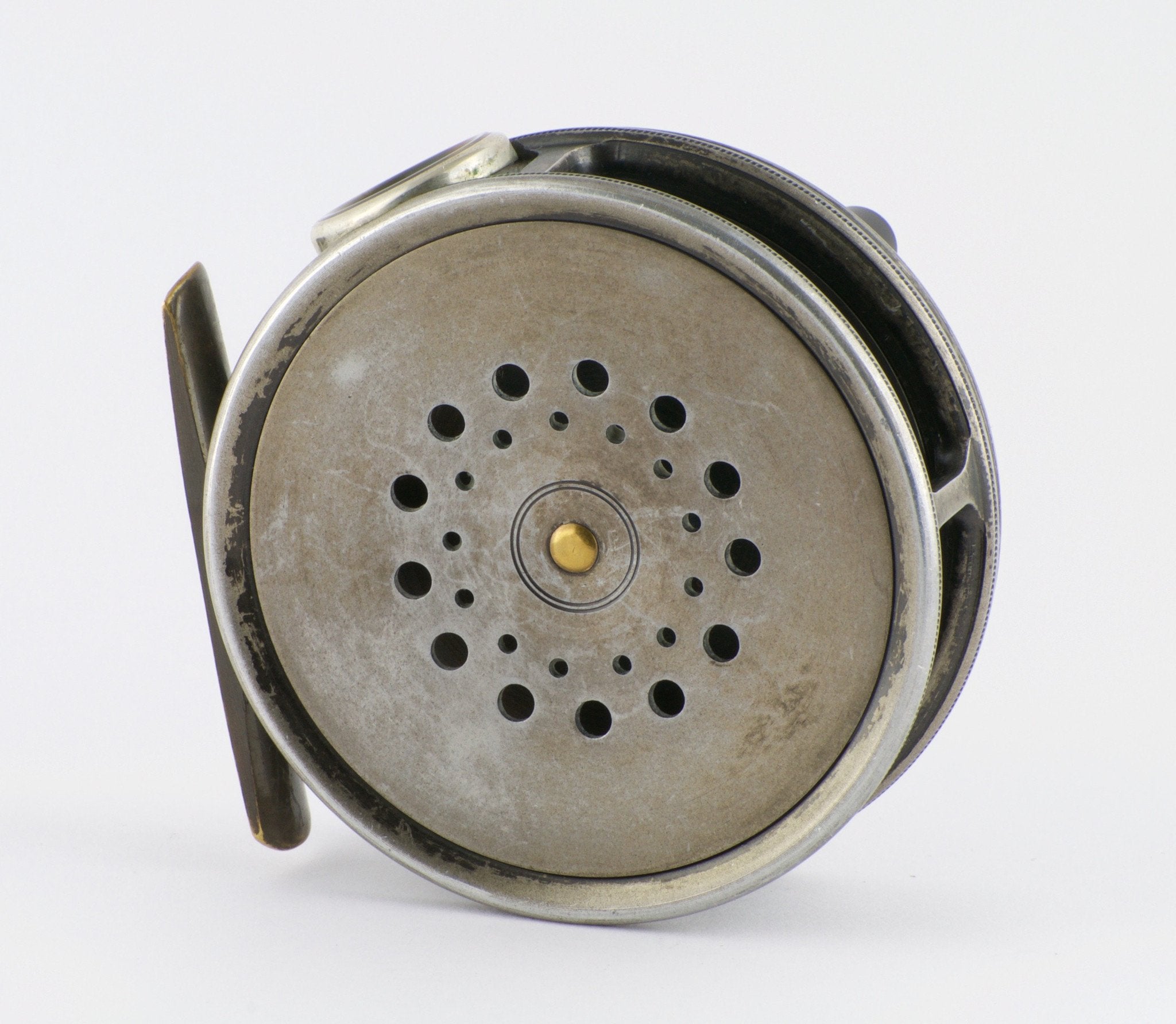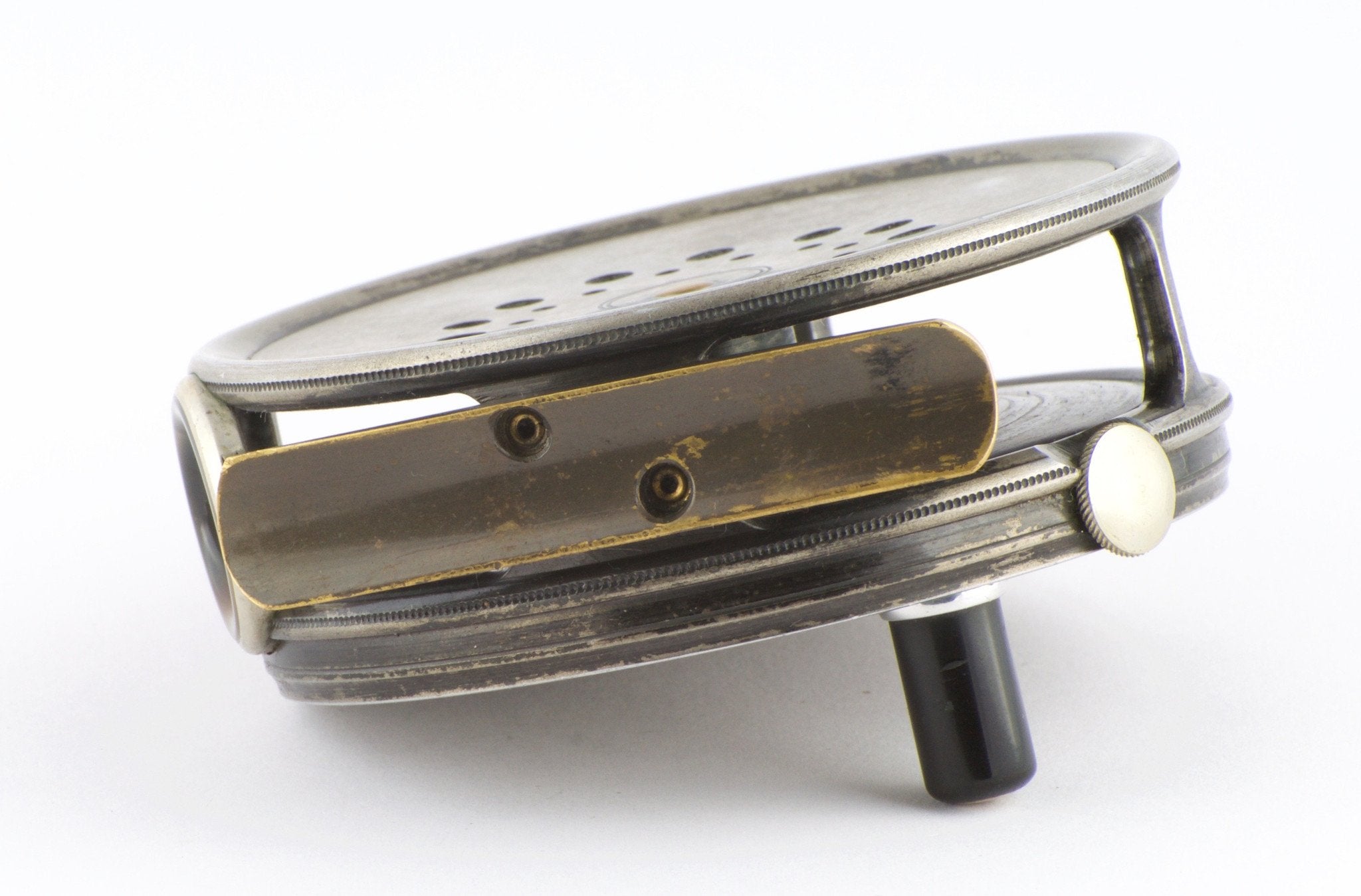 For sale here is a very scarce Hardy Perfect 3 3/8" trout reel with "rings-up" style agate line guide. Duplicated MKII check. Right hand retrieve. Excellent overall condition. The smooth brass foot is unmolested. The spool/spindle fit is excellent. The tensioner works as intended. The agate line guide is free of cracks. There is no evidence of repair or any un-original parts.
