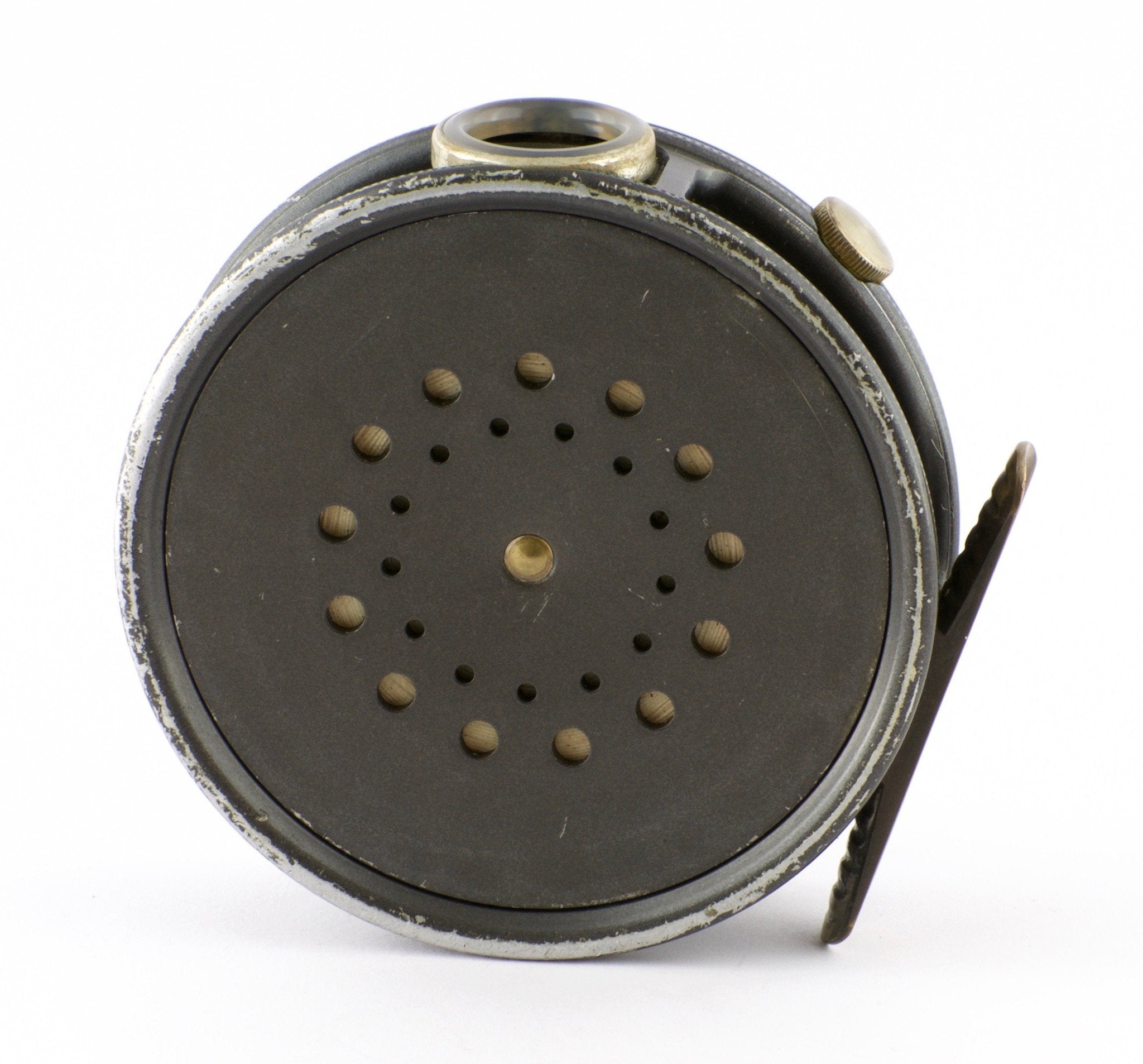 For sale here is a Hardy Perfect 3 5/8" with the Duplicated MKII check and unblemished agate line guide. All original and correct. Full length and unaltered ribbed brass foot. Ebonite handle spins freely. Tensioner works perfectly. No line burns. No cracks, chips, or dings. Noproblematic wobble or end play. Comes with original Hardy reel case.