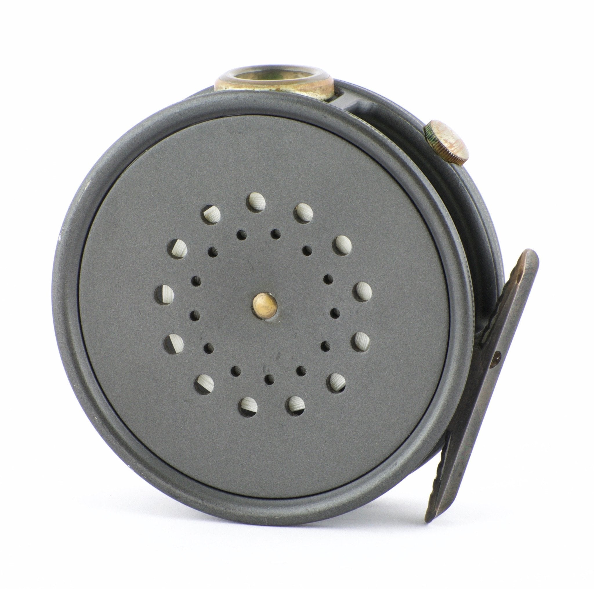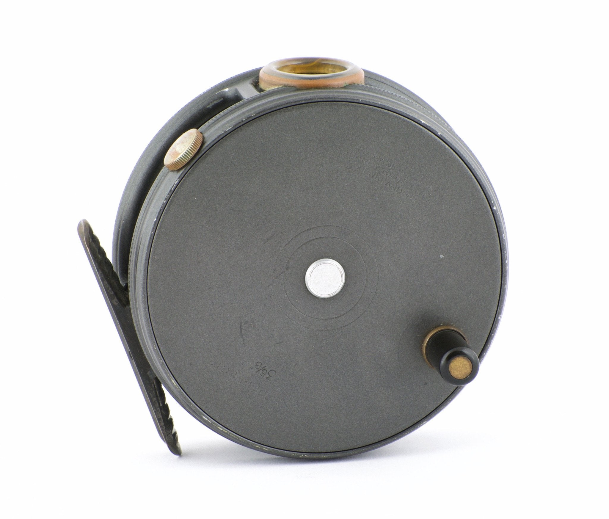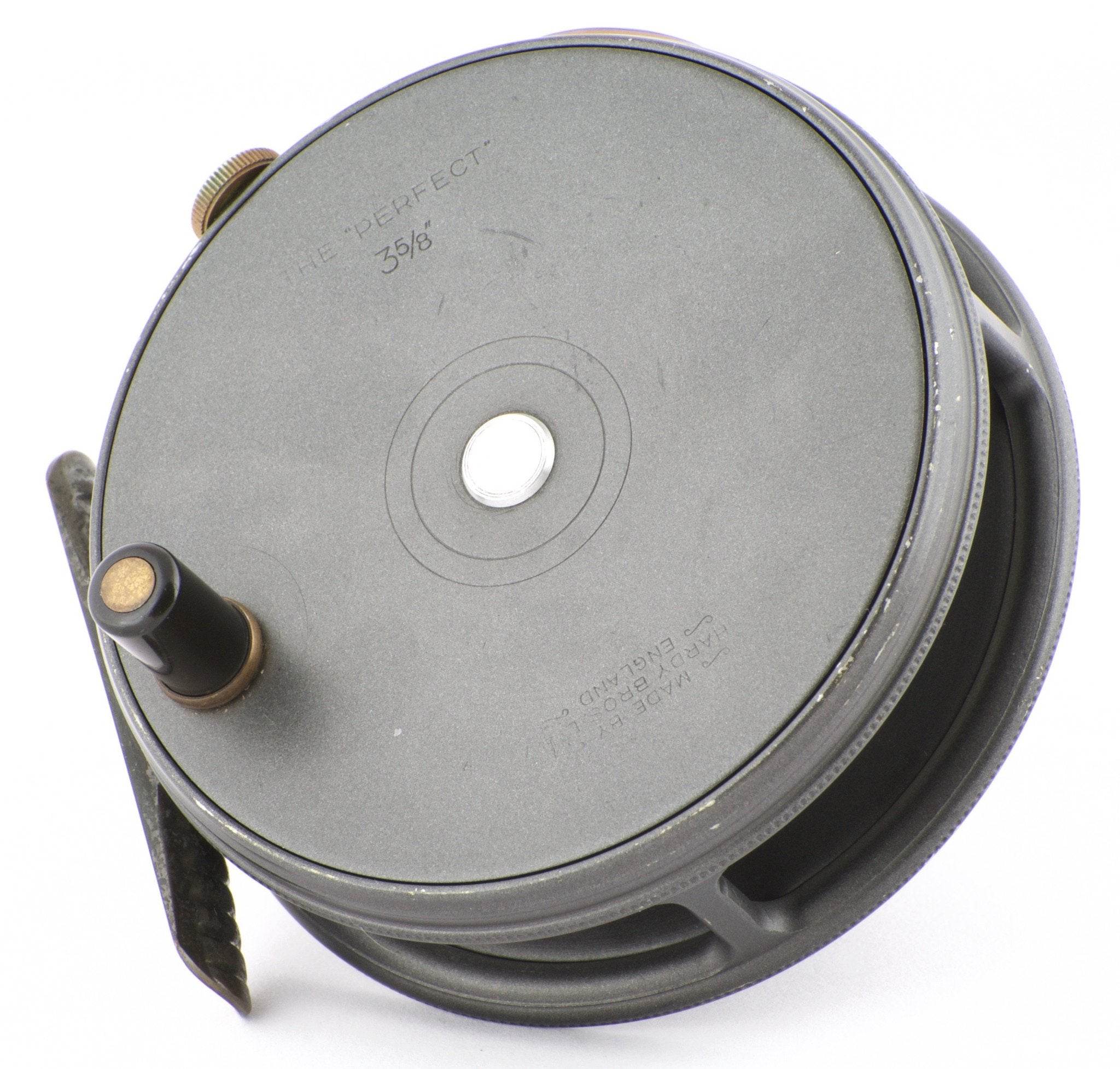 For sale here is a Hardy Perfect 3 5/8". Excellent condition. Unblemished agate line guide. All original and correct. Full length and unaltered ribbed brass foot. Ebonite handle spins freely. Tensioner works perfectly. No line burns. No cracks, chips, or dings. No problematic wobble or end play. The line guard bezel and tension screw have some oxidation present but this will polish right off if desired. Comes with original Hardy reel case.
