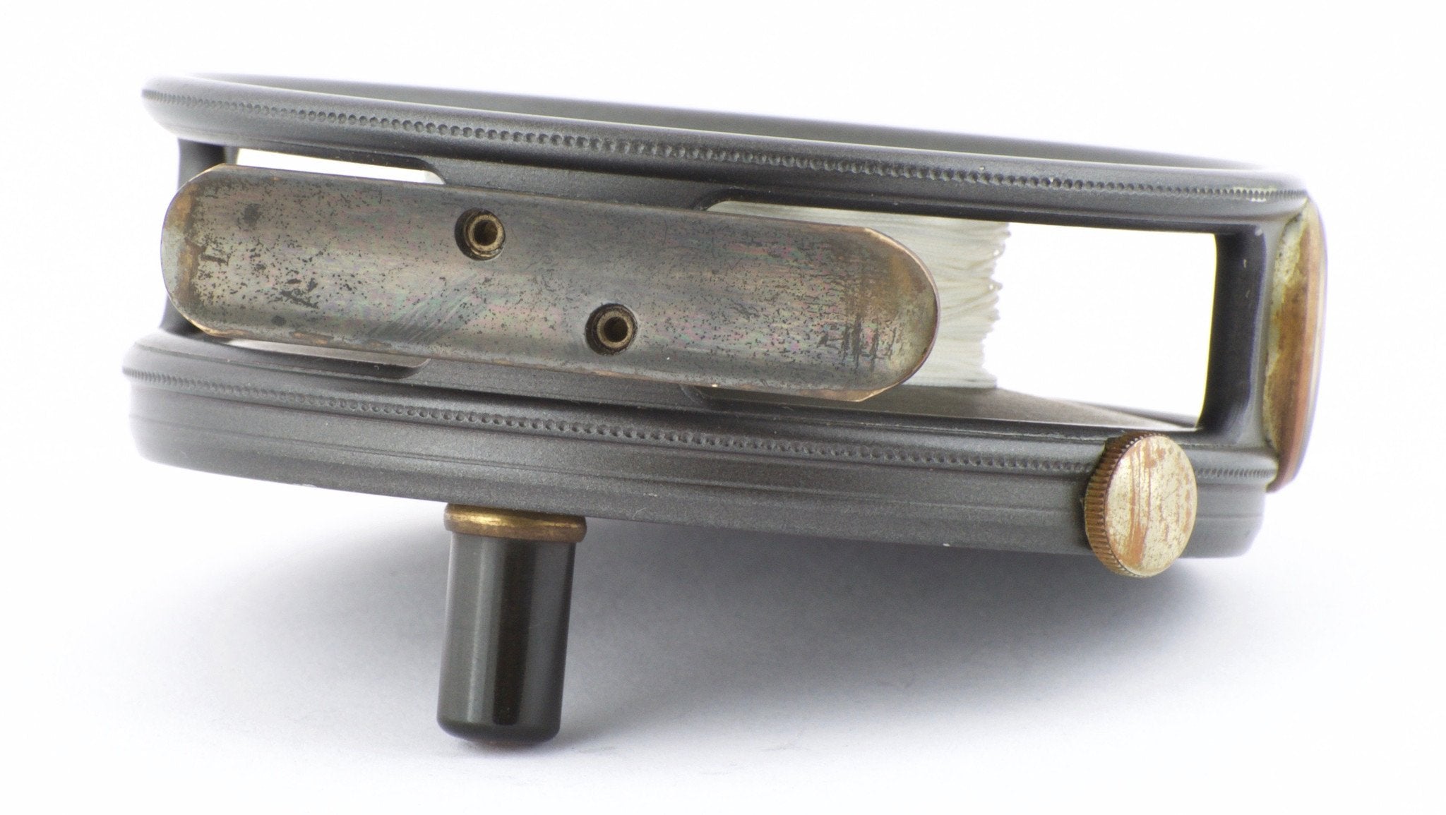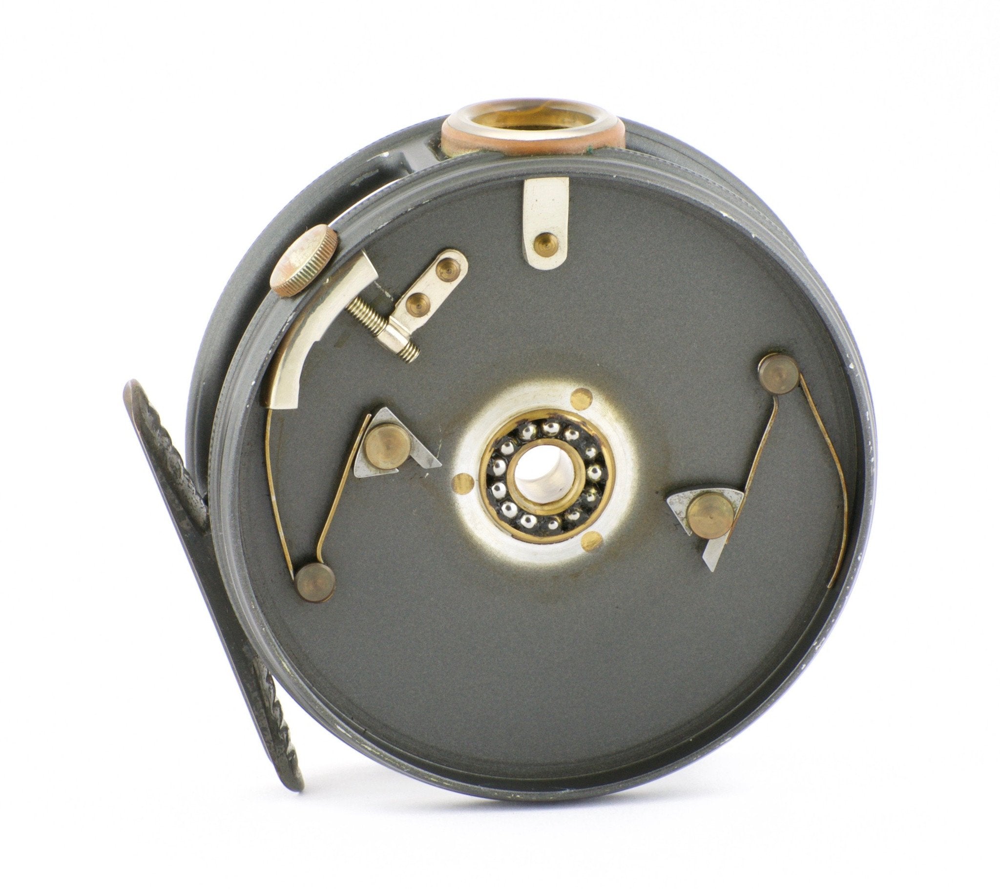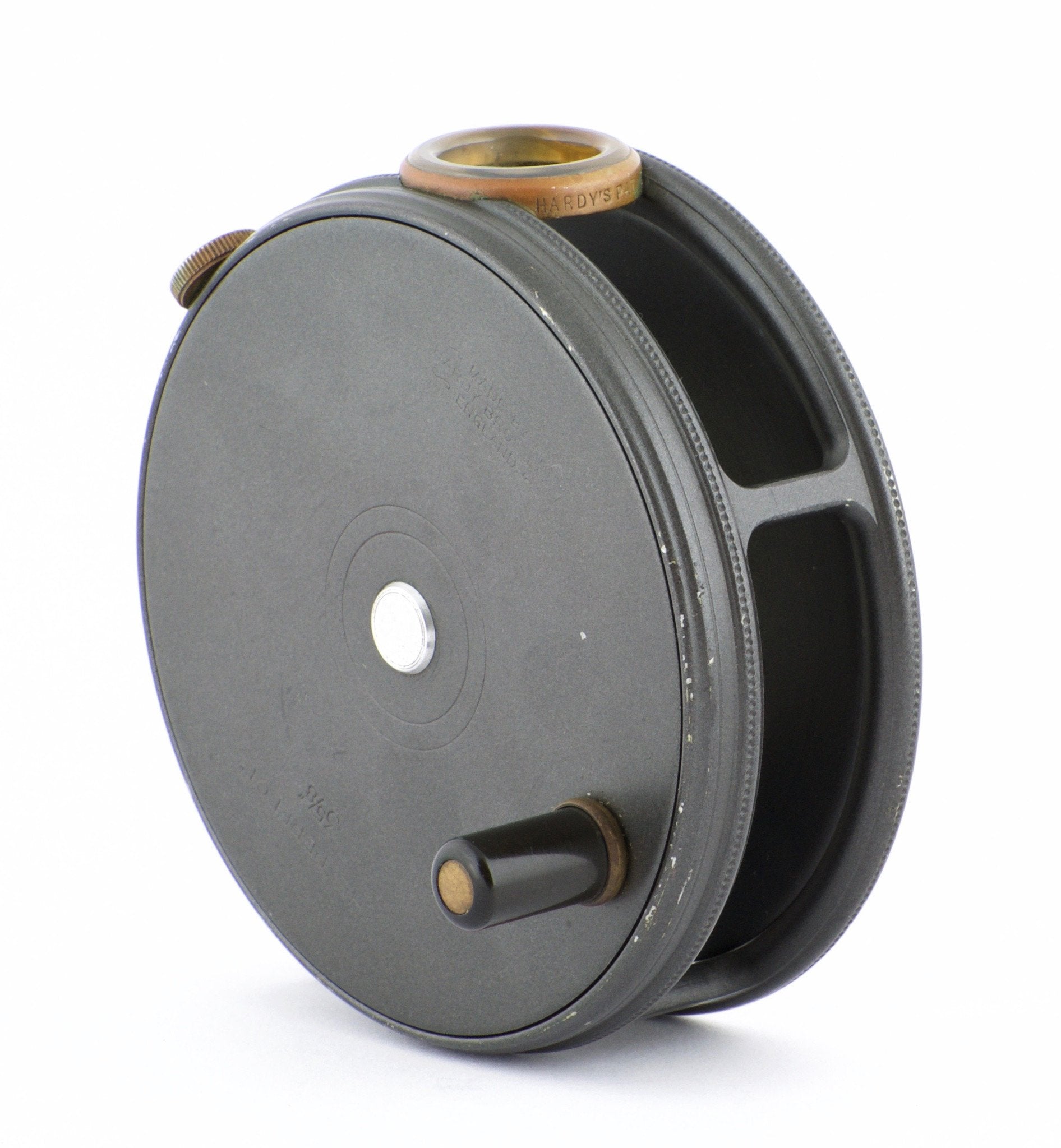 For sale here is a Hardy Perfect 3 5/8". Excellent condition. Unblemished agate line guide. All original and correct. Full length and unaltered ribbed brass foot. Ebonite handle spins freely. Tensioner works perfectly. No line burns. No cracks, chips, or dings. No problematic wobble or end play. The line guard bezel and tension screw have some oxidation present but this will polish right off if desired. Comes with original Hardy reel case.