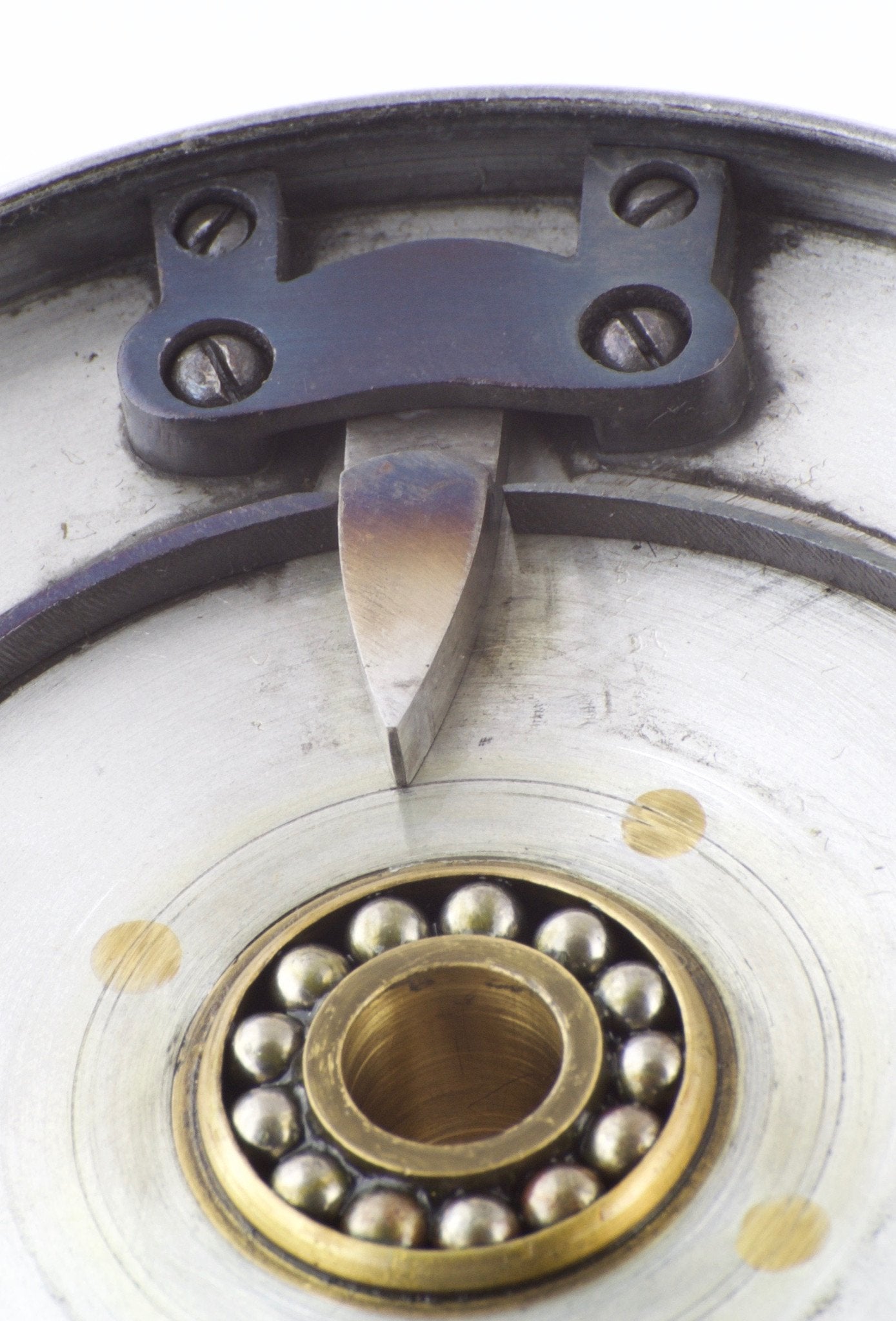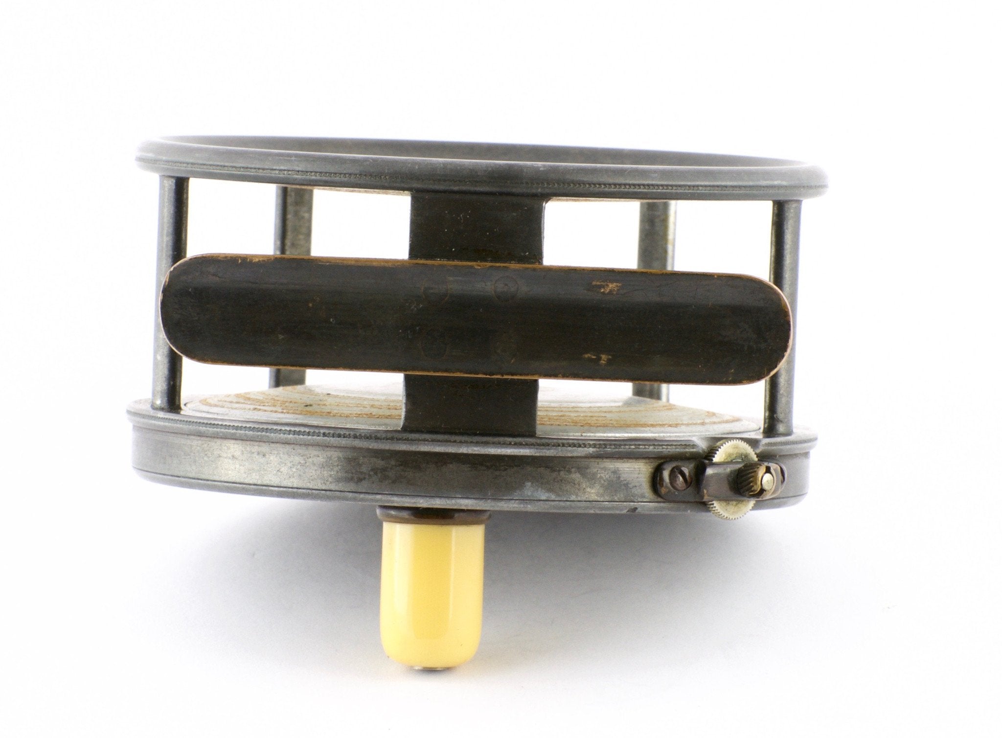 For sale here is a fine Hardy 4" Wide Drum Perfect with the Hardy's 1905 check mechanism. There are no apparent repairs or unoriginal parts. Full length unmolested smooth brass foot. No cracks exist but there is one small ding in the rim by the reel foot. The tensioner works perfectly throughout its range. Very strong check. Ivory handle is perfect. All stamps are consistent. The reel retains the majority of its original finish and has no noticeable wobble or end play. Comes with a Hardy block leather case in very good condition, although it's missing its two interior dividers that the handle slides into.