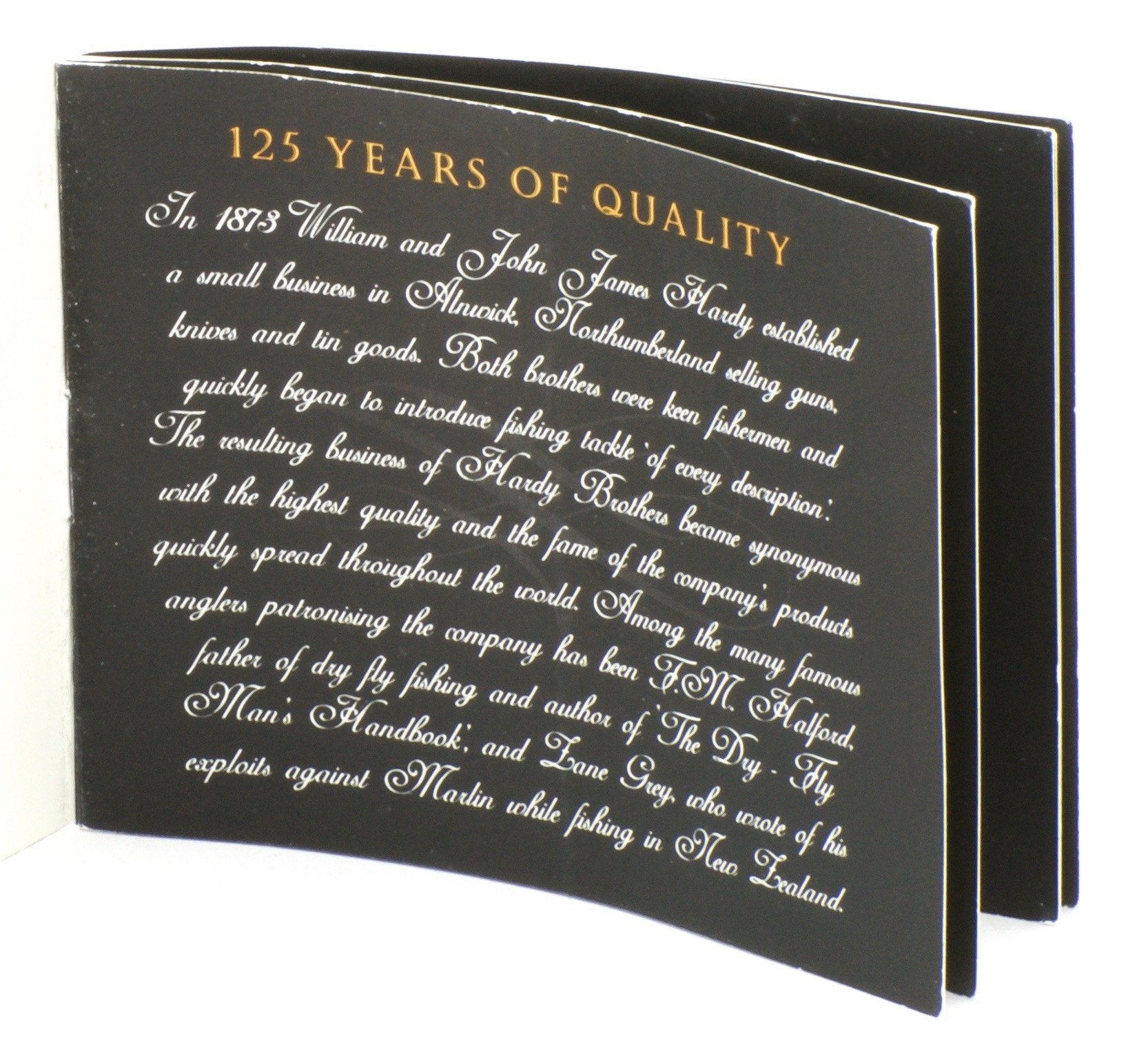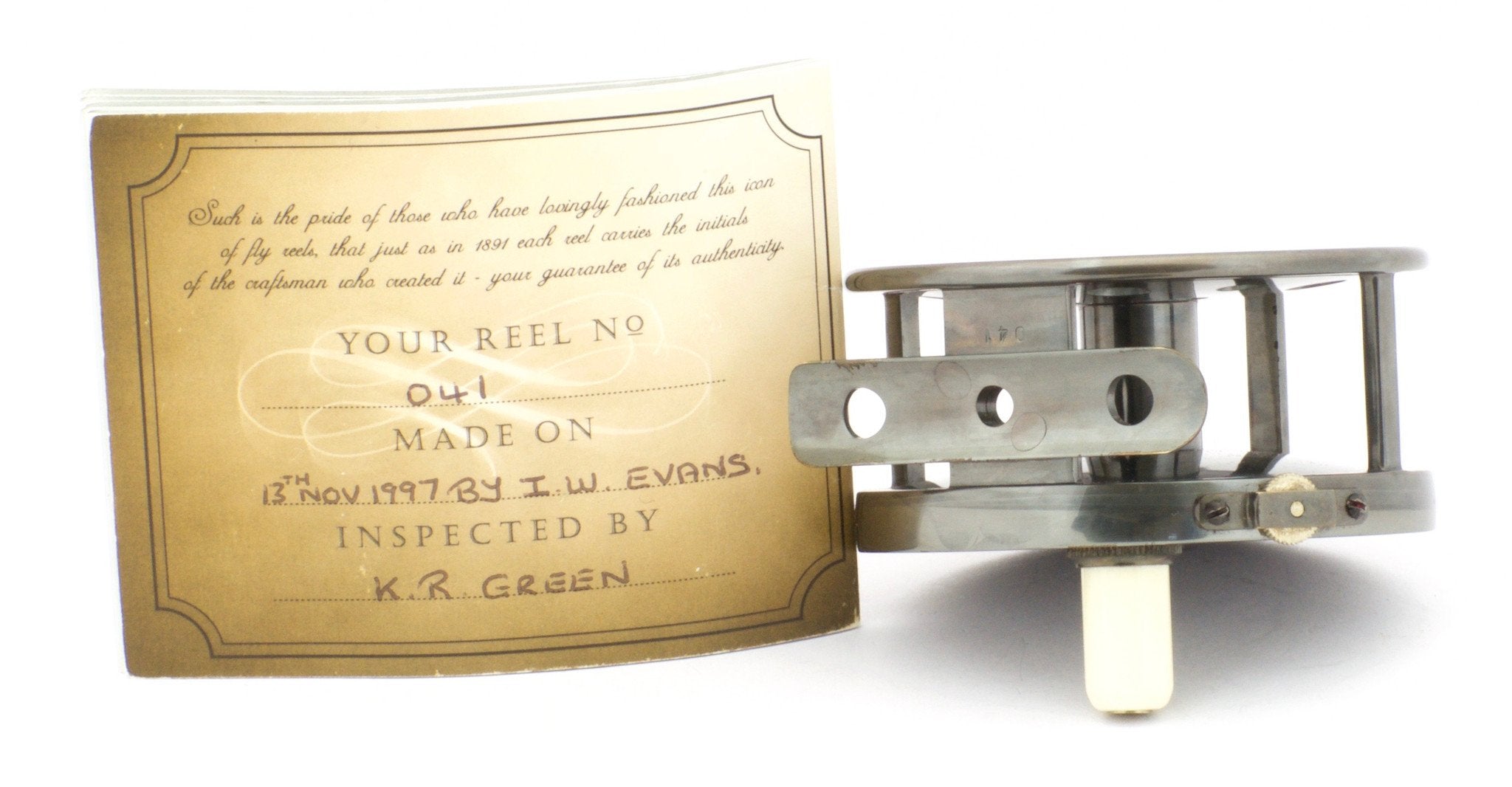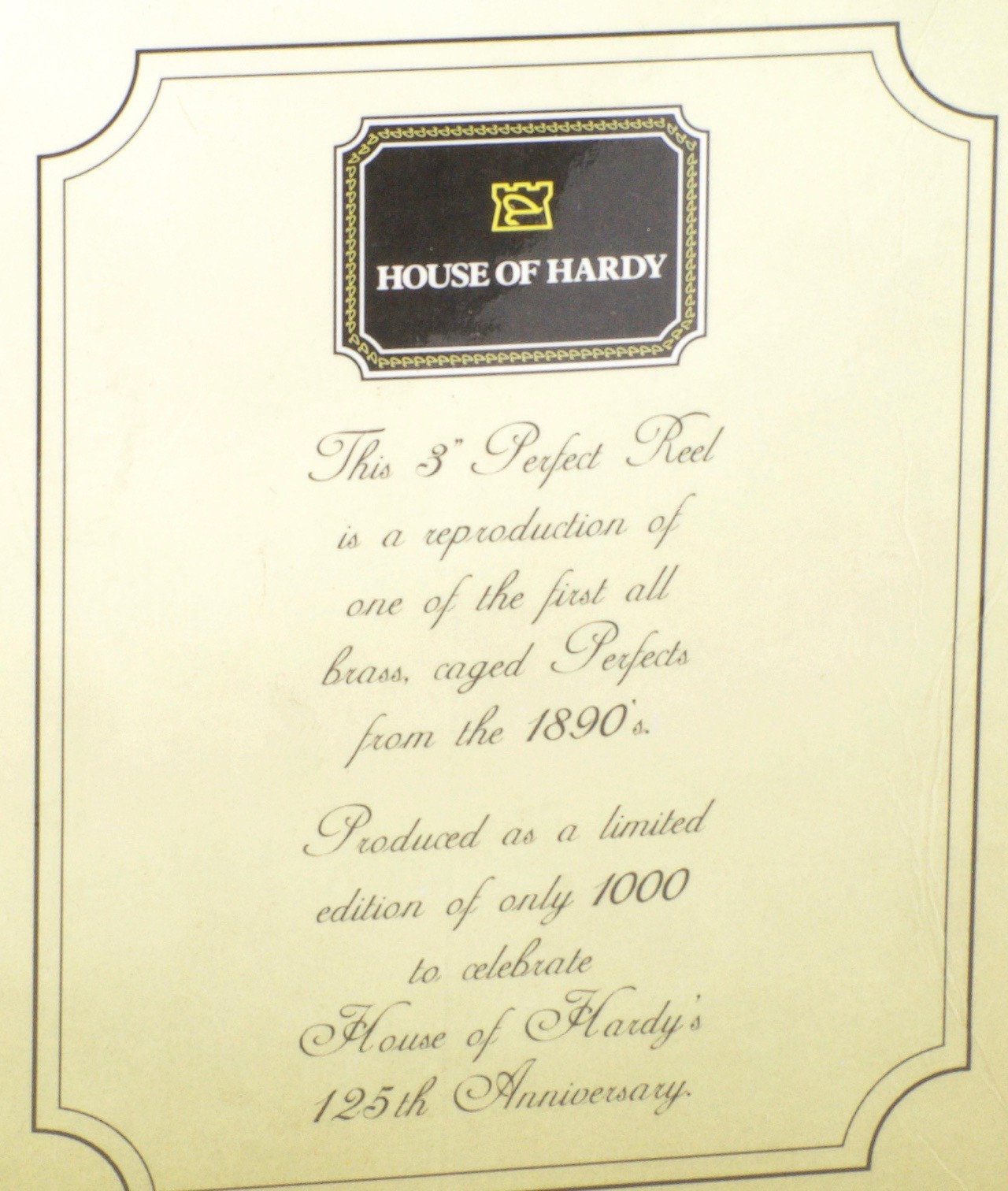 This reel is part of a limited edition series of only 1000 reels made to celebrate The House of Hardy's 125th Anniversary. Right hand retrieve only. Solid heavy brass construction, turks head tension adjustment knob, rod in hand logo.