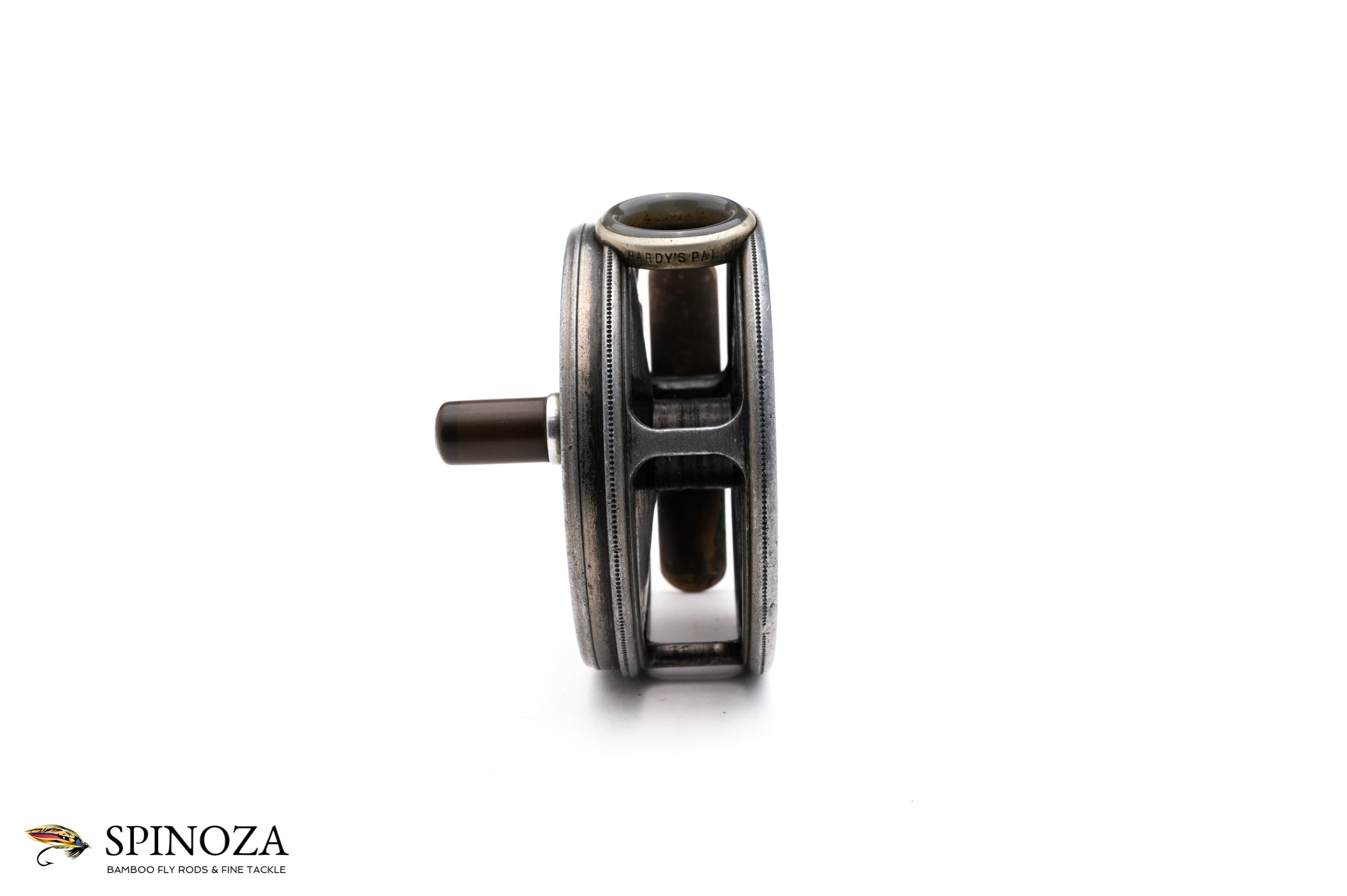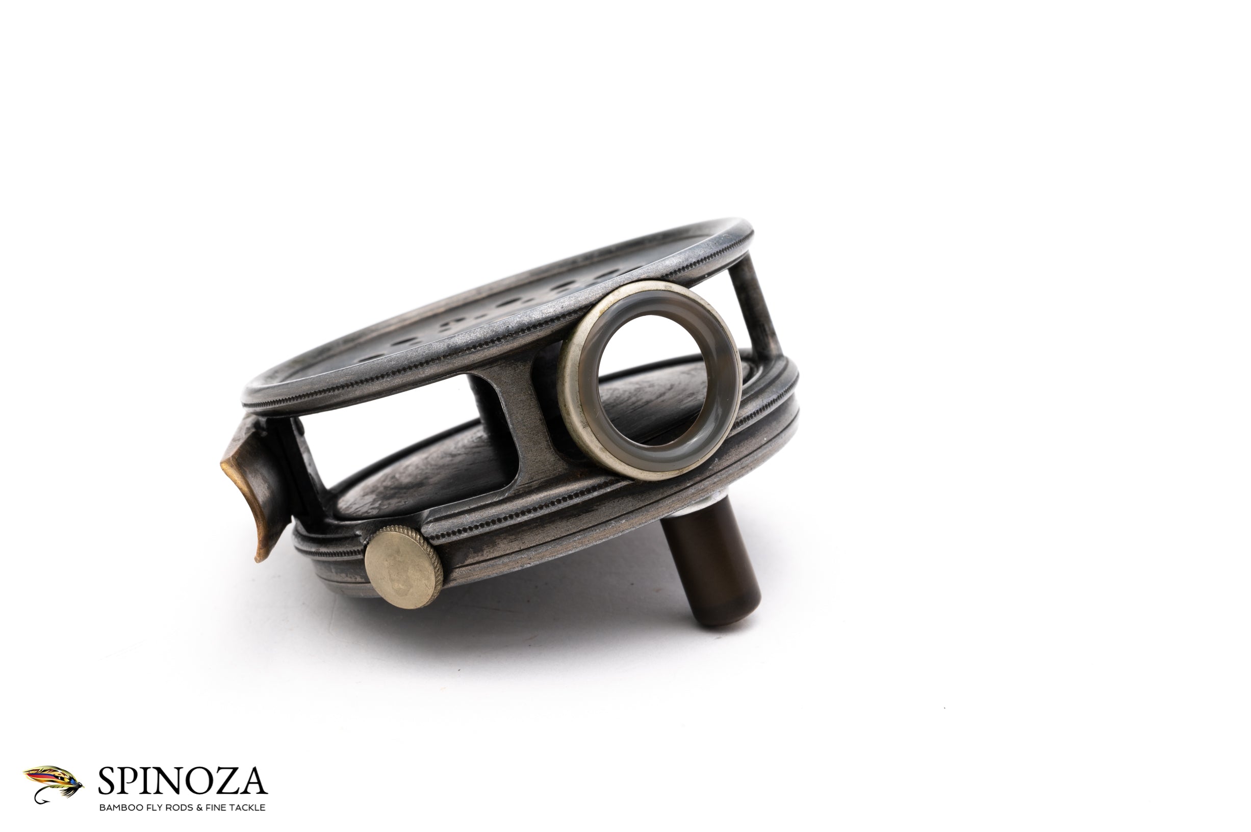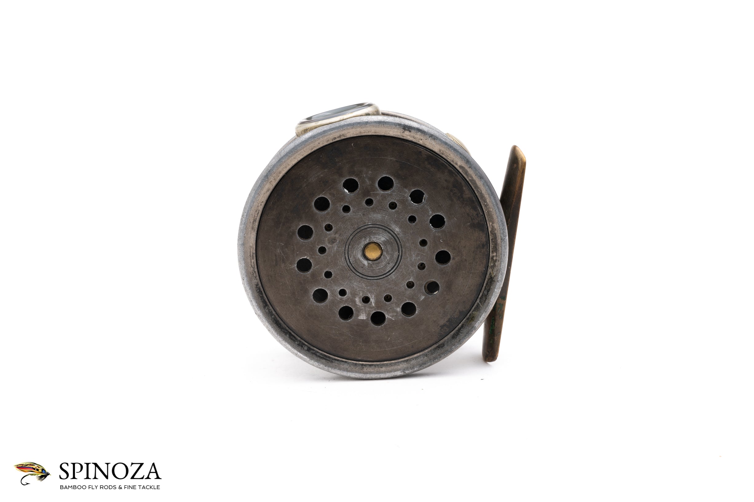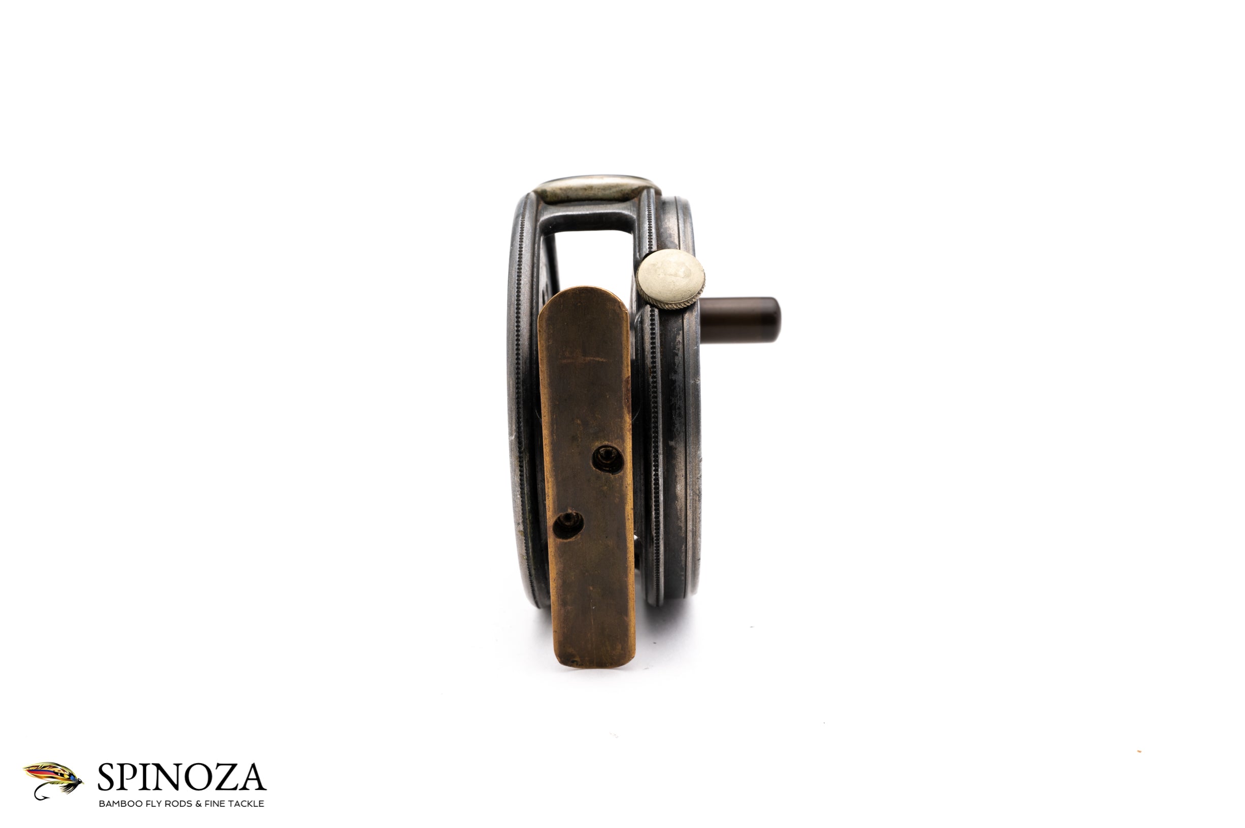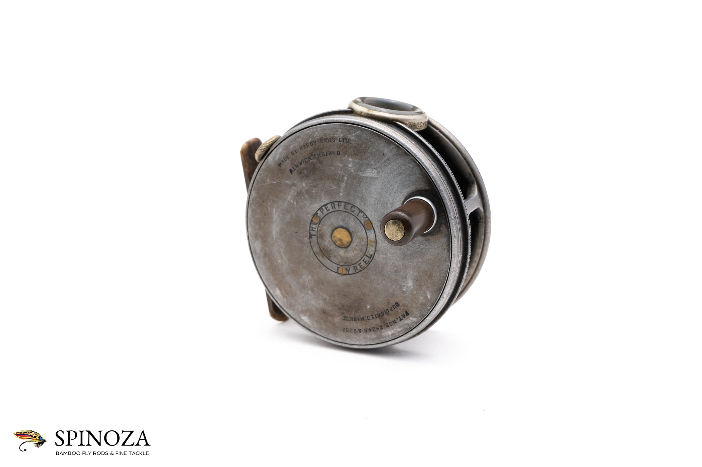 A very nice 2 7/8" Hardy Perfect with Duplicated MKII check. The agate line guide is unblemished with no cracks. Full length and unaltered smooth brass foot. The ebonite handle spins freely. The rim tensioner works perfectly throughout its spring adjustment range. No cracks or corrosion, just a little minor cosmetic wear that you'd expect from a reel of this vintage. A very nice example of this classic.