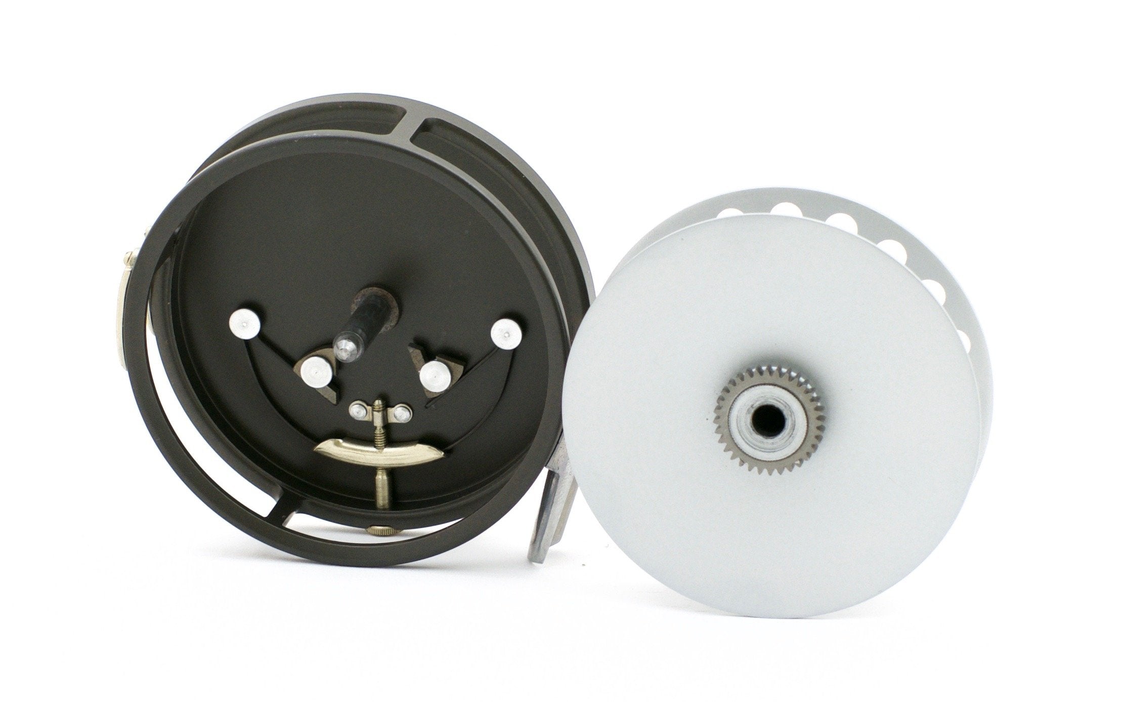 For sale here is a Hardy Princess fly reel and spare spool. The reel is in near mint condition. The spare spool shows minor wear. Desirable two-screw heavy duty line guide - easily reversed as are the pawls for right or left hand retrieve. Comes with its red and cream Hardy zippered case as well as its original box in fine condition. Diameter 3 1/2". Weight 4.5 oz. The Princess reels hold up to a DT7+50 or DT6+70.