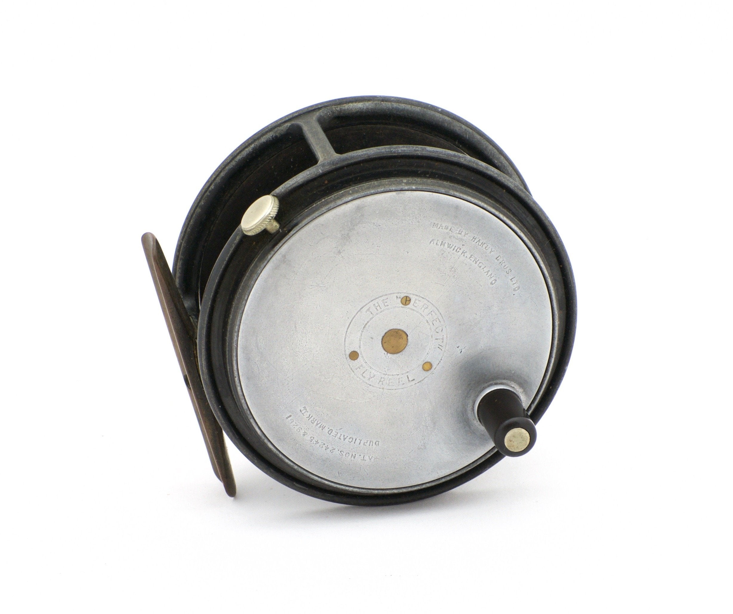 For sale here is a Hardy Special Perfect with duplicated MKII check and ebonite handle. Full length smooth brass reel foot that has not been altered. The tensioner works as intended with a good range of spring tension. The diameter of all Special Perfects is 3 1/4" and the spool width is 1.05" at its widest point. Excellent+ cosmetic and mechanical condition.