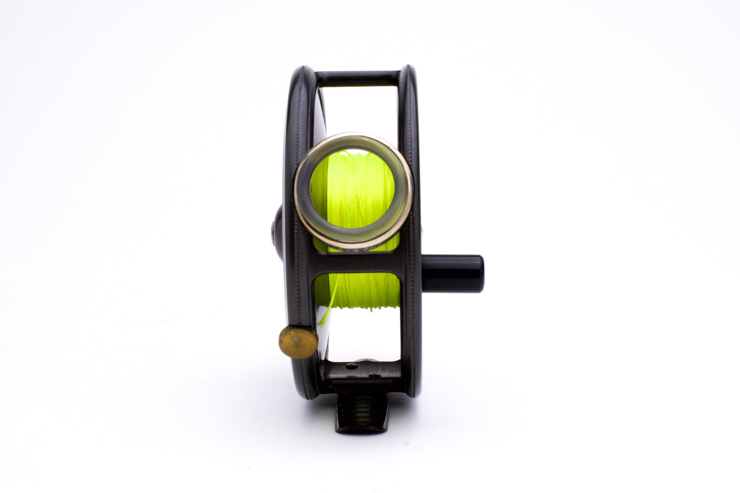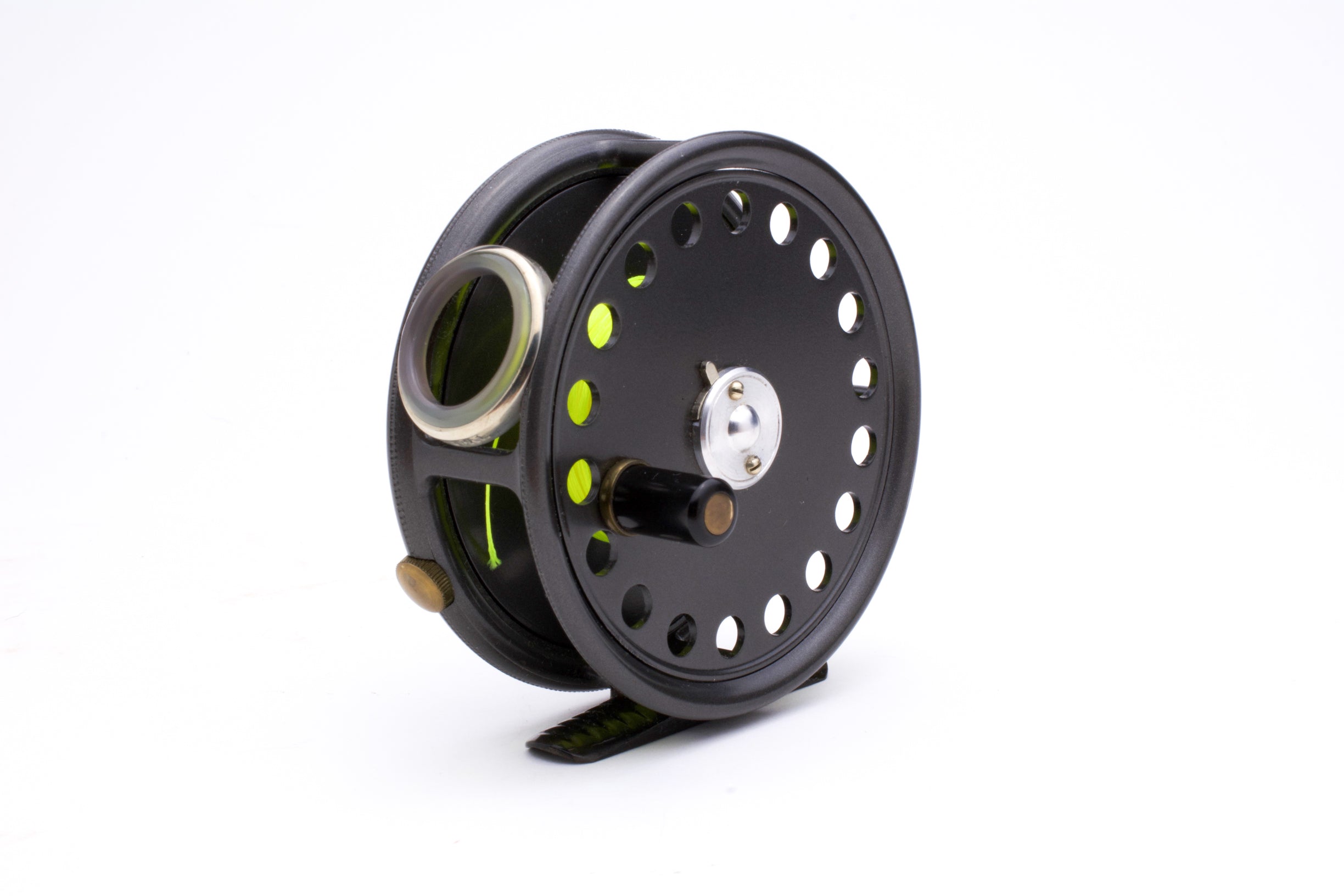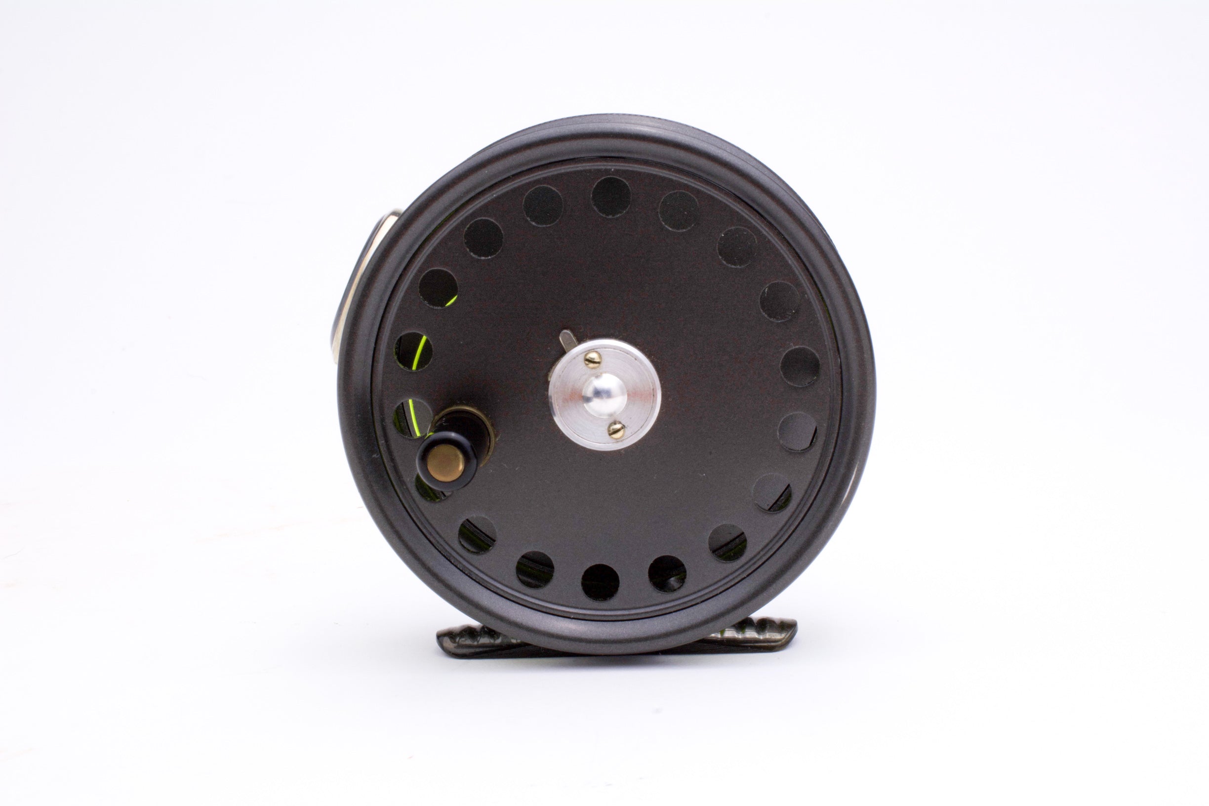 A superb Hardy St George fly reel, 3 3/8" and set up for RHW. It has backing put on it but I can find no sign of any use. Duplicated MK II check. 2 screw latch with a ribbed foot. Gray agate in perfect condition. The sideplates and frame are all clear and clean. Comes in the original box.
