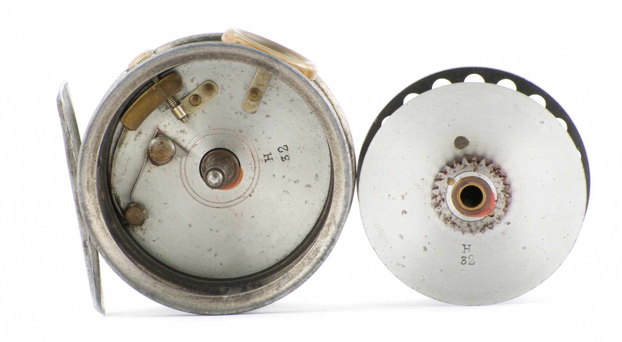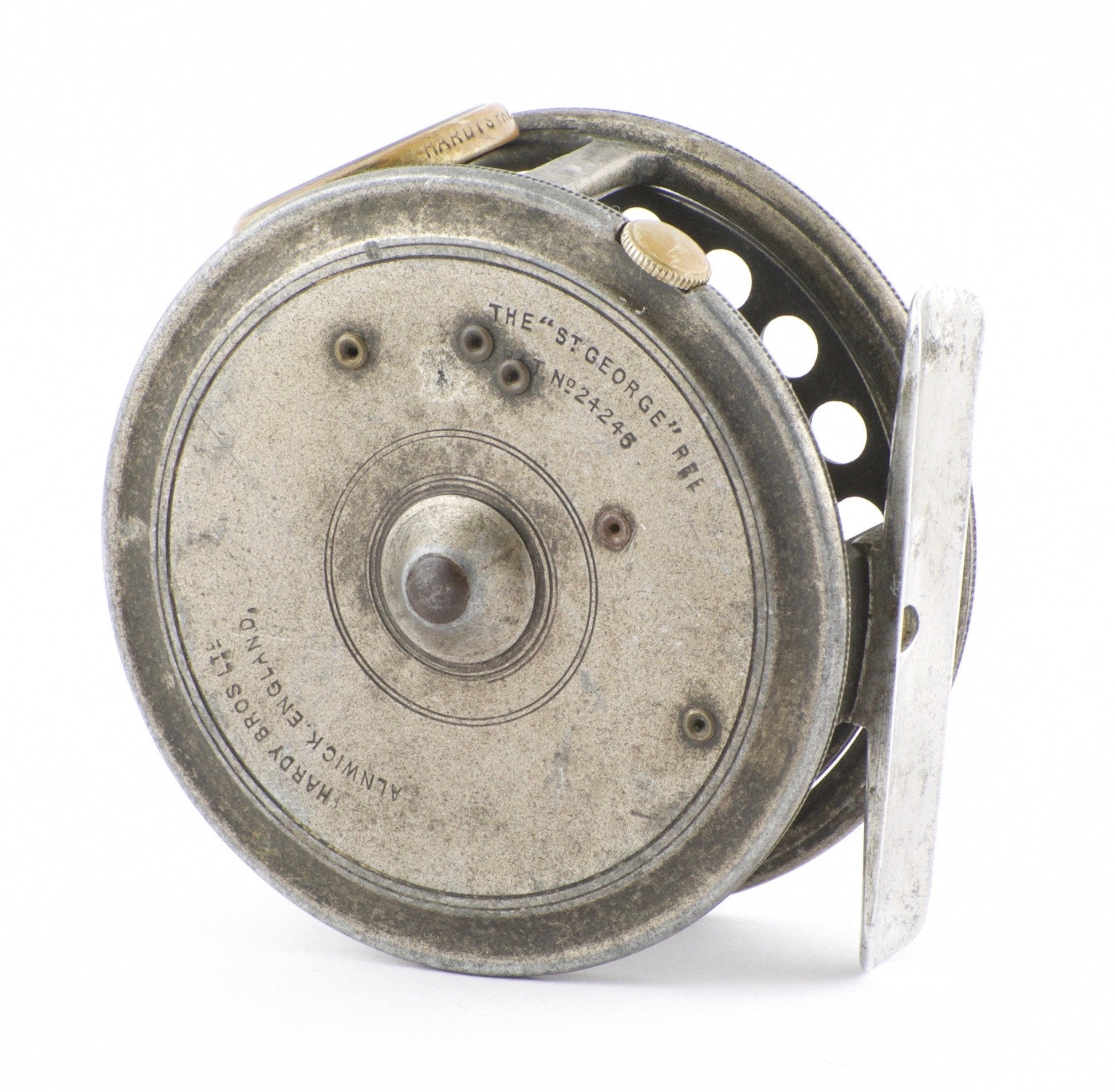 For sale here is a Hardy St. George 3 inch fly reel with three-screw latch. Excellent condition throughout. Smooth alloy foot and MKI check from 1917-1921. No cracks, chips, or dings. The dark brown agate line guide is crack-free. The tension regulator works as intended. Nice strong check throughout its range.
