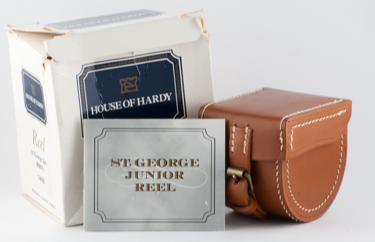 For sale here is a Hardy St. George Jr Fly Reel - 1998 Limited Edition Reproduction. RHW. Nickel silver line guard. The reel is in mint unused condition and comes with its original Hardy leather case, paperwork, and tattered box.