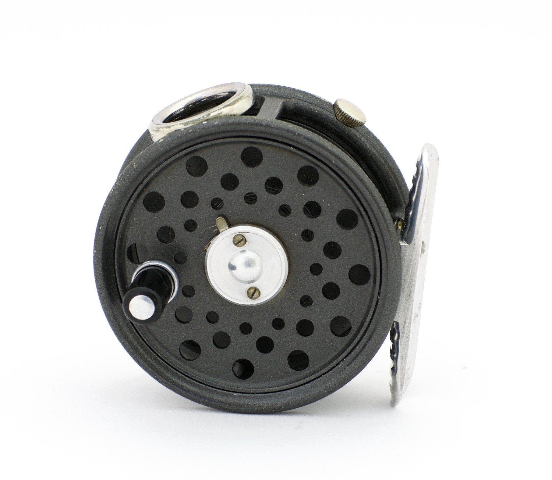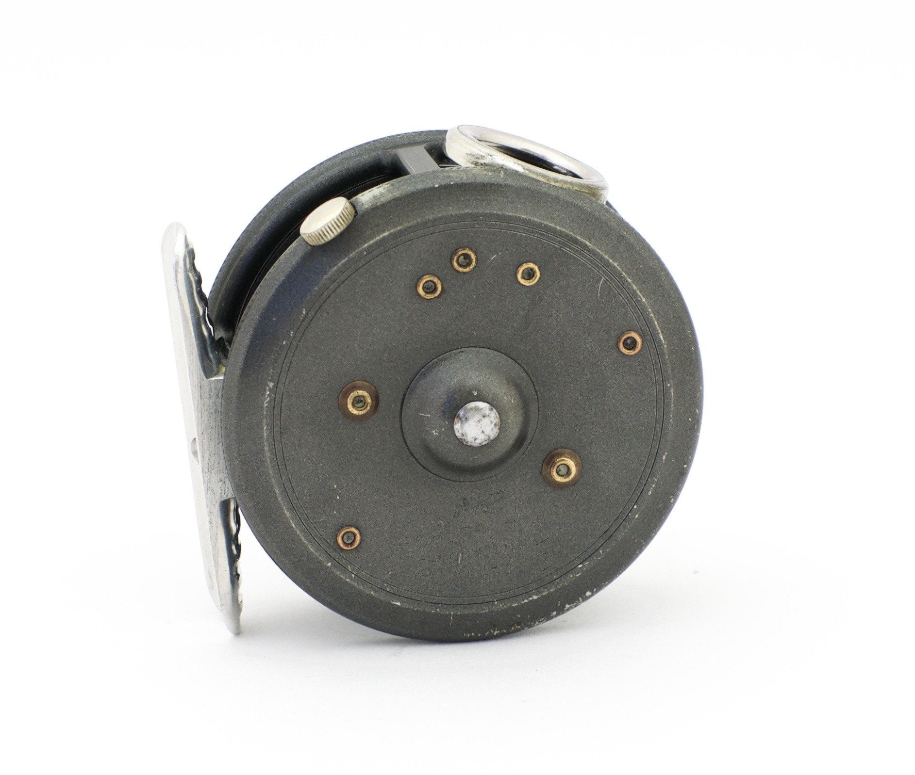 For sale here is a scarce Hardy St. George Jr. fly reel in left hand retrieve. Made in the 1950s. Two-screw latch. Excellent+ overall condition. Nickel silver (or monel?) line guide. Comes with an original zippered Hardy reel case. A rare find in LHW!