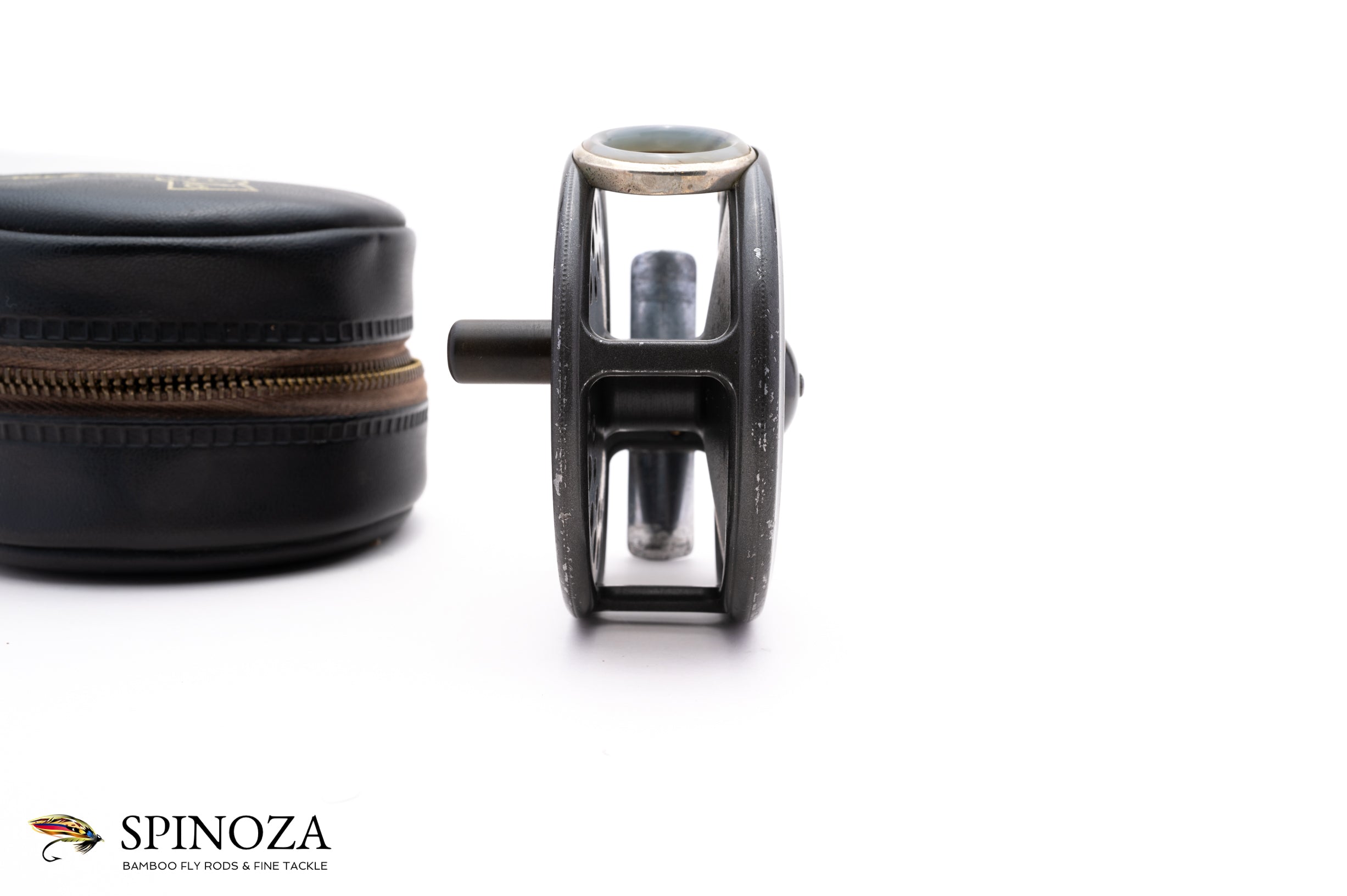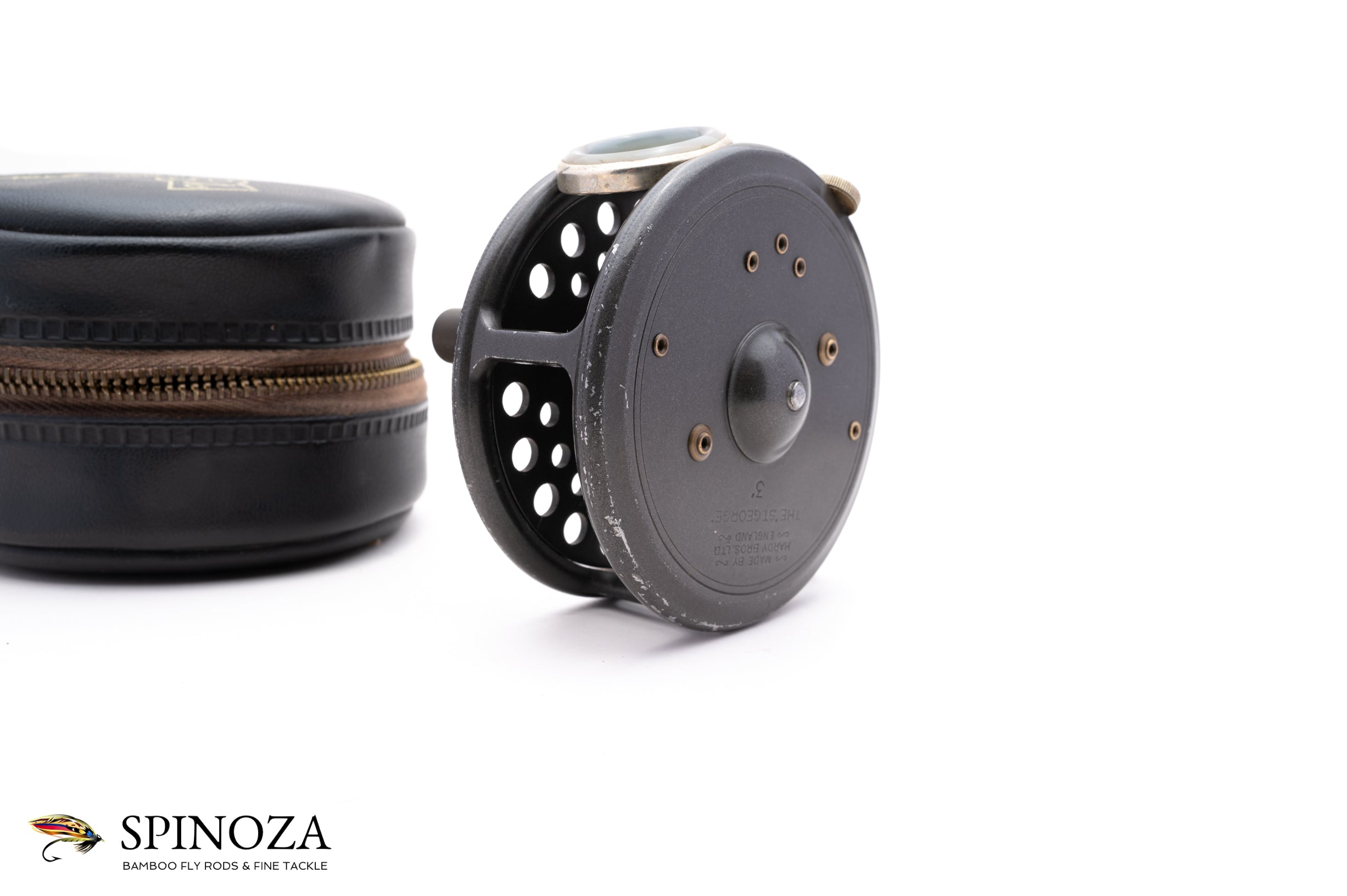 A nice Hardy St. George reel, 3" diameter and set up for RHW. Later 2 screw model. Unblemished agate line guard. Fine used condition with some expected loss of enamel on the rims and a little bit here and there on the rest of the frame. Mechanically sound. Smooth alloy foot. Smooth drag and the tensioner works as it should. The reel comes in a black Hardy vinyl case.