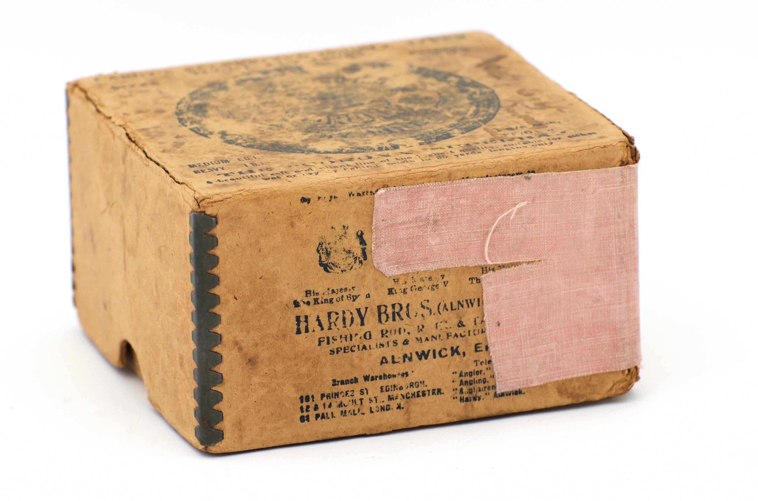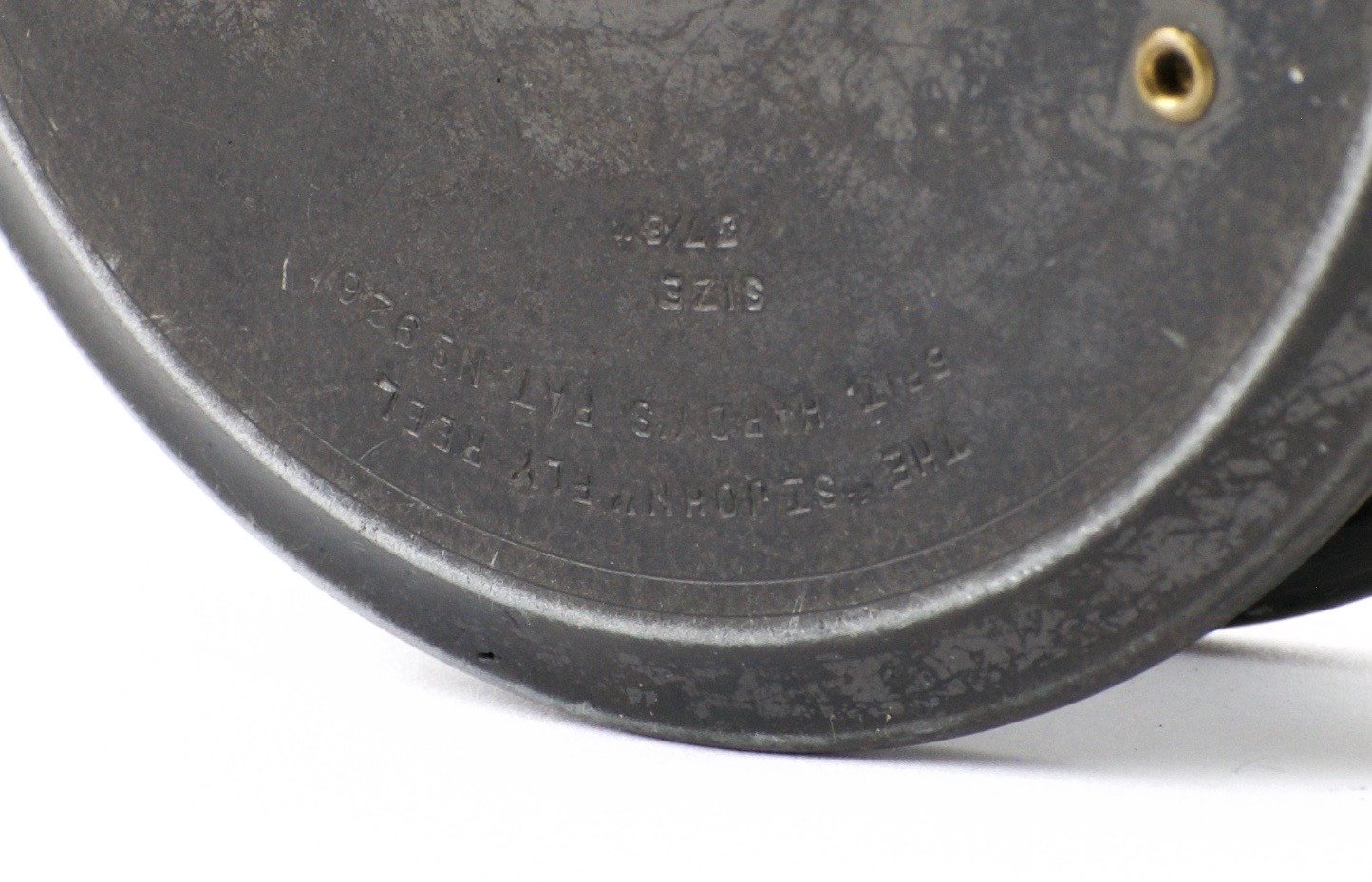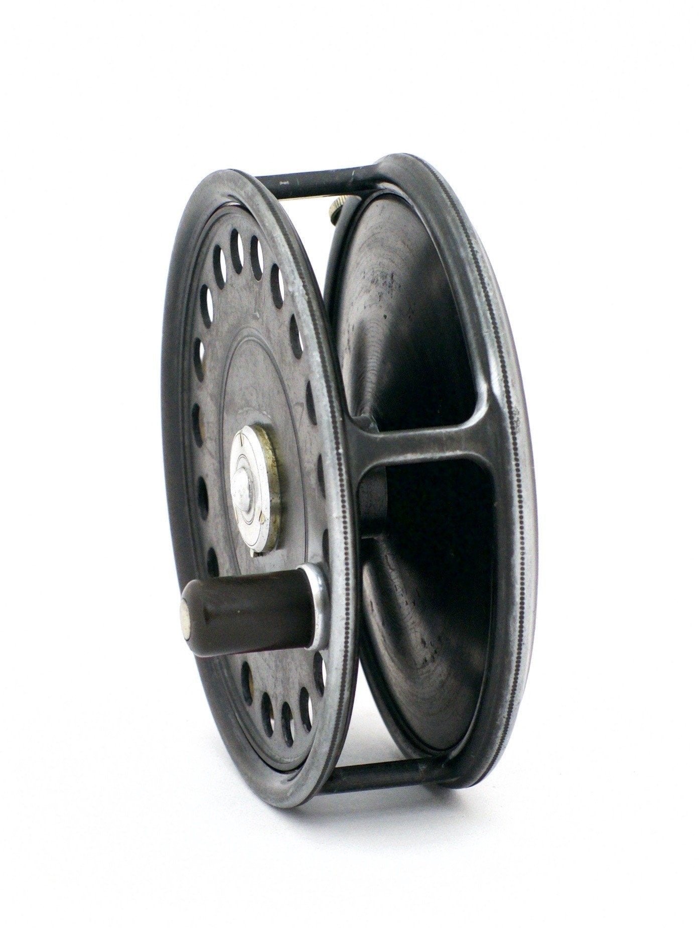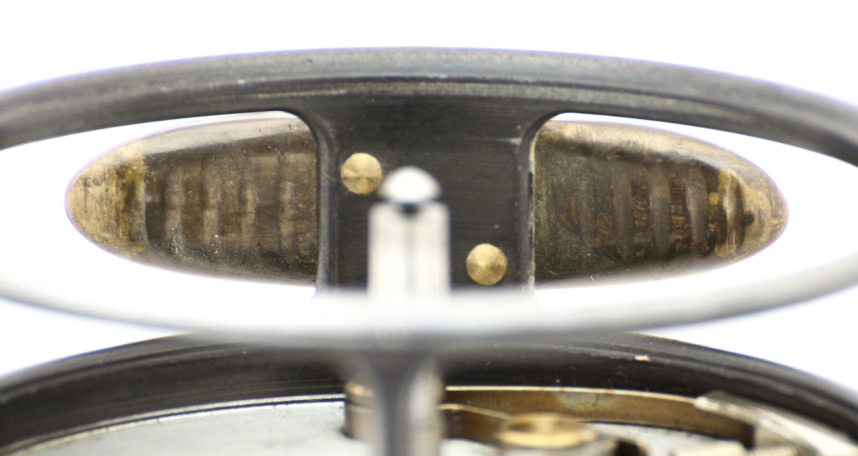 For sale here is a pre-war Hardy St. John 3 7/8" fly reel with the Duplicated MKII check. The leaded finish is amazing. Original, full length, and unaltered ribbed brass "bullet" foot (super scarce). Ebonite handle spins freely. Tensioner works perfectly. No line burns. No cracks/chips/dings. No problematic wobble or end play. Comes with its original Hardy box.