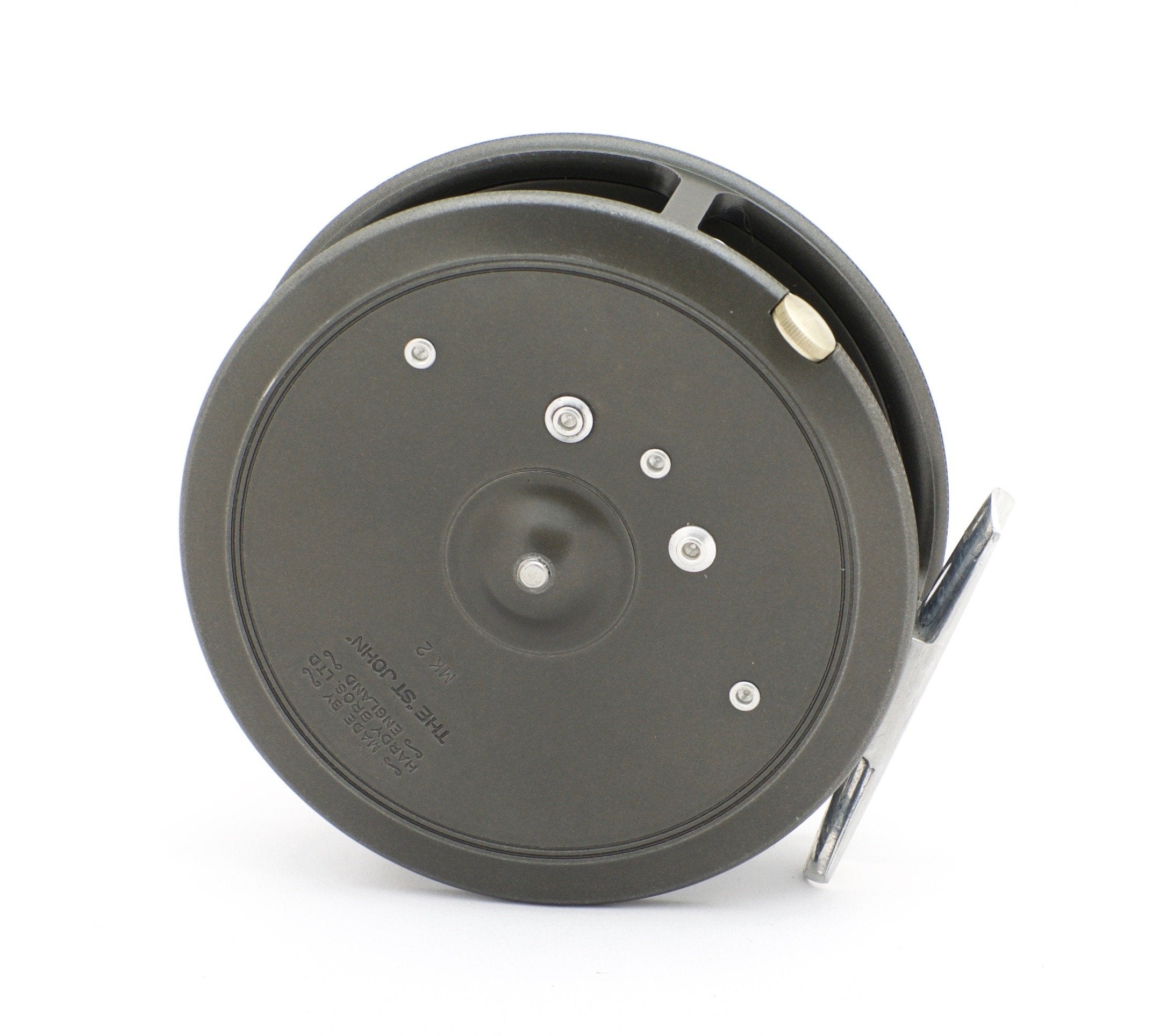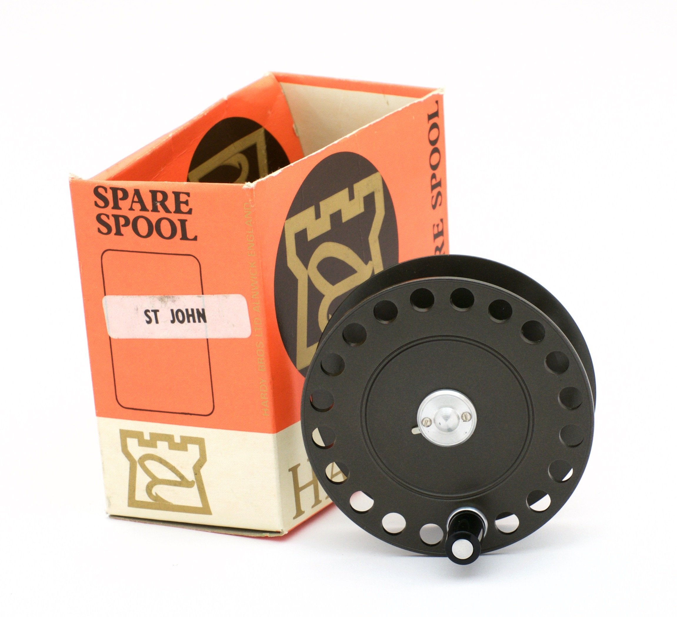 For sale here is a Hardy St. John 3 7/8" fly reel and two spare spools. Near mint condition. Right or left hand retrieve. The ebonite handle spins freely. Tensioner works perfectly. The reel comes with a Hardy reel case and the spare spools come with their boxes but no pouches.