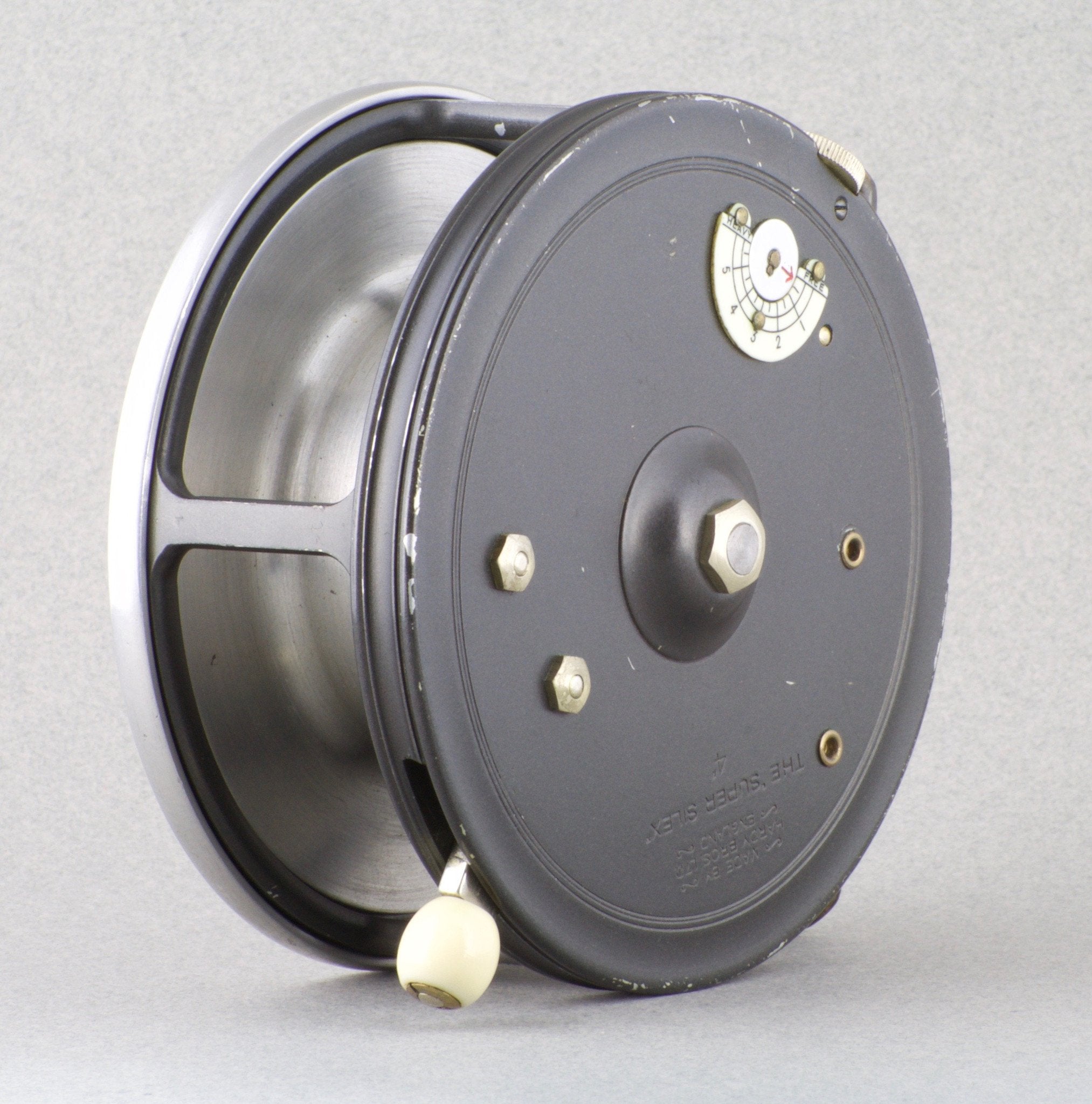 For sale here is a 4" Hardy Super Silex reel in excellent collector condition. No cracks, chips, line grooves or repairs and retaining the majority of its original lead finish. Unaltered full length ribbed brass foot. Free spinning spool and handles. No spool wobble or end play. Super tight reel!