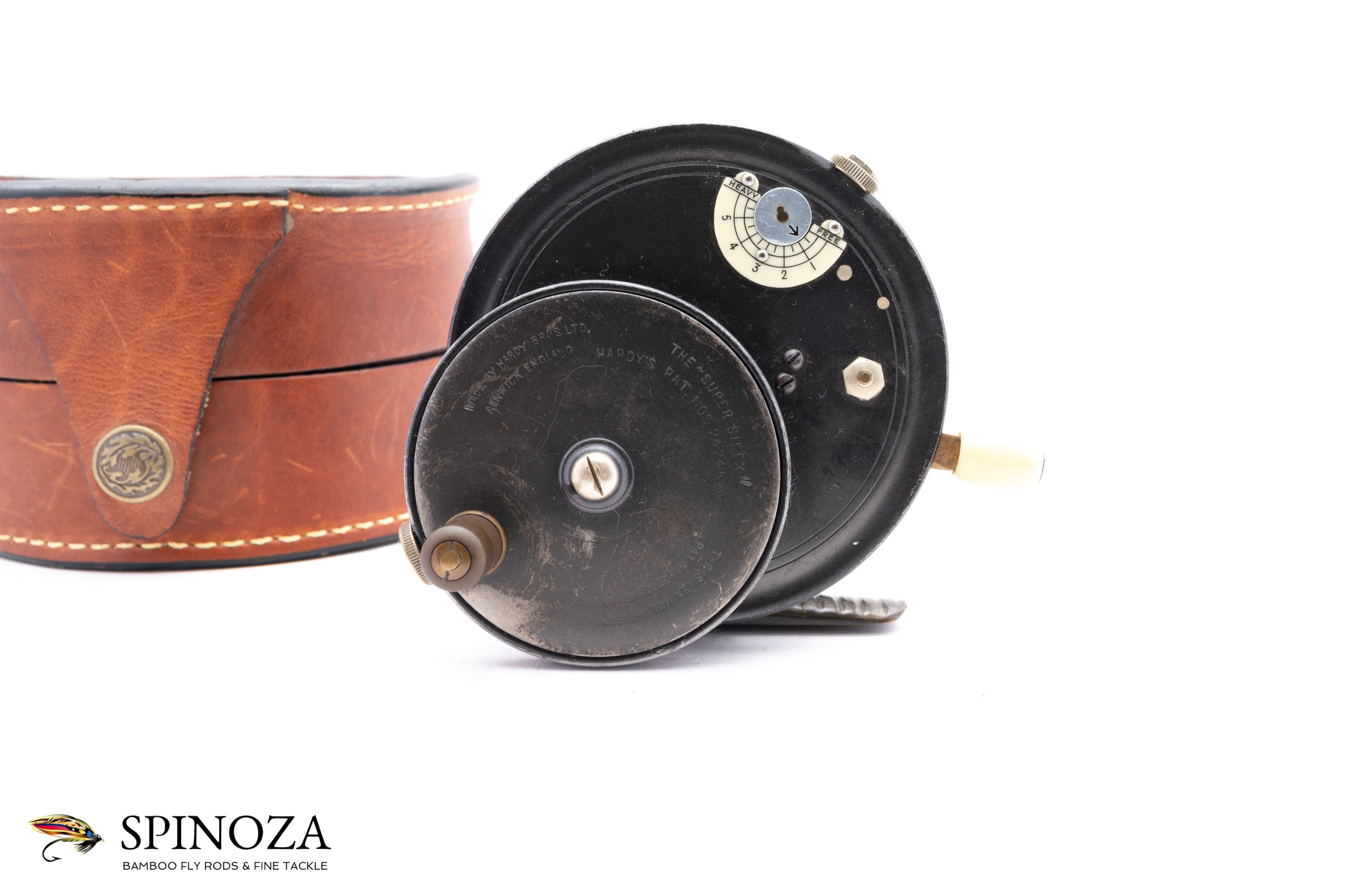 A scarce, Hardy Super Silex multiplier reel, 3 1/4" and in excellent original condition. These reels were made for a relatively brief window between 1930 and 1939. No meaningful issues that I could find, apart from the typical cosmetic wear for a reel of its vintage. The break-release works as it should with a free and easy free spool. The drag adjustment similarly functions properly. The handle on the multiplier is brown and spins easily. Ribbed brass foot. For the mechanically inclined, the internals of this reel are a pure delight. The initials "RM" are stamped on the interior of the frame (Robert McLain, 1928–1939). The reel comes in a heavy handsome leather fleece lined Eddie Bauer case for protection. A very fine example of this rare reel.