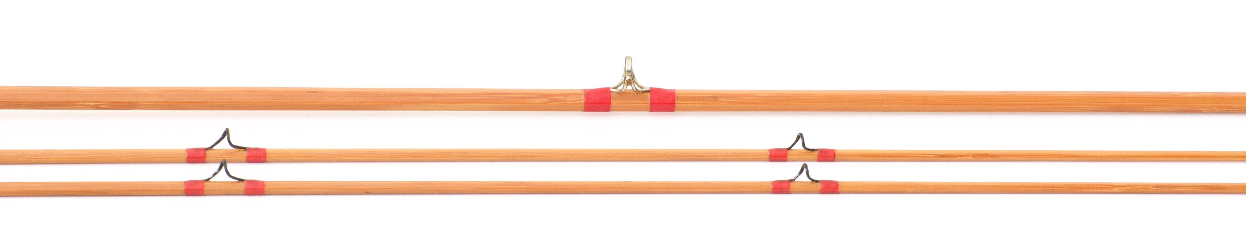 The rod features straw-colored blonde cane with bright Chinese red wraps. Marty DeSapio re-wrapped some of the snake guides with a thread that matches the originals very well.