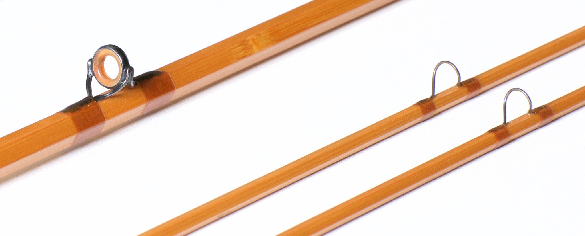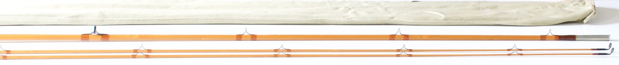 For sale here is a very scarce Hoagy Carmichael Jr. Model 212 bamboo rod -- 8'6" 2/2 for a DT5 line. This is one of six Model 212's ever made by Mr. Carmichael. The rod has seen little use. Excellent ++ condition. Progressive medium fast action. Nickel silver pocketed cap and ring reel seat over a walnut spacer. All sections are straight and full-length with no prior repairs and none needed. The varnish remains in amazing condition. The tip top guides were a custom request from the original buyer and Hoagy has confirmed this is the only rod made with these tip tops. Original bag and ferrule plug. A replacement tube accompanies the rod. The rod weighs 4 1/2 oz. and the ferrules are size 14/64 with an excellent fit. Mr. Carmichael only made 103 rods in his rod-building career and this one ranks up there with his finest!
