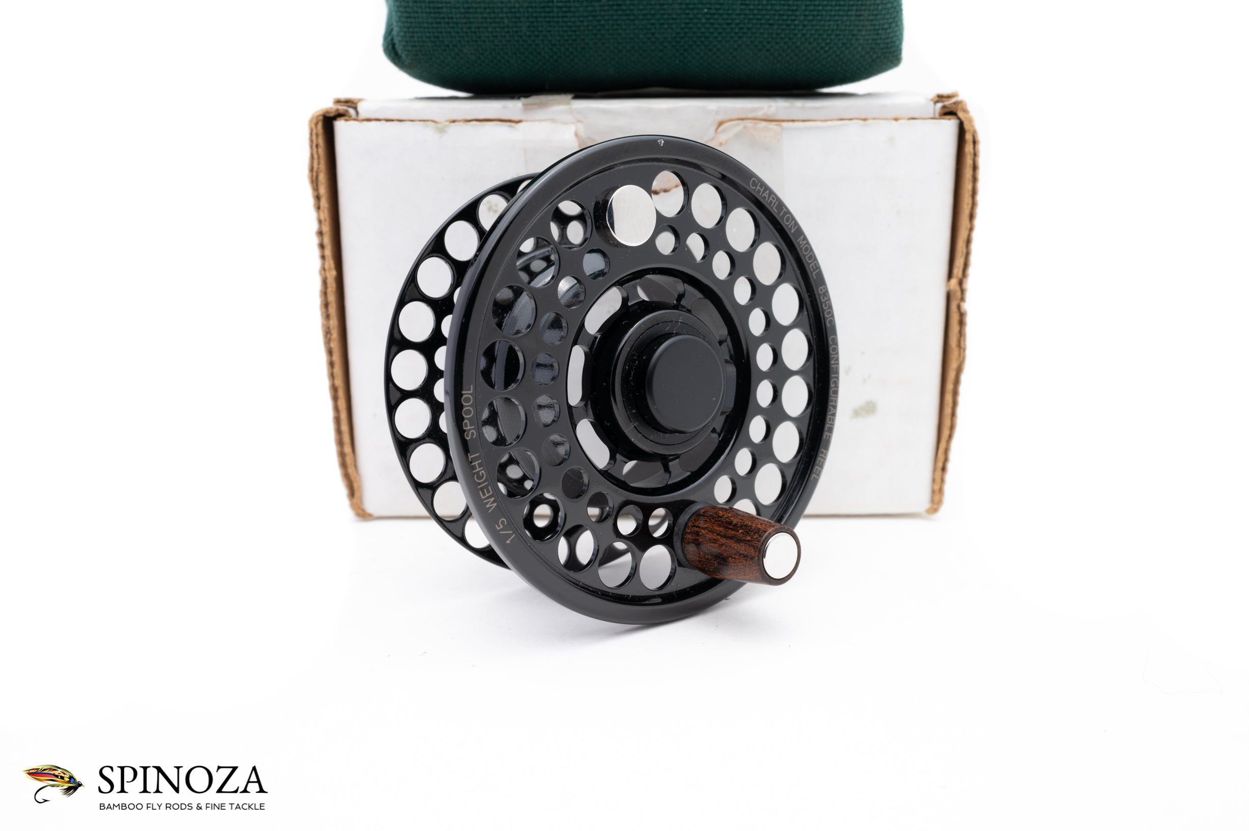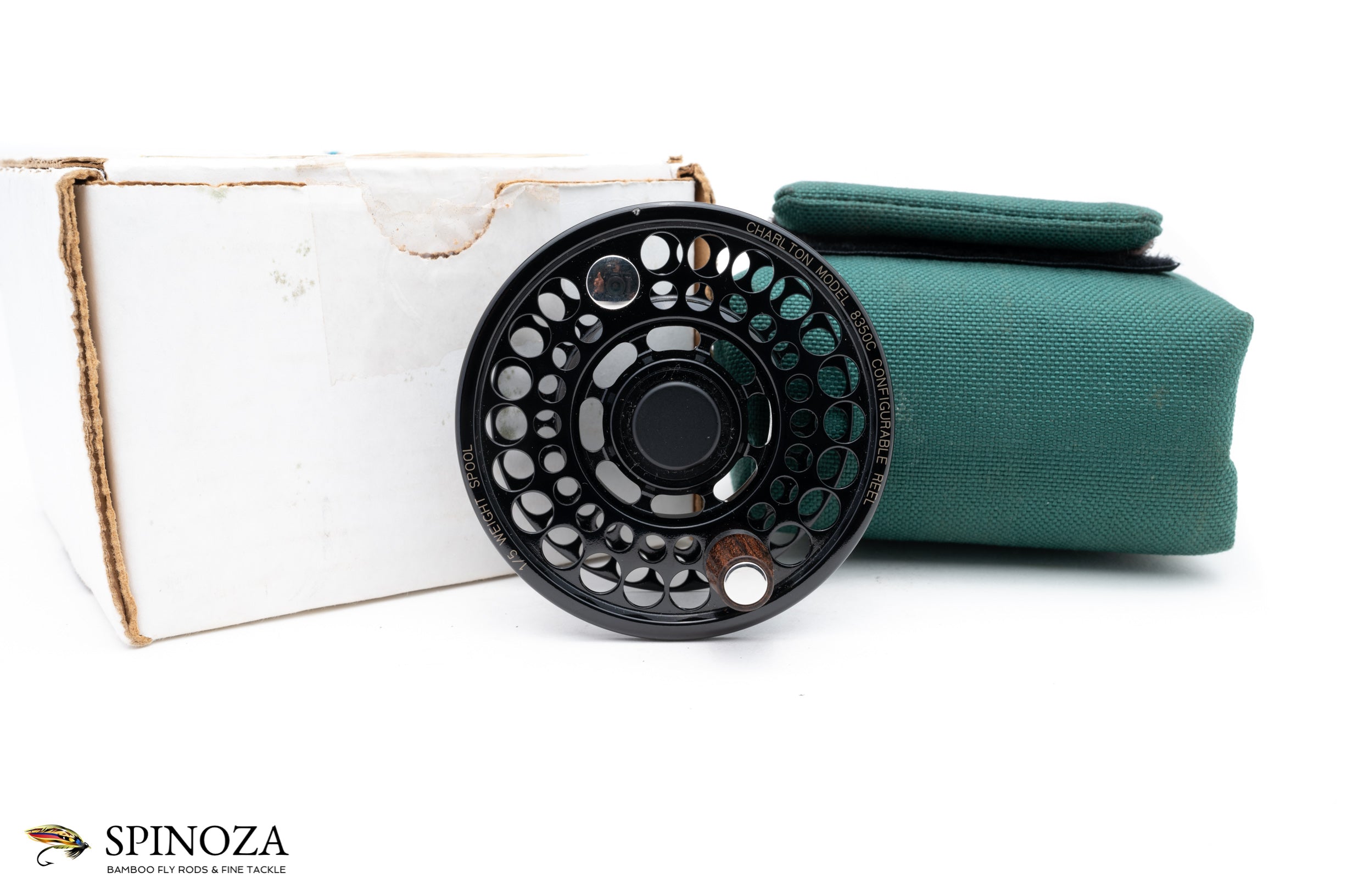 A 1/5 spare spool for a Charlton 8350C fly reel. Excellent overall condition with one small cosmetic nick in the frame edge but clean otherwise. Comes with the original green cordura pouch and box with paperwork.