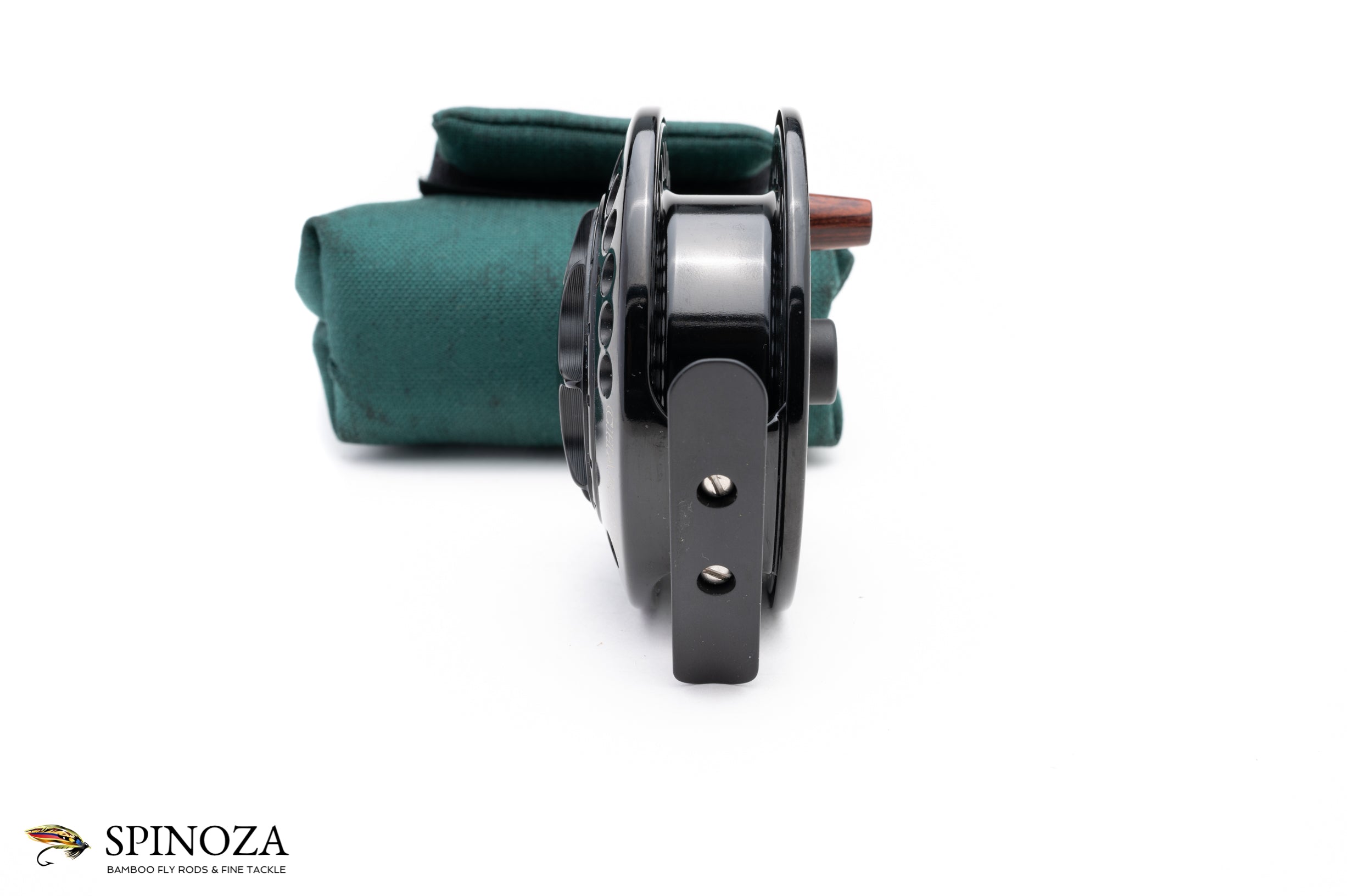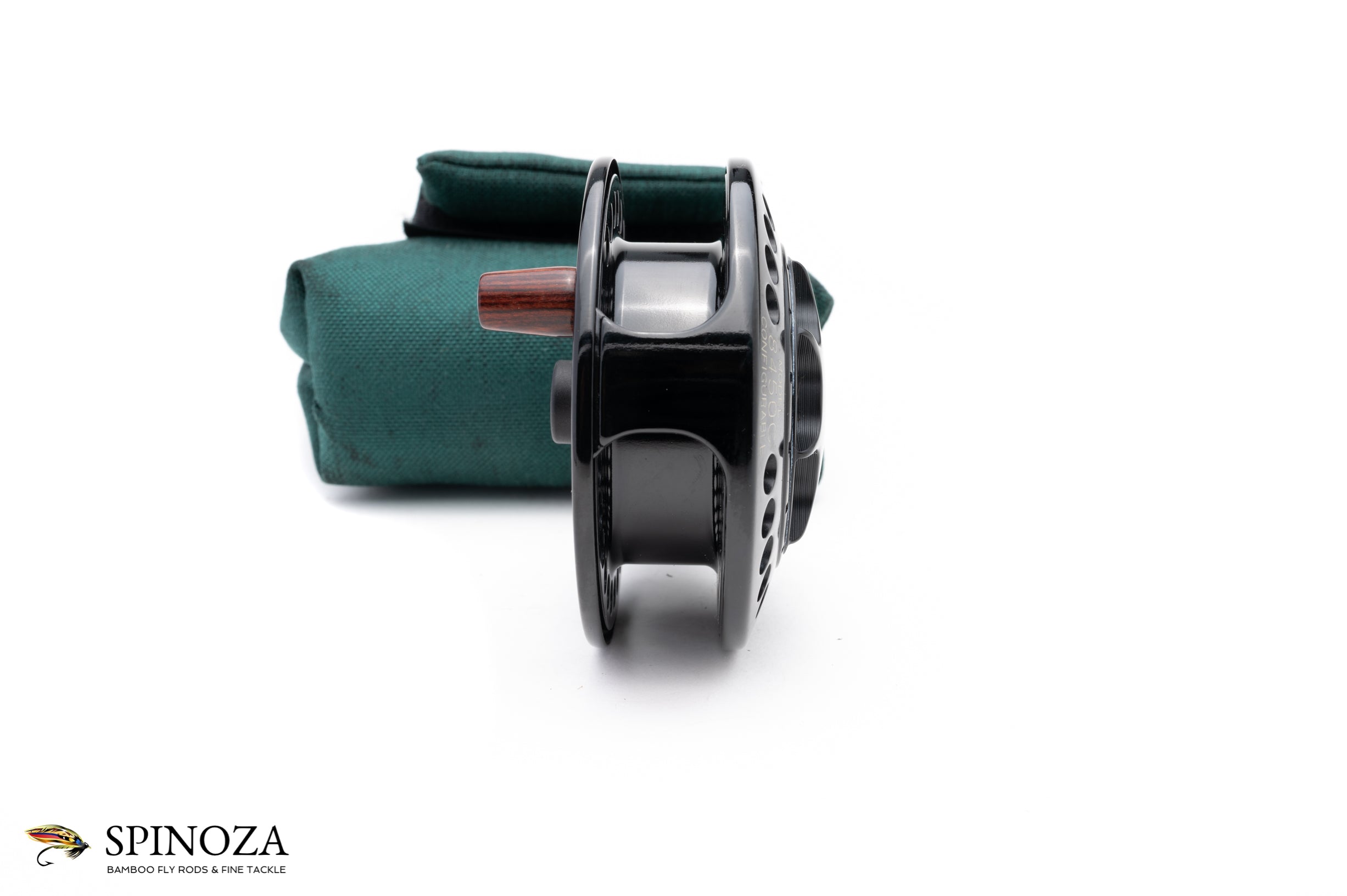 A Charlton 8450C fly reel with a 3/4 spool in mint, unused condition. The reel is set up for LHW but can be easily converted to RHW. Black type-III anodizing for durability and this boasts Charlton's clever configurable system accommodates three different quick change spools: 3/4, 5/6, and 7/8 weight so that you can cover a range of six line weights with a single reel. Carbon fiber disk drag system that is very powerful. All mechanical components are enclosed to protect against contamination from the elements. Push button spool removal and a snap reverse system makes changing retrieve directions simple and easy. Comes with its original cordura reel pouch.