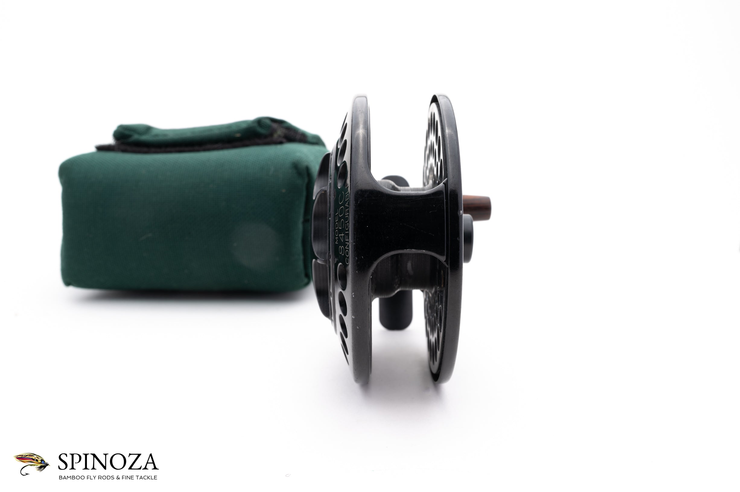 A nice Charlton 8450C fly reel with a 7/8 spool. Set up for RHW but can be easily reversed to LHW. Good used condition with some scuffing on the frame edge and a little minor cosmetic rubbing here and there. Exceptional quality and the intelligent configurable design that these reels were known for. With the quick change of a spool you can alter both the weight of the reel and line with appropriate backing capacity, and swap in one of the 3/4, 5/6, and 7/8 weight options. Carbon fibre disk drag system. Type III anodization for maximum saltwater protection. Oversized 5/8" smooth-riding aerospace bearing with a complete enclosure of all mechanical components to protect against contamination from the elements. The reel packs into the original green cordura pouch.