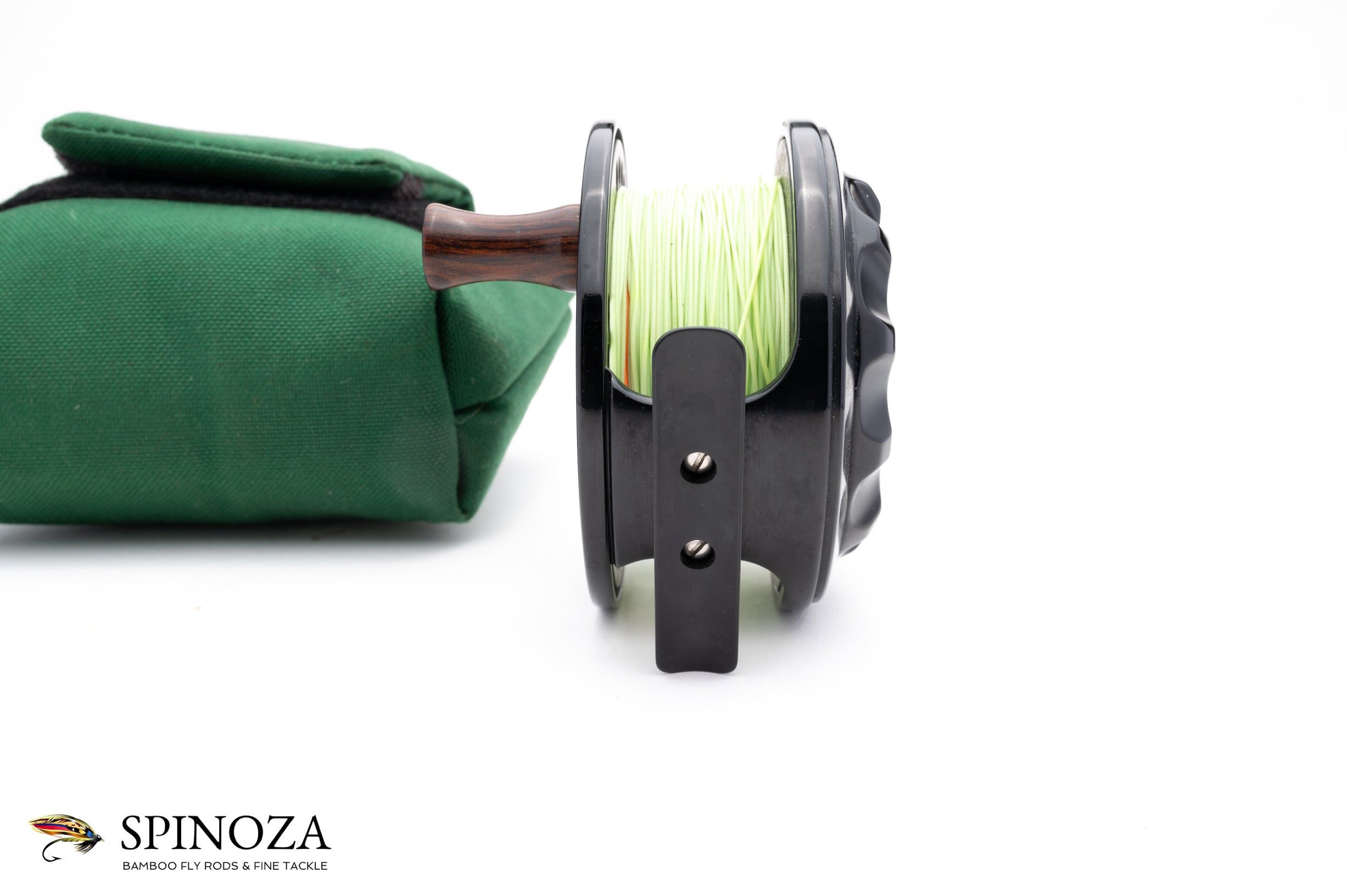A nice Charlton 8500 Signature Series 1.2 fly reel, 3 3/4" and set up for LHW. 1.2" spool width and the reel weighs 14.3 ounces with a line fully loaded on it. Good used condition with some normal cosmetic wear throughout but nothing particularly noteworthy. Designed to hold a WF10-WF12 with 200+ yards of backing. With Jack Charlton’s secret formula sealed carbon fiber drag, this is arguably one of the best saltwater models designed to handle anything you can throw at it. The reel packs into the original Charlton green cordura pouch and is ready for action!