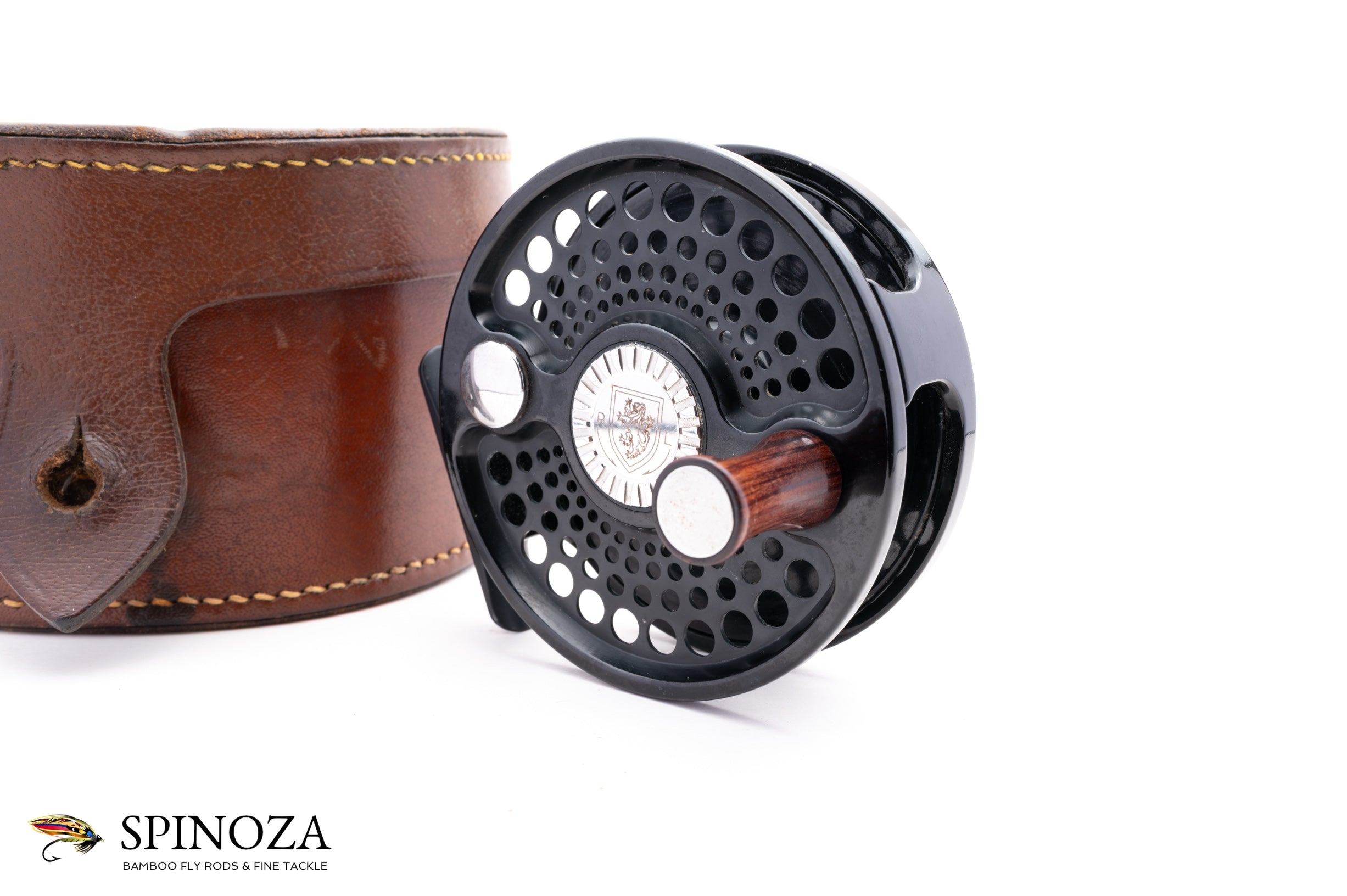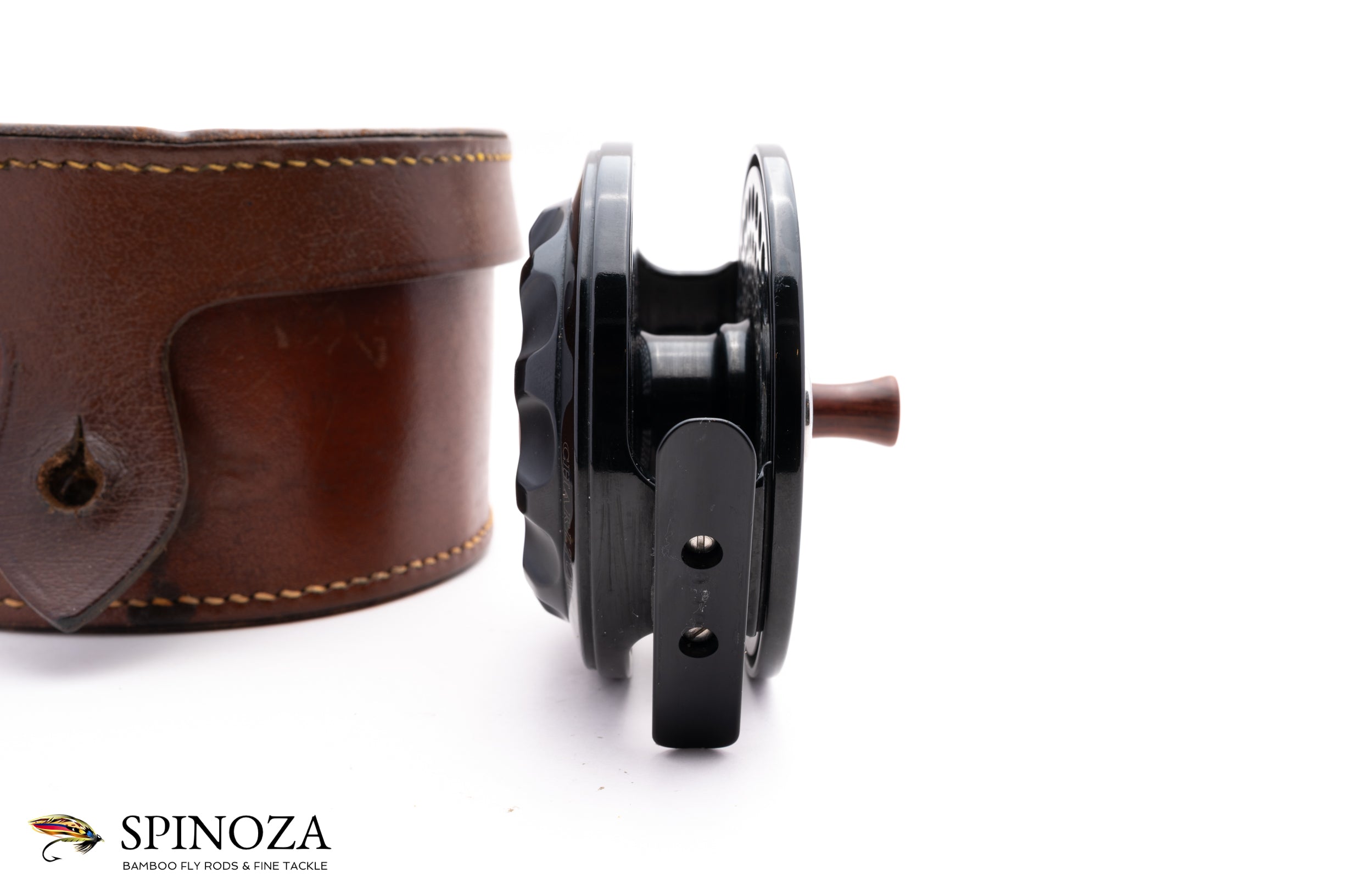 A nice Charlton 8500 Signature Series 0.8 fly reel in RHW. Excellent very lightly used condition, bordering on near mint, with just a few trace bits of light cosmetic wear here and there. The 0.8 spool can fit a WF8+150 30# or a WF10+160 20#. Meticulously coated with a high-polished, deep black Type III anodized finish with matte reliefs. Fully machined from high-grade aluminum and steel. Has a sealed, self-adjusting carbon fiber disk drag which includes over 9-square inches of surface area and boasts five oversized aerospace precision bearings. A large arbor design gives the angler over 1 foot of line retrieve per revolution. The reel packs into a large handsome leather case with "Charlton" and "Joe Garman" stamped into the top of the lid, the latter of which was the owner of this reel.