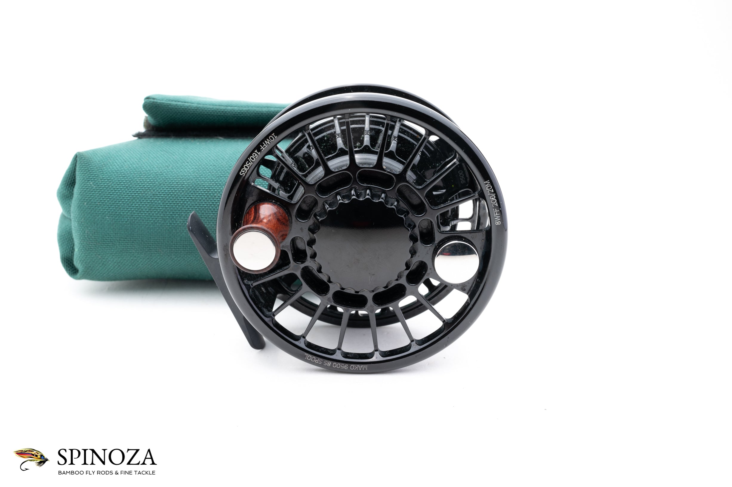 A nice Charlton Mako Reel Model 9550 with the 8/10 spool, set up for LHW. 4 1/2" diameter and weighs 13 7/8 oz. Capacity for approximately 220 yards of dacron with a WF8 or 260 of gel spun with a WF10. All black hard anodized frame. Large arbor design with lots of porting to reduce weight. Powerful sealed disc drag. Excellent used condition with some wear marks here and there though nothing substantial. Comes in a Charlton green cordura pouch.