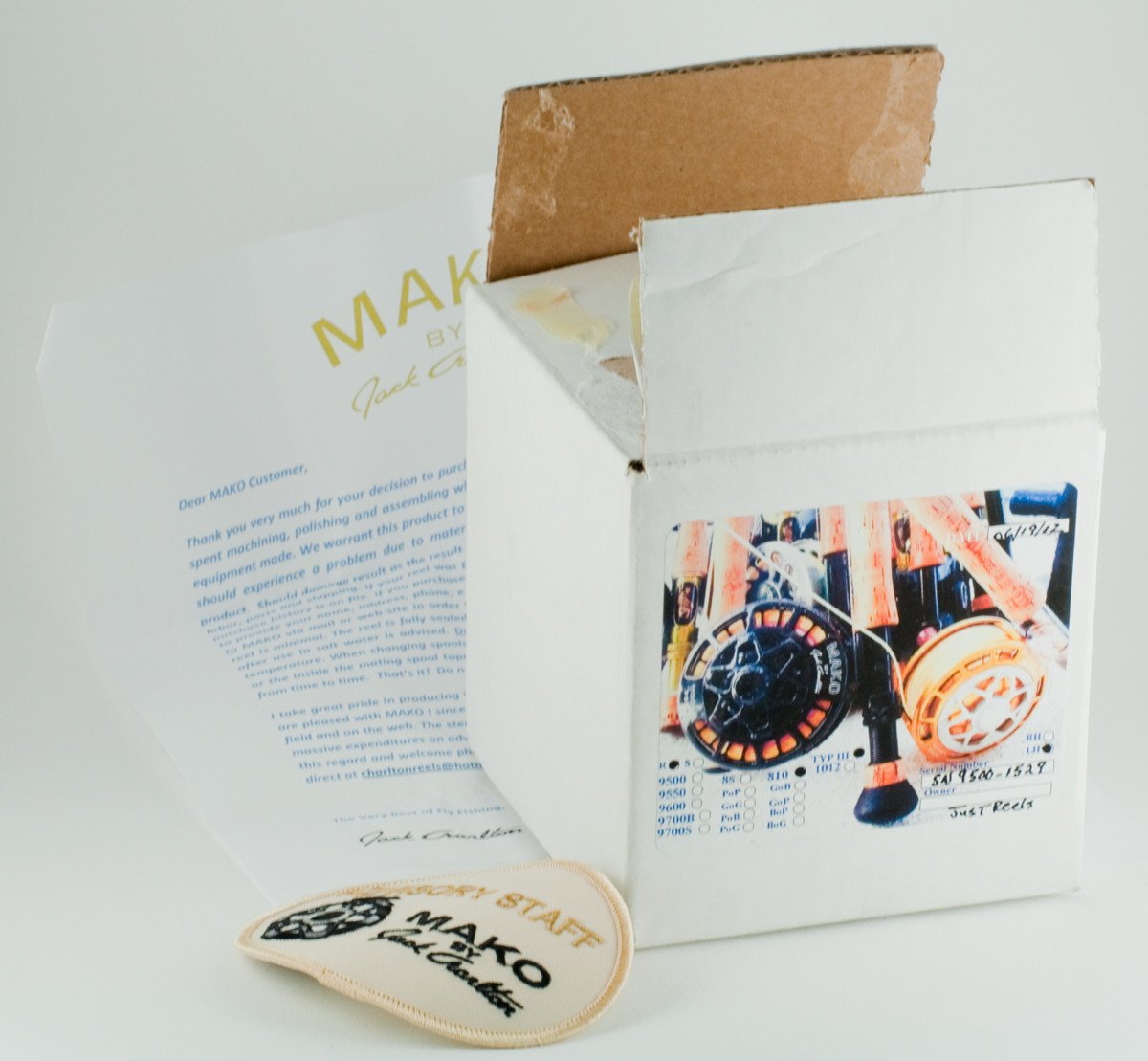 For sale here is a Charlton Mako Reel Model 9500 with the 8/10 spool. Left-hand retrieve. Excellent plus condition with a few water marks in the Type III anodized finish. 4" diameter and 11.7 oz. Comes with original badge, pouch, box, and paperwork. Also comes with a Rio Redfish WF8 line and backing in near new condition.