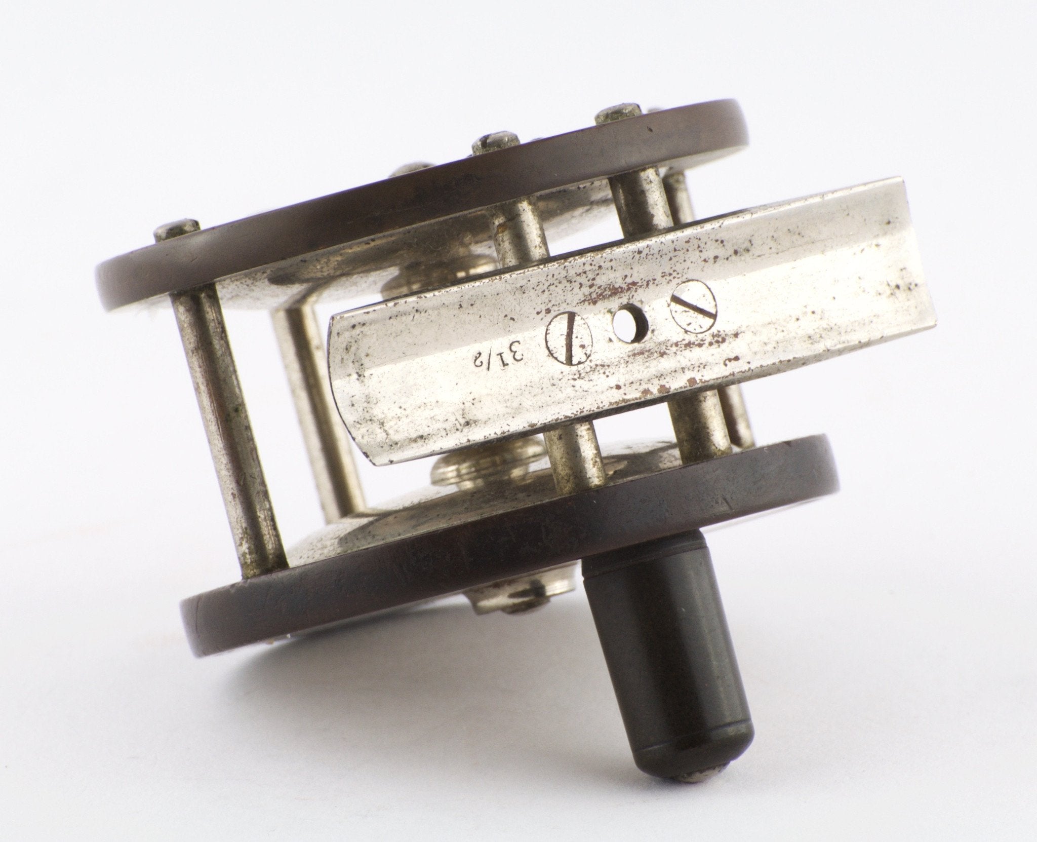 For sale here is a Julius Vom Hofe Platewind fly reel - size 3 1/2. 2 3/8" diameter and 1" wide spool. Fixed click check. The hard rubber is in fine shape with no chips or cracking. Excellent plus overall condition. The spring is nice and strong and favors left hand retrieve.