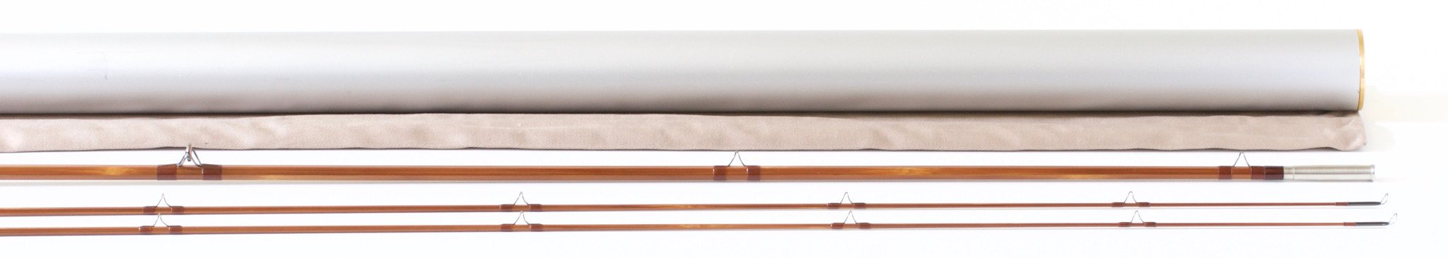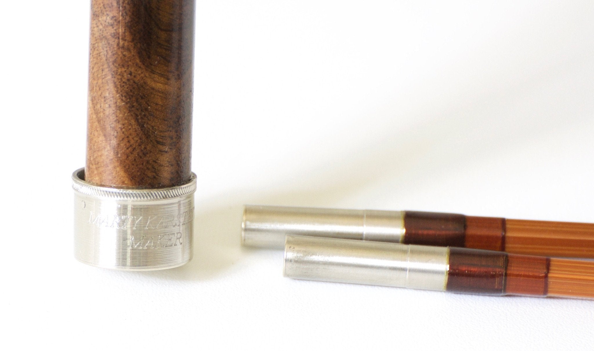 For sale here is a Marty Karstetter Hollow-Built Bamboo Rod - 8'6 2/2 5wt. The rod is in excellent used condition. Brown silks against moderately tempered cane. Agate stripping guide. Modified full wells grip. Bright cap and ring reel seat over a fine wood spacer. "Marty Karstetter Maker" engraved on butt cap. Swiss-style ferrules, sizes 16/64 and 11/64. The rod has a very nice dry-fly action on the faster side of medium-fast. Comes with original bag and tube.