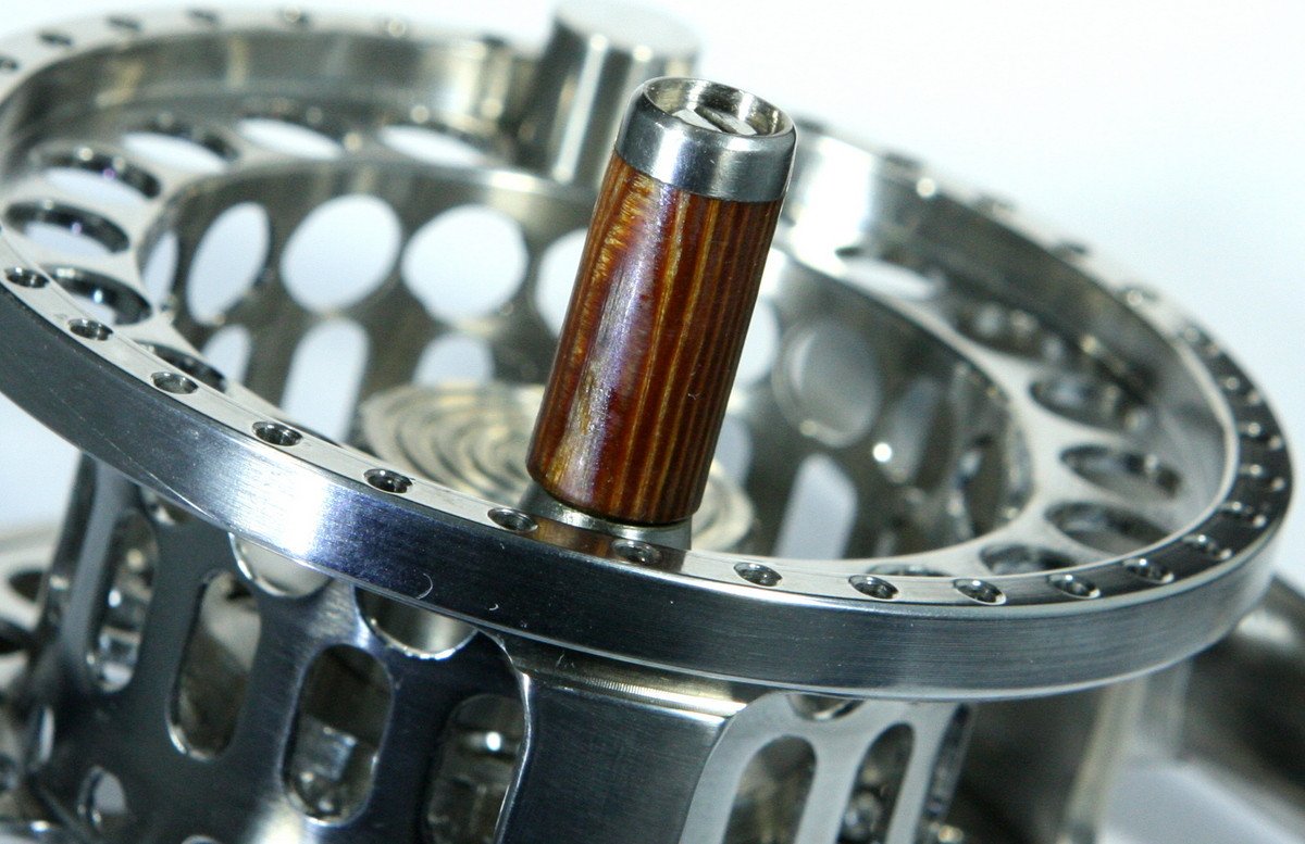 For sale here is a Megoff Model MDS 35 DD LA Ti fly reel made by Alex Kaplun. The reel is machined from solid, high-grade titanium and built to last longer than any of us will! The MDS reel models have a skeletal frame design, carbon fiber disc drag, and outgoing click. This 3-5wt model is designed for freshwater species and has less drag than the other two models.