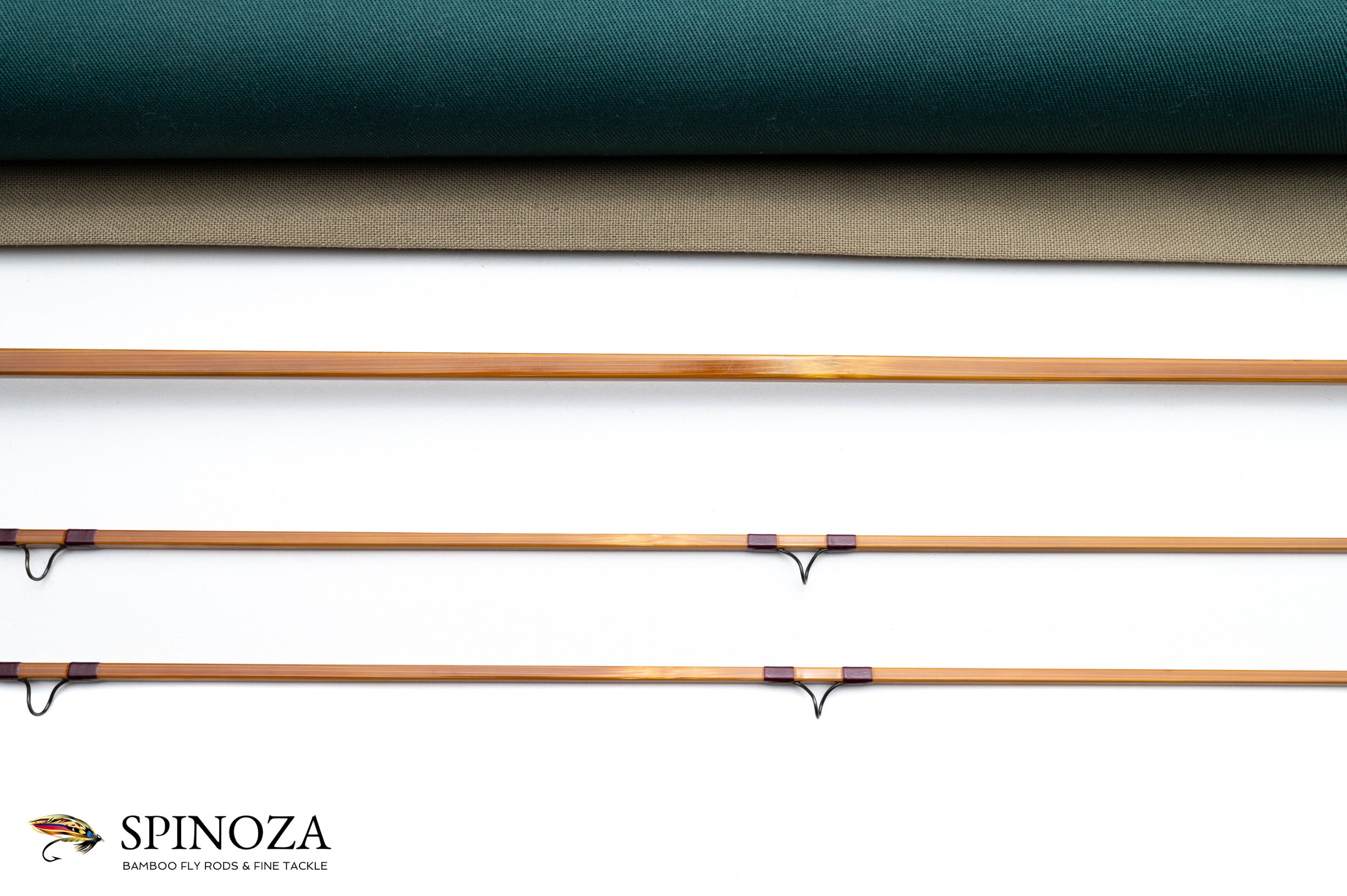 A gorgeous Dana Gray "Carlson Four" quad bamboo fly rod, 6'6", 2-piece, 2-tip, and built for a #4 line. Serial #066-4652 made in 2006. Mint, uncast condition. 2.9 ounces. Mirrored tips. Medium fast action. On a rare occasion a maker's rod really blows me away, and this is one of those times. Dana puts it all together on this rod with superb machining of the hardware to the perfect varnish coat. The node spacing seems random but great care has been taken so none are close to another. The main wraps are maroon with black edges at the keeper and male ferrules, and a set of 3-2-1 signature wraps done in black. The step ferrules are oxidized jet black and squared to the four sided rod sections. Black stripper and high arch snake guides. The grip is 6" long if you include the front cork check that is squared to the grip, which is itself shaped to a western profile. The slide band and cap reel seat are oxidized jet black and are ornamented with delicate knurls. The cap is stamped "Dana Gray, Maker". The seat is a varnished and mortised mahogany wood. The rod packs into a tan cloth bag and the tube is polished aluminum with Dana's own brass hardware and a white felt insert in the brass cap.