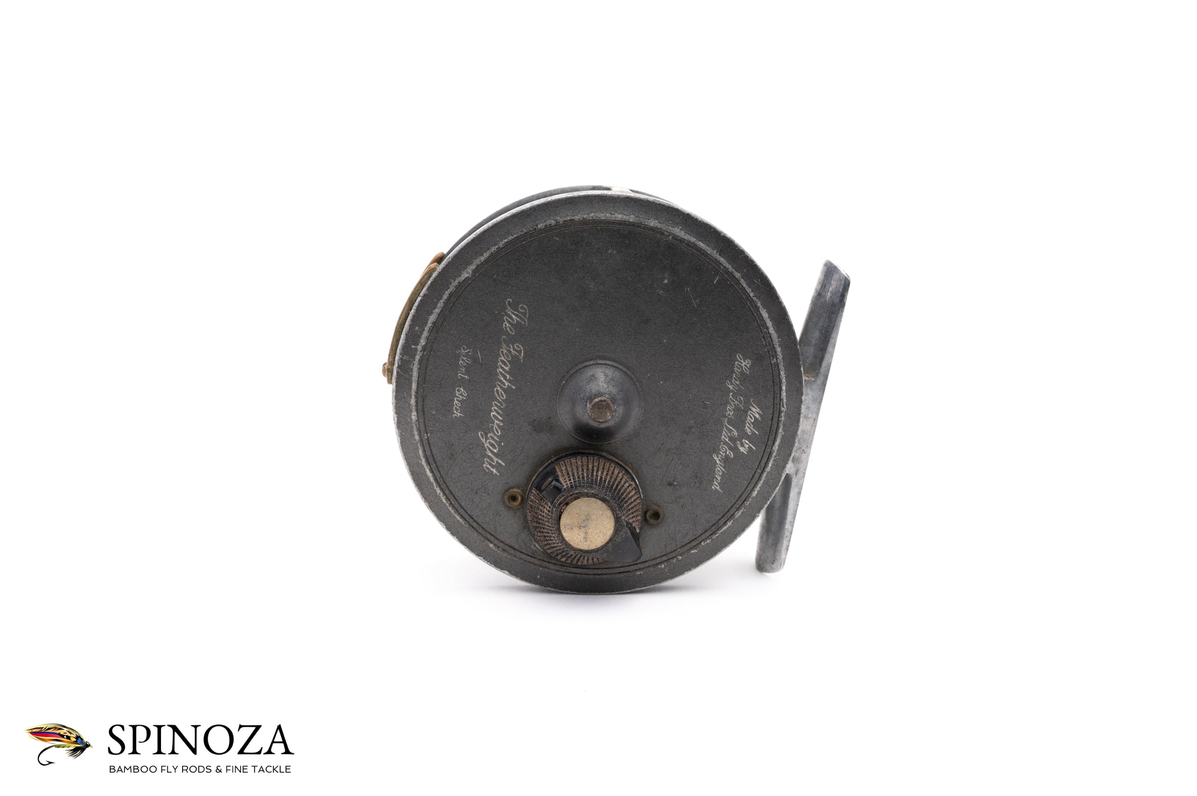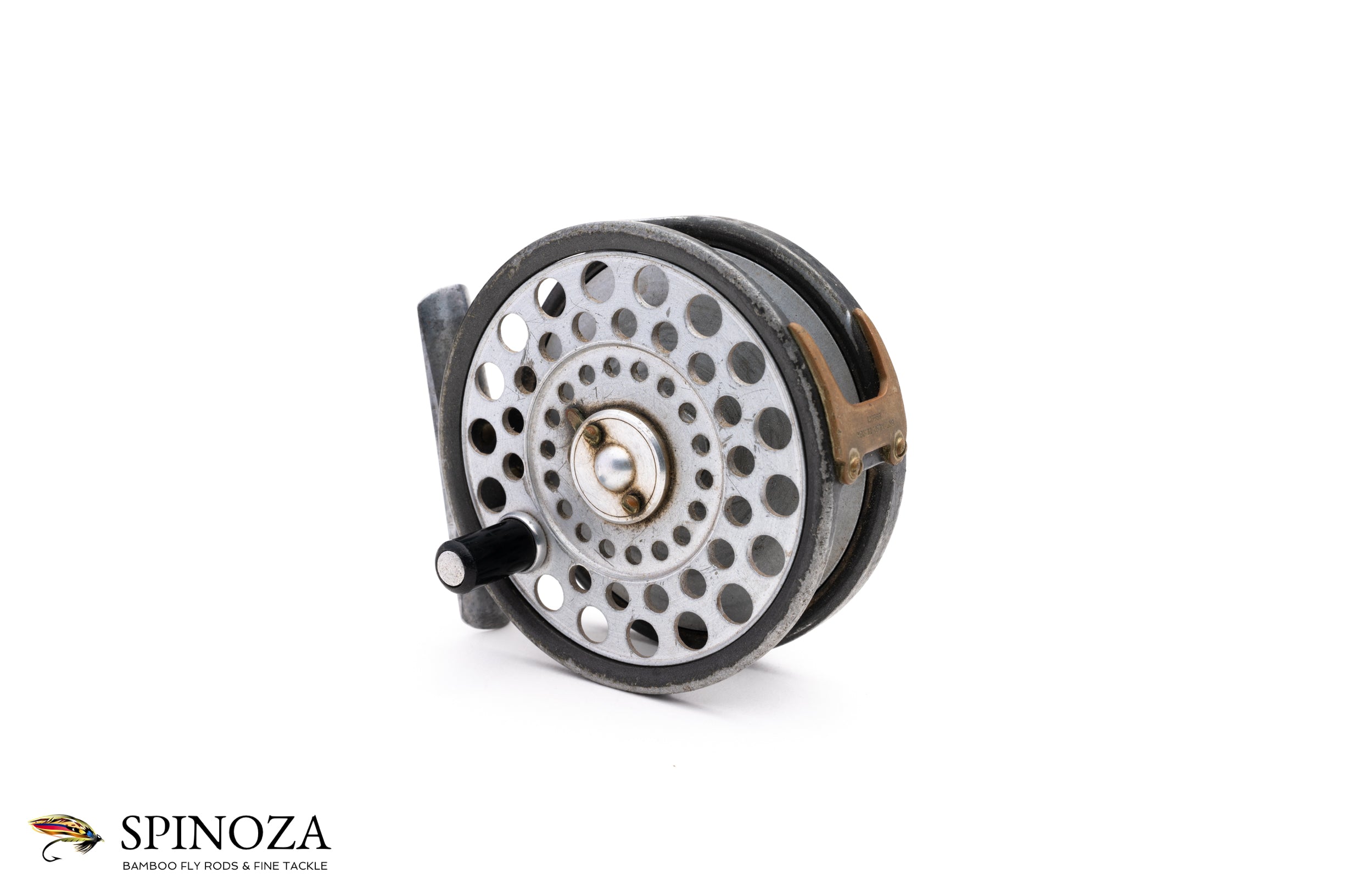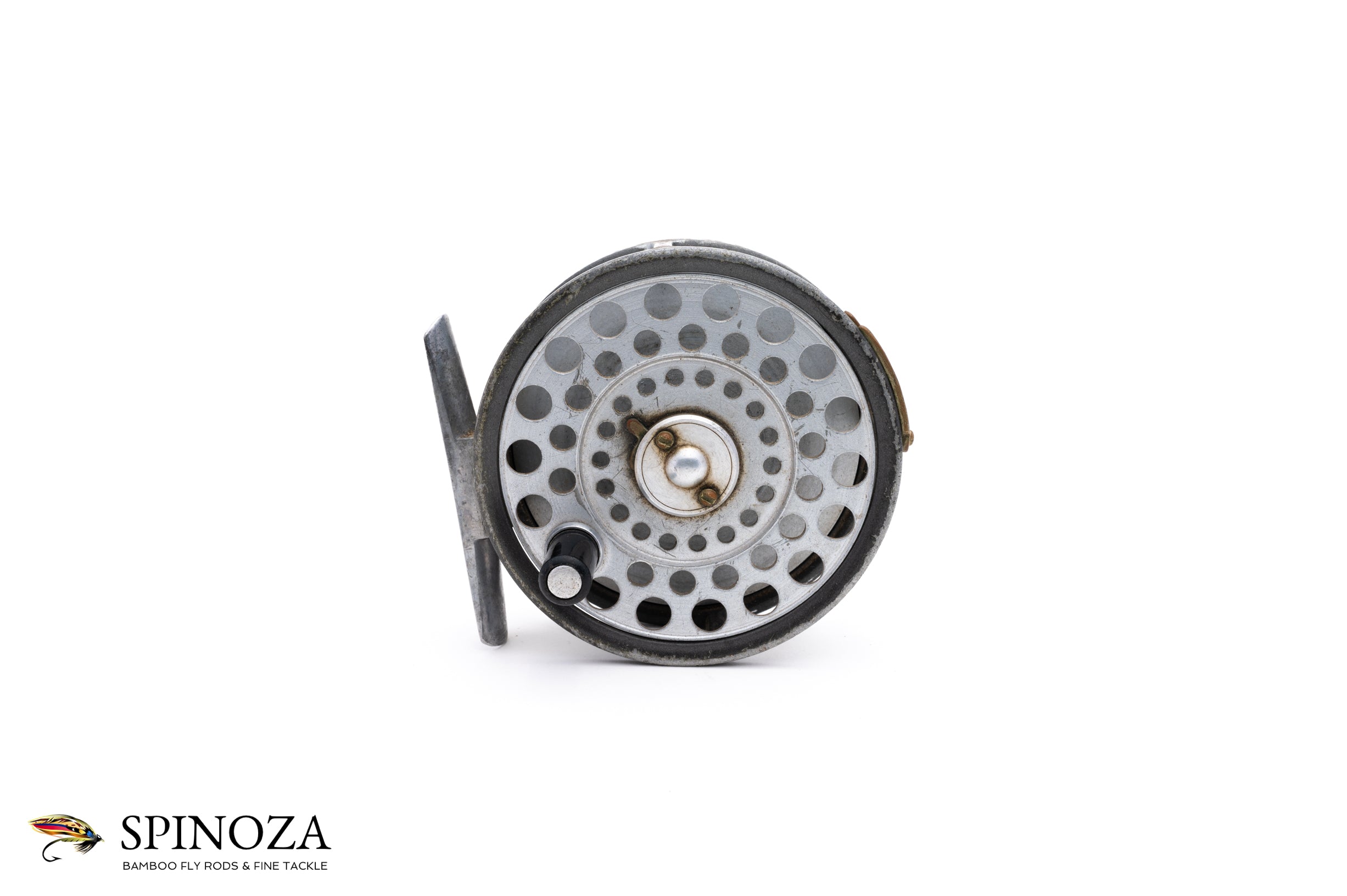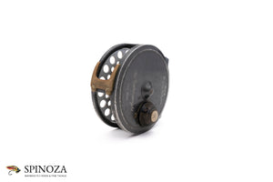 A Hardy Featherweight silent check fly reel, set up for RHW. Smooth alloy foot. Two-screw latch plate with a reversible U-shaped two-screw nickel silver line guard. Fair used condition with substantial cosmetic wear to the frame edges and more limited wear to the rest of the frame. Mechanically the reel functions as it should with a silent check that is adjustable via the knob on the backplate. No bag.
