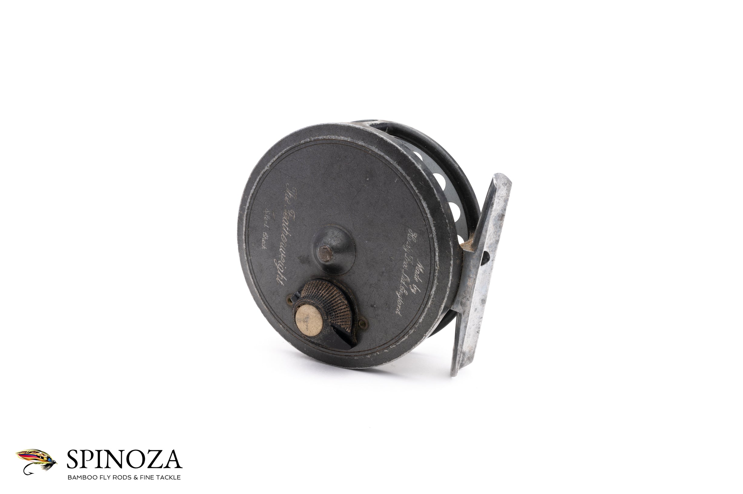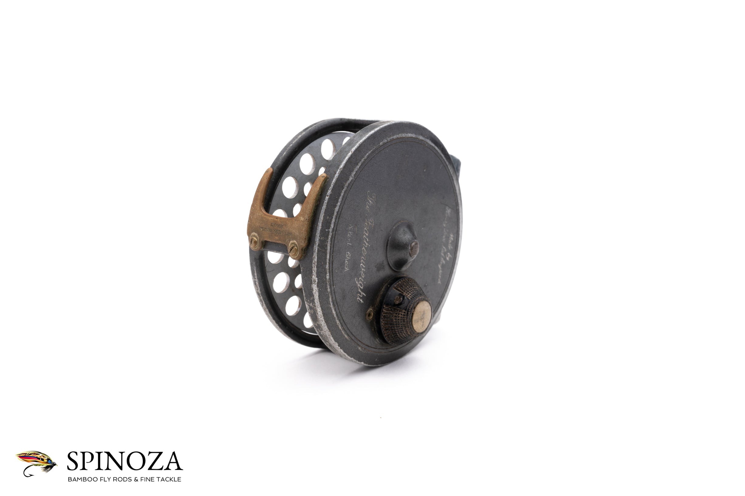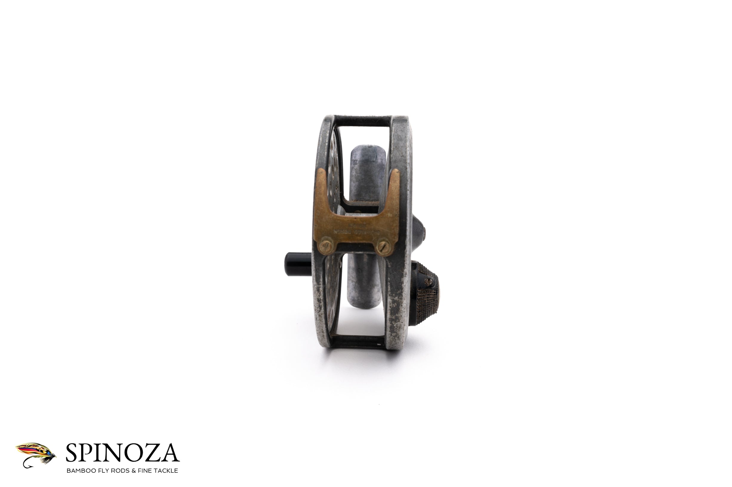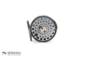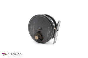 A Hardy Featherweight silent check fly reel, set up for RHW. Smooth alloy foot. Two-screw latch plate with a reversible U-shaped two-screw nickel silver line guard. Fair used condition with substantial cosmetic wear to the frame edges and more limited wear to the rest of the frame. Mechanically the reel functions as it should with a silent check that is adjustable via the knob on the backplate. No bag.