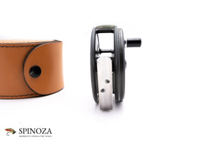 A nice Hardy Perfect trout reel, 3 3/8" and set up for RHW. Later enamel model this reel is in excellent lightly used condition, with minor cosmetic wear throughout. Unblemished agate lineguard (the ring around the agate has developed a thick green patina which should be able to be polished out). Smooth alloy foot with an ebonite handle. The tensioner works great and the reel is smooth and tight mechanically. The reel comes in a circular hardy reel case.