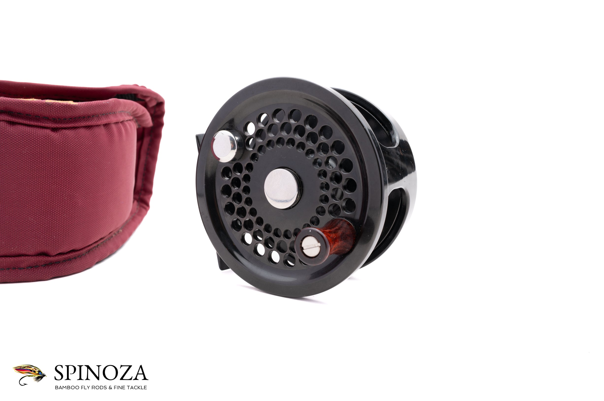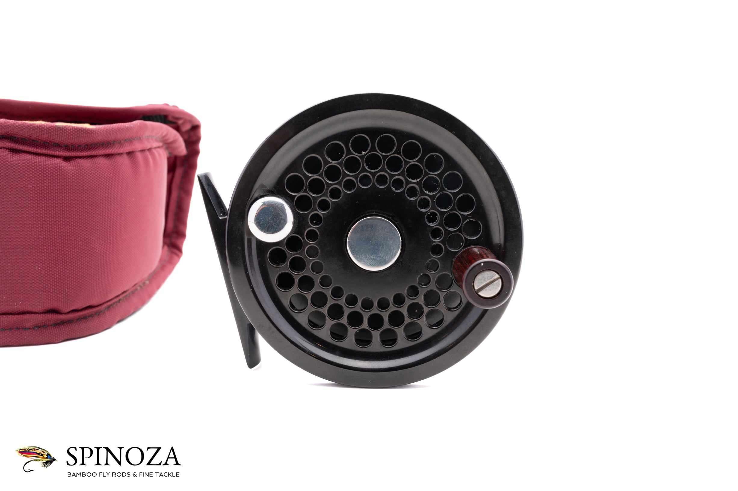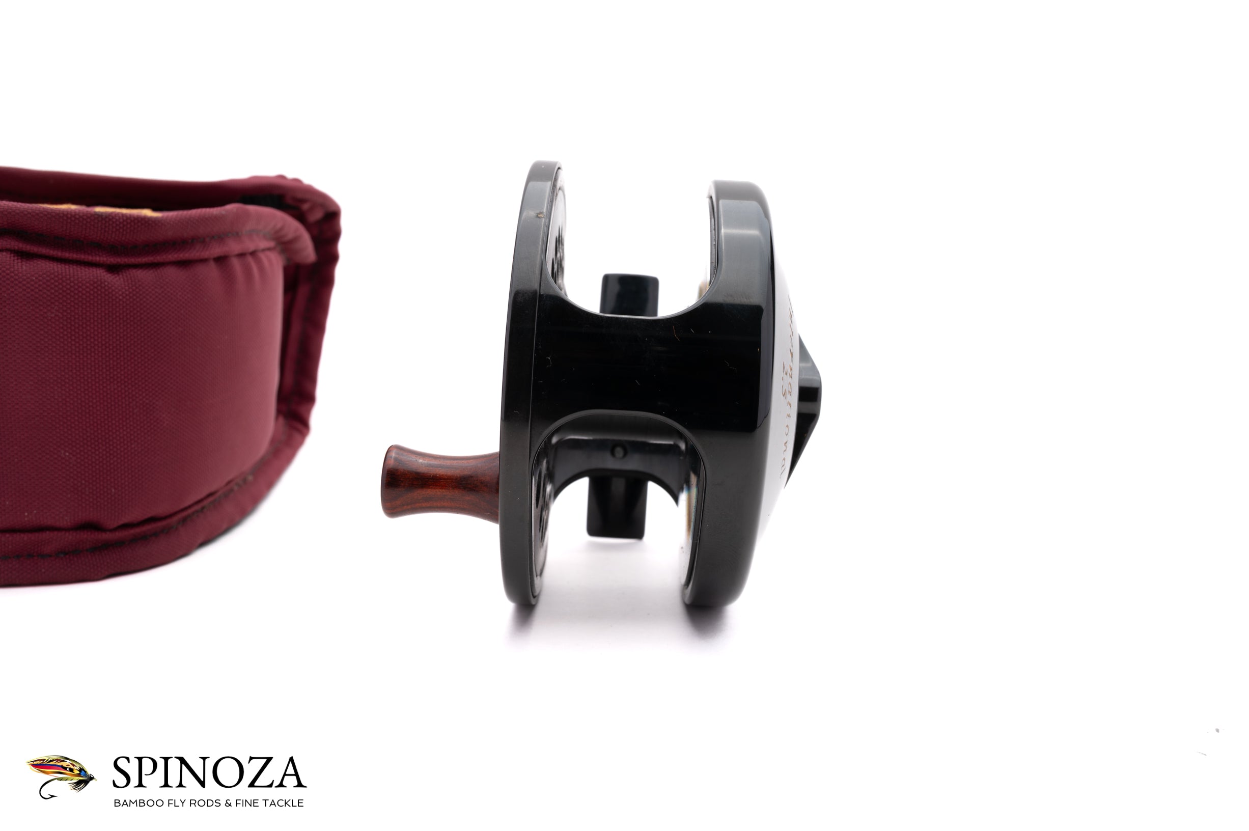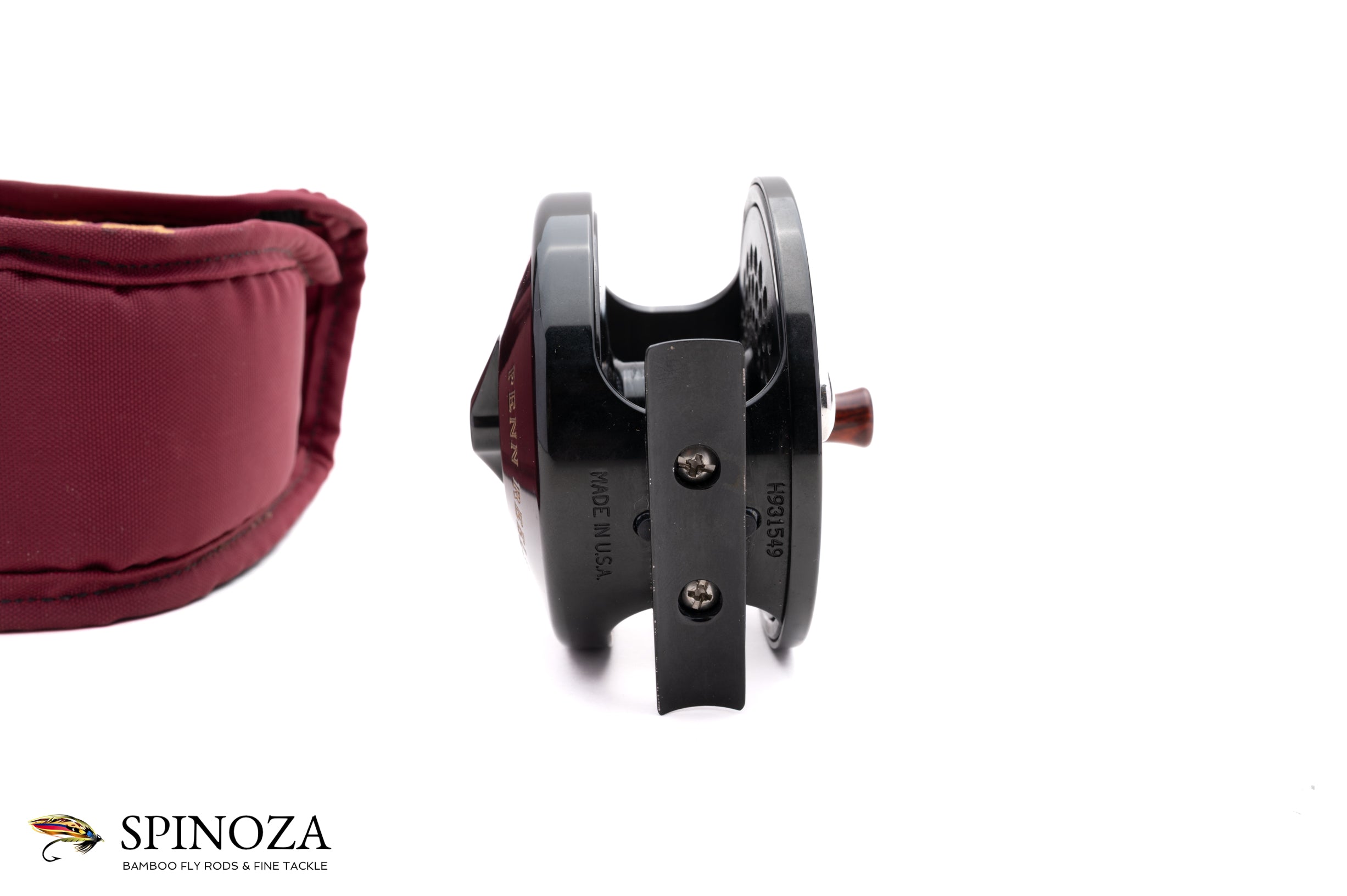 A Penn International 2.5 model fly reel, approximately 3 5/16ths diameter and set up for LHW. Direct drive. Near mint condition with just the tiniest trace of cosmetic wear here and there. It could not have been fished much. Black anodized frame and spool with the spool ported. The drag is adjusted via a dial on the backplate. Serial number H931549. Made in the USA. The reel weighs 9.8 ounces on my scale. It comes in its original pouch.