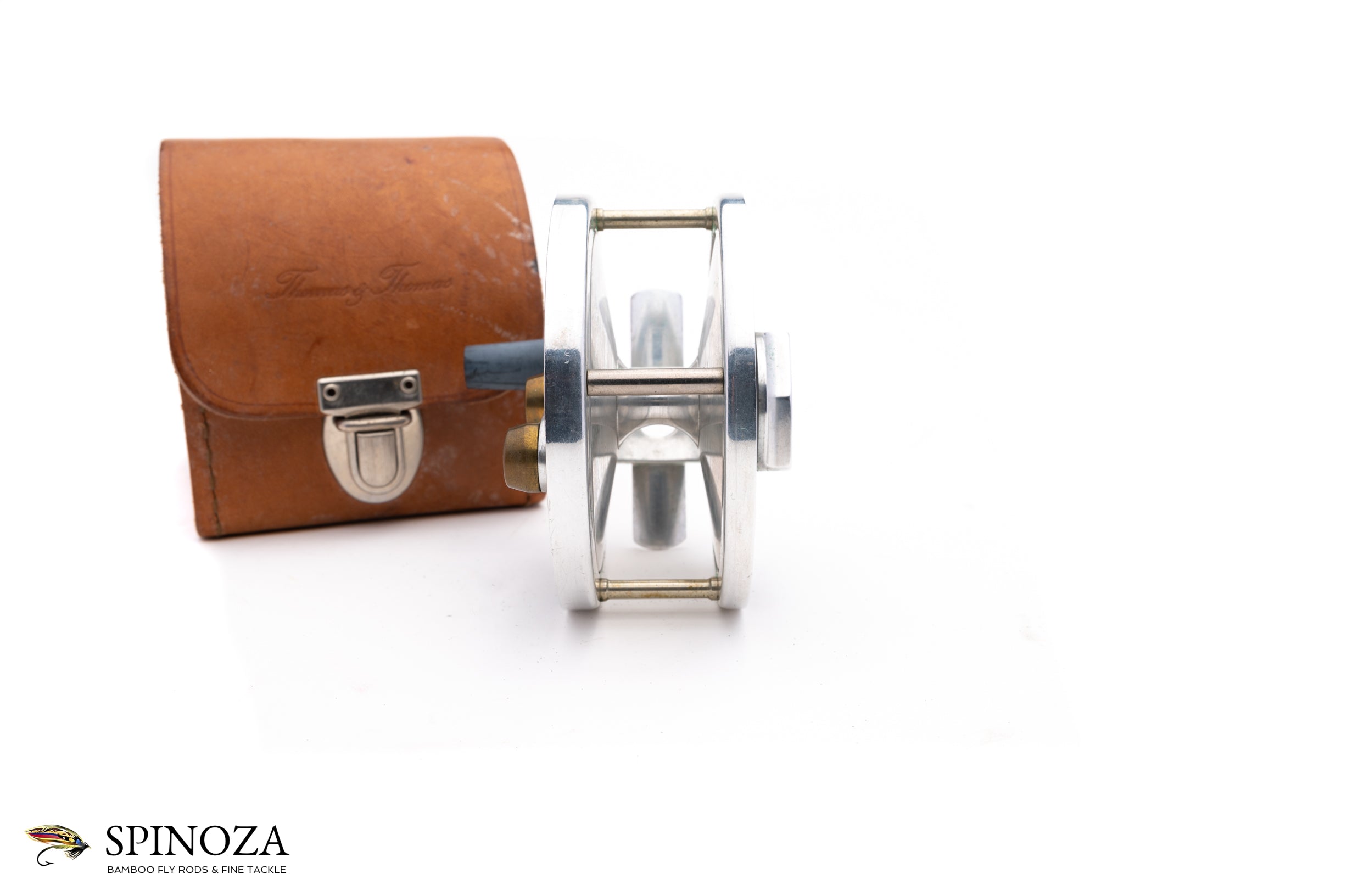 A scarce Thomas and Thomas "Classic" model 325 fly reel, 3 1/4" diameter and set up for RHW. Made for T&T in the late 1970's by the Hart reel company of Long Island, NY, makers of the Marquessa and Umpqua fly reels. Excellent condition with few signs of actual fishing use but a few minor handling marks here and there. Aluminum rings and delrin plates. The drag is adjusted with a dial on the backplate. It weighs 5.9 ounces on my scale. The reel comes with its handsome original leather T&T reel case. These don't surface on the resale market very often, a nice reel for the T&T aficionado!