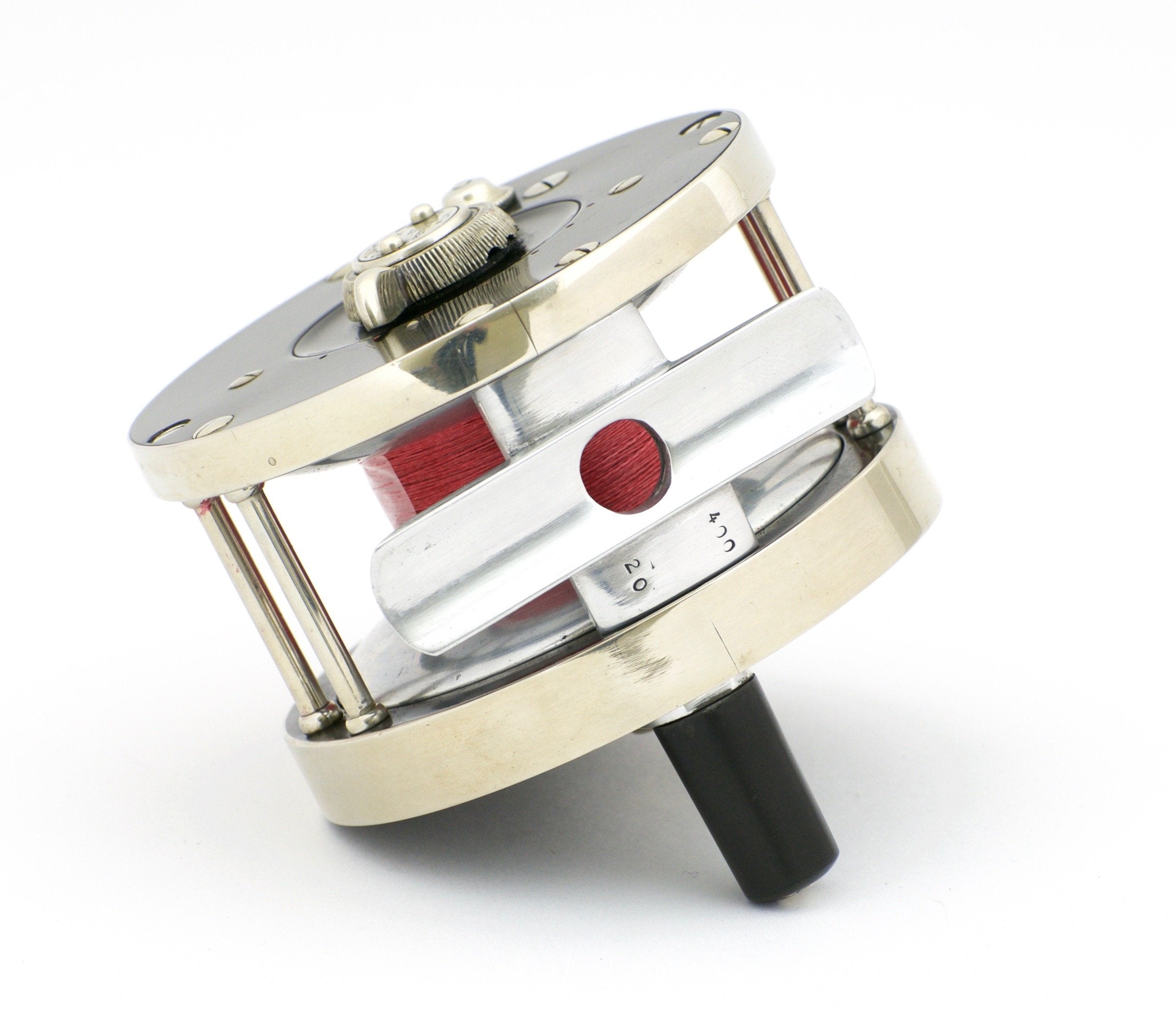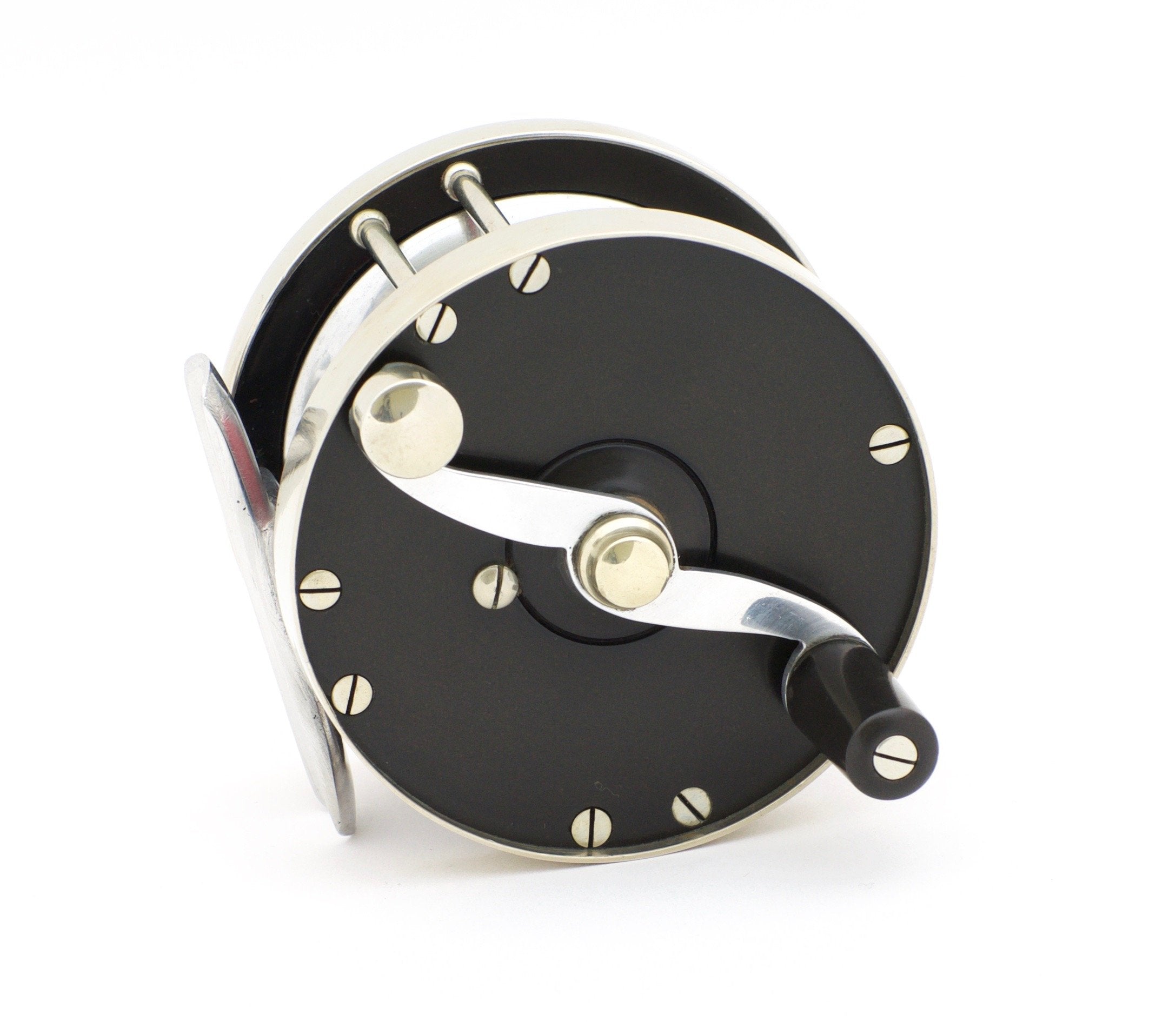 For sale here is an Otto Zwarg Model 400 Laurentian salmon fly reel - size 2/0. Made in St. Petersburg, FL. There is no serial number on the reel foot, which is a well made replacement. Right hand retrieve. Excellent overall condition. No cracks in the hard rubber. Model 400s were made with a multiplying gear. The drag is still perfectly strong and smooth. The reel comes with a leather case.
