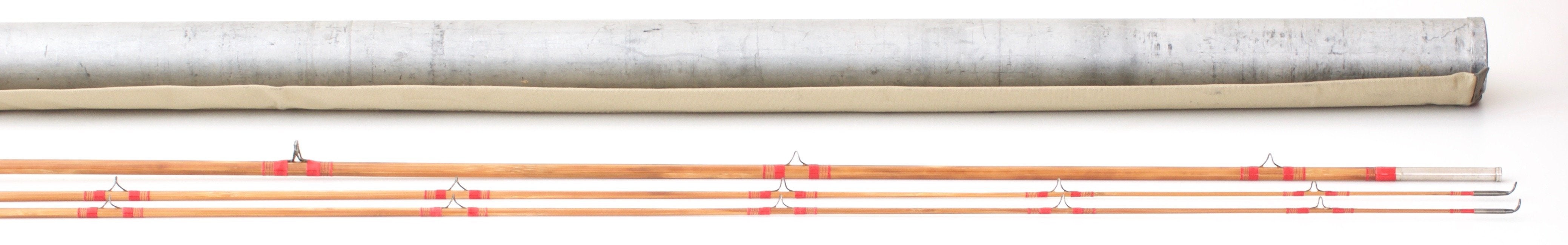 For sale here is a very scarce 9' Paul H. Young Parabolic 17 bamboo rod. This is the only 9' Para 17 Model known to exist, as the typical Para 17 model was 8'6" in length. Two sections and two tips for a 7wt line. Made in May of 1951. The rod is in excellent plus restored condition. All sections are full length with a very slight set in one tip. Both tips were short when the rod was found and have been expertly scarfed to full length by Scott Whitman. Michael Sinclair performed the remaining restoration work, including a fresh varnish finish and new silk wraps.