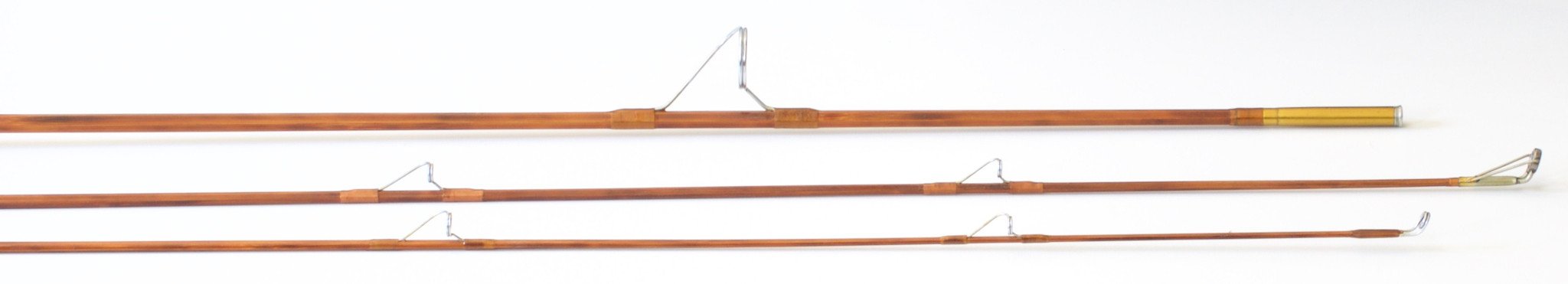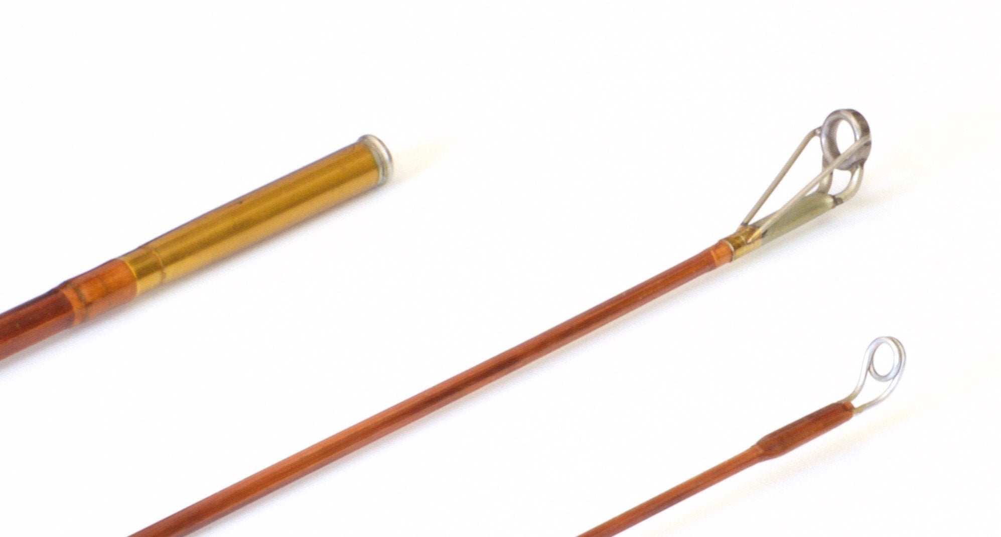 For sale here is a Paul H Young "Spinmaster" bamboo spinning rod. Six feet four inches in length. The rod has two tips, both being original length. Varnished and flamed cane. Dual black rings over long cork grip, "Detroit" stamp on ring. Scripted weight of 3.30 oz.