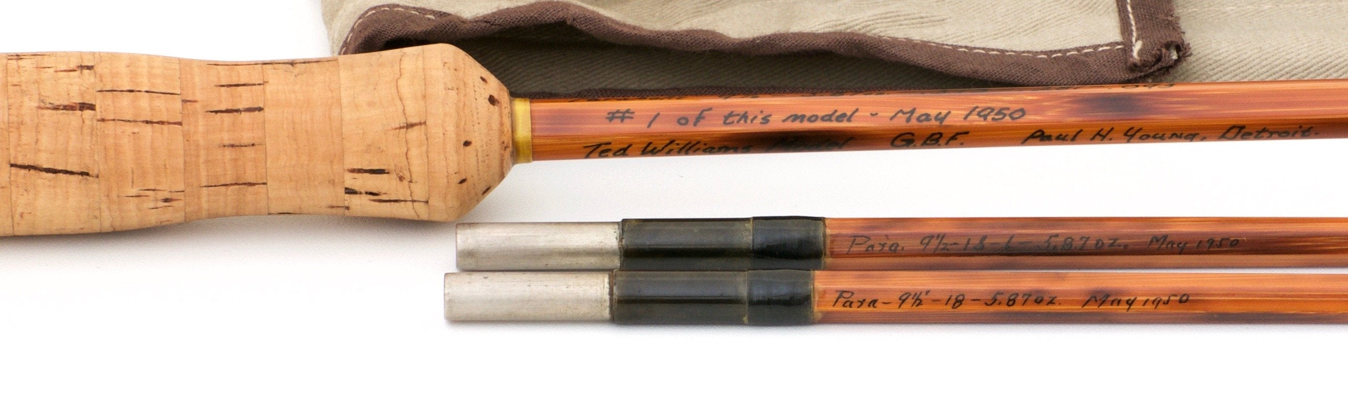 For sale here is a very historically important Paul H. Young bamboo rod. Made in 1950 for baseball and fly fishing legend Ted Williams. This rod came to be known as Young's 9 1/2 foot "Florida Special" model. Originally called the "Ted Williams Model" before Williams asked Young not to include his name in the official name of the rod. Williams subsequently gave this rod back to the Young family when he signed a contract with Sears Roebuck and Company, who was to use Ted Williams' name as part of a line of sporting goods.