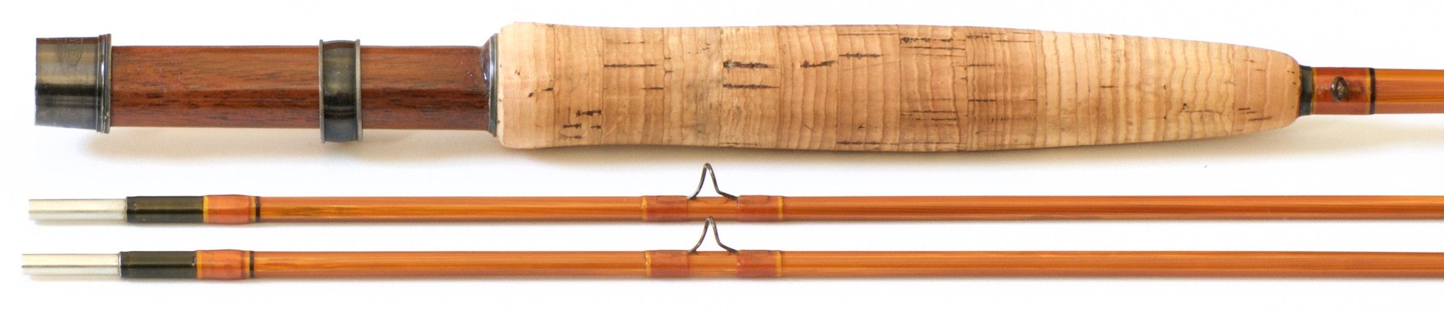 For sale here is a scarce Payne Model 102L bamboo rod in near mint restored condition. The rod weighs 3.55 oz. with cap and ring reel seat over a Spanish cedar spacer. 8' 2/2. Light dry fly action. All sections are full length and straight. Size 11/64 ferrules. Complete with original bag, brilliantly preserved hang tag, and labeled tube.