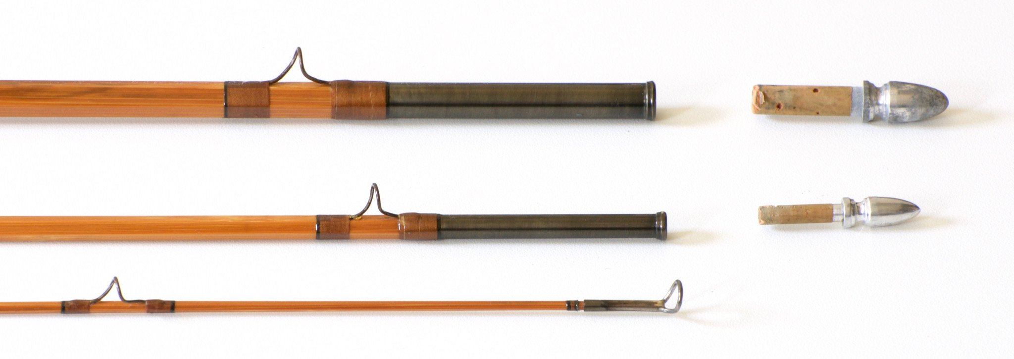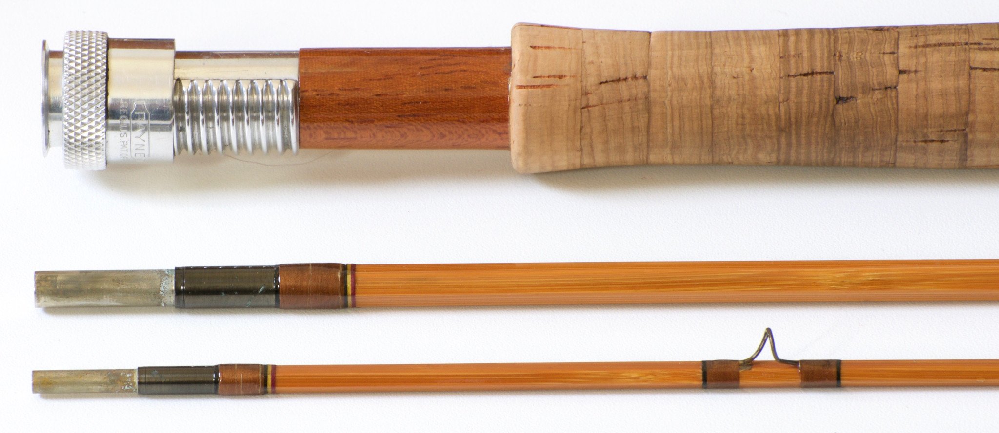 For sale here is a Payne Model 204 bamboo rod -- 8'6 for a 5 weight line, weighing 5 1/8 oz. This is a one-tip rod. The rod is in excellent original condition. All sections are full length and straight. All of the oxidized hardware is in superb cosmetic condition. Uplocking aluminum Payne reel seat hardware over an un-marred spanish cedar insert. The reel seat includes the stamp "Made for Abercrombie & Fitch Co." Chestnut brown thread wraps with black trim and maroon edges at the hook keeper and male ferrules. The ferrules are 10/64 and 16/64. Includes original bag and labeled tube. The action of the rod is medium, full-flexing and silky smooth!
