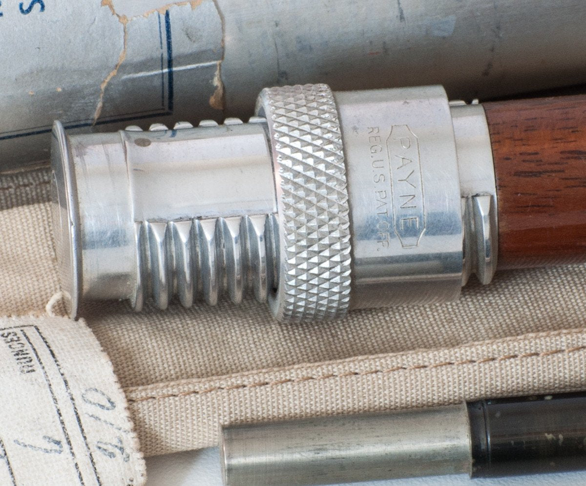 For sale here is a E.F. Payne Model 210 -- 9′ 3/2 light salmon rod for a #7/8 line. This rod has an uplocking screw-lock reel seat with Payne's standard Spanish cedar spacer. Wraps are brown with purple edges at the keeper and male ferrules. Comes with the original Payne rod tube and bag. The rod is in completely original and excellent plus condition with all sections full length and straight. It weighs 6 oz. and the ferrule sizes are 12/64 & 18/64. The ferrule fit is excellent.