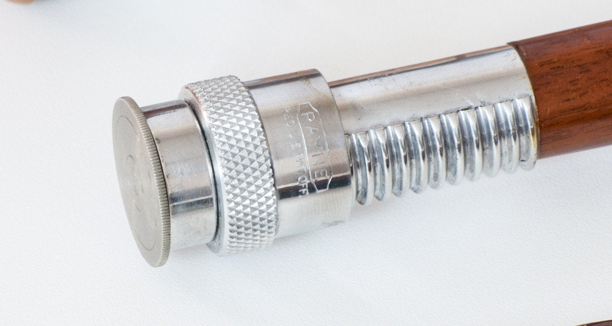 For sale here is a E.F. Payne Model 400 -- 9′ 3/2 light salmon rod for a #7 line. Original andexcellent plus overall condition. This rod features beautiful dark cane, has an uplocking screw-lock reel seat with Payne's standard Spanish cedar spacer, and a 6" detachable extension handle with detachable rubber button.Wraps are brown with red tipping with additional wraps at the keeper and male ferrules. Comes with the original Payne rod bag and rod tube (and canvas tube cover with separate compartment for the handle extension. The rod weighs 6 7/8 oz. and the ferrule sizes are 11/64 & 17/64. A delightful Payne salmon rod in amazing condition!