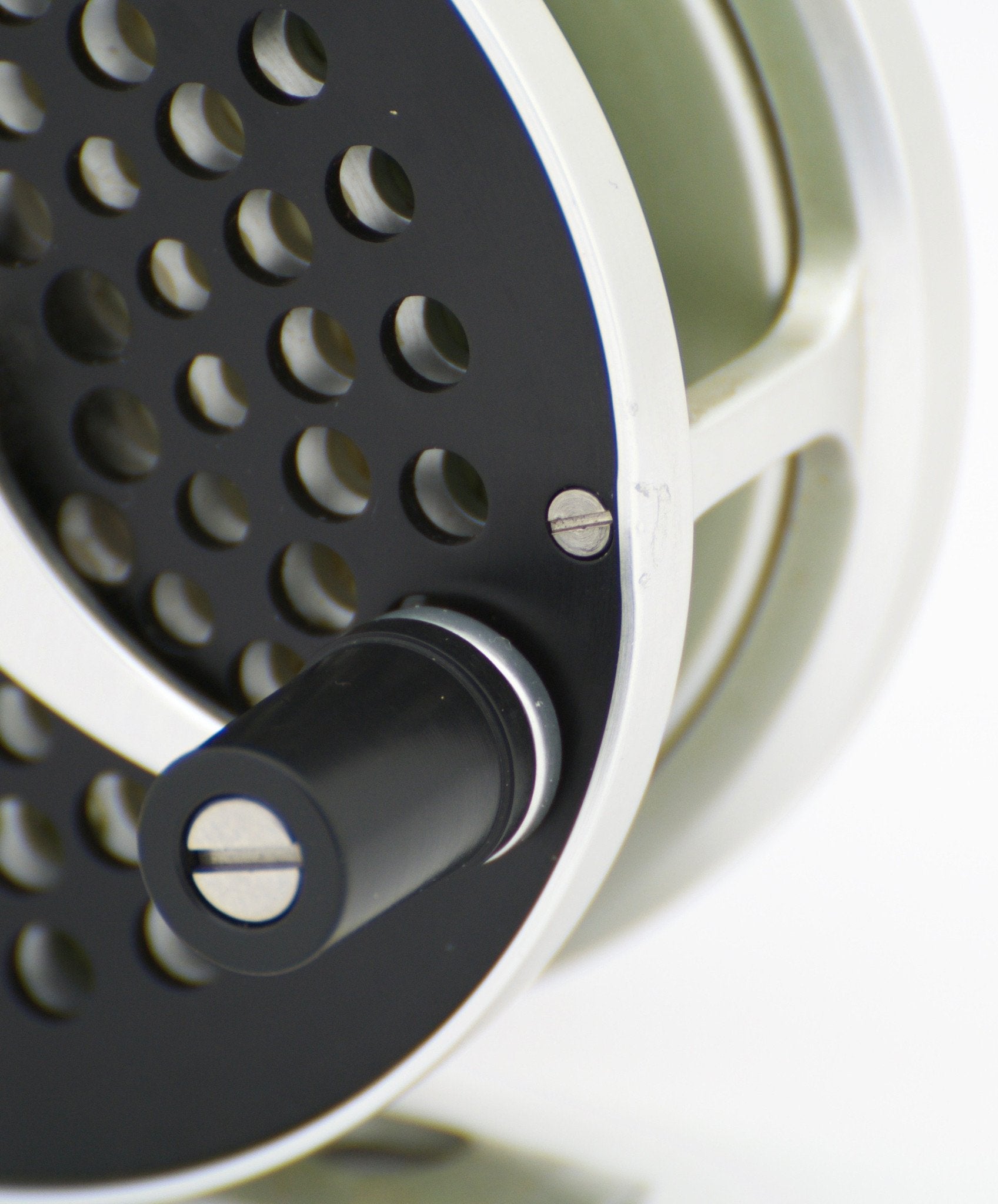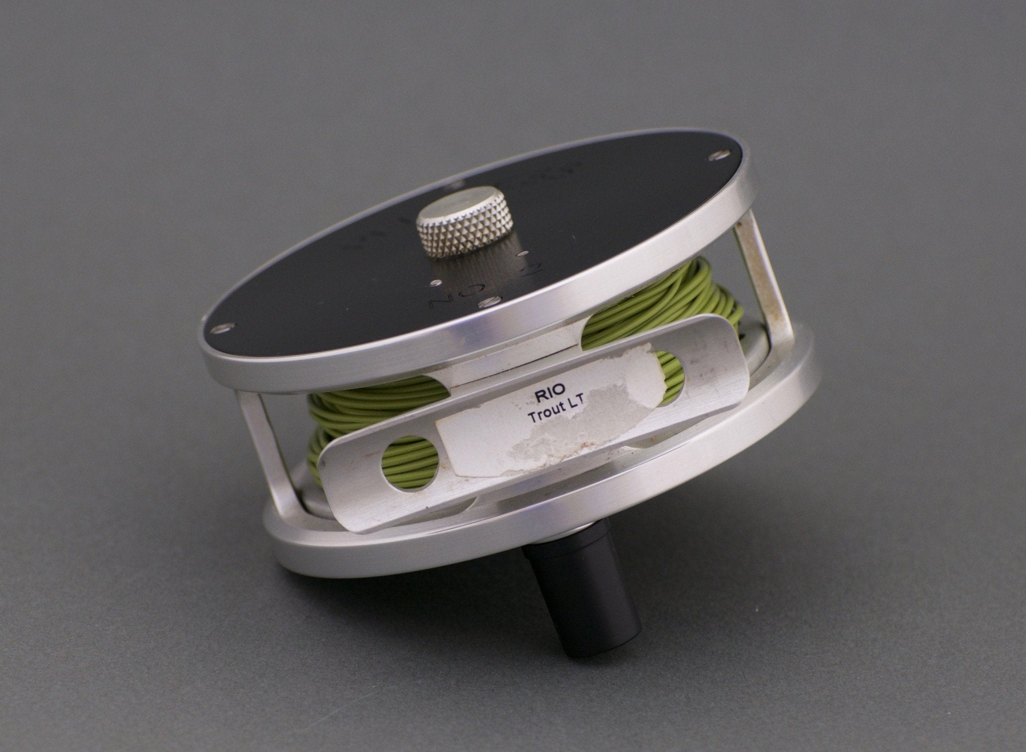 For sale here is a Peerless 2 fly reel in excellent and lightly used condition. Left hand retrieve. One ding exists on both rims as shown in the last two photos, most likely from a drop. This is purely cosmetic. No marks exist on the sideplates. Designed for a 5 or 6 weight line. 3 1/4" diameter. Fixed proprietary click drag. The reel weighs 5.4 oz. The reel's line capacity is a DT5 plus 60 yards of backing. Comes with its original reel pouch. Also comes loaded with a Rio Trout LT DT5 line in what appears to be like new condition.