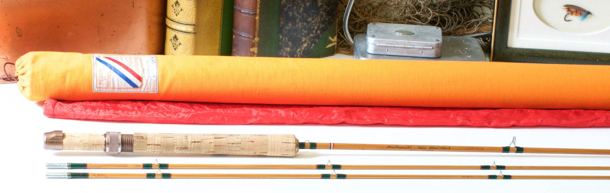 For sale here is a Pezon et Michel Super Parabolic PPP Featherweight (Type Glenn Clark) bamboo rod. 6'3 2/2 for a 4 or 5 weight line. 3 1/4 oz. Excellent++ condition. Made in France. Staggered ferrule set up with original plug; green silks tipped with red; comes in an original P&M rod bag and tube. Fast parabolic action.
